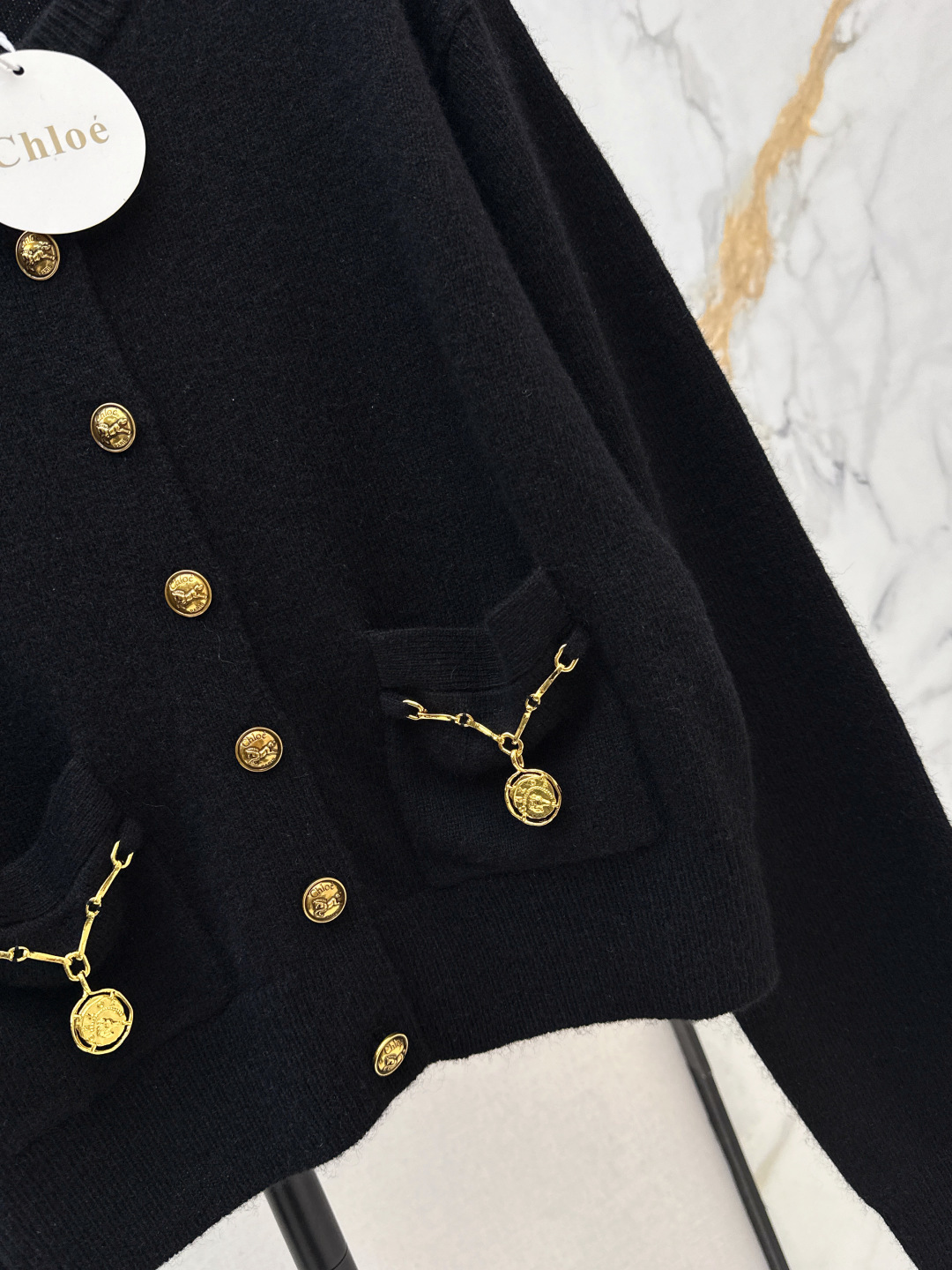 Details: Spring new golden-buttoned round-neck cardigan, versatile for single wear or layering.