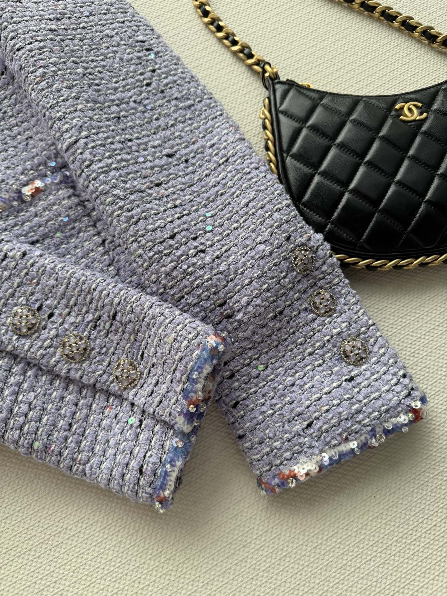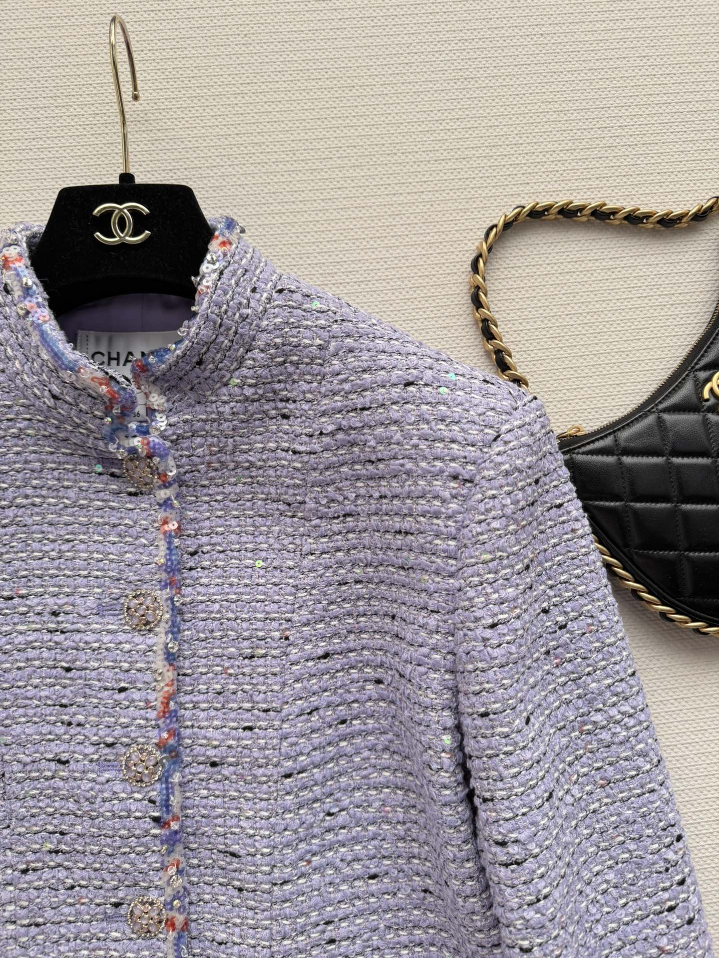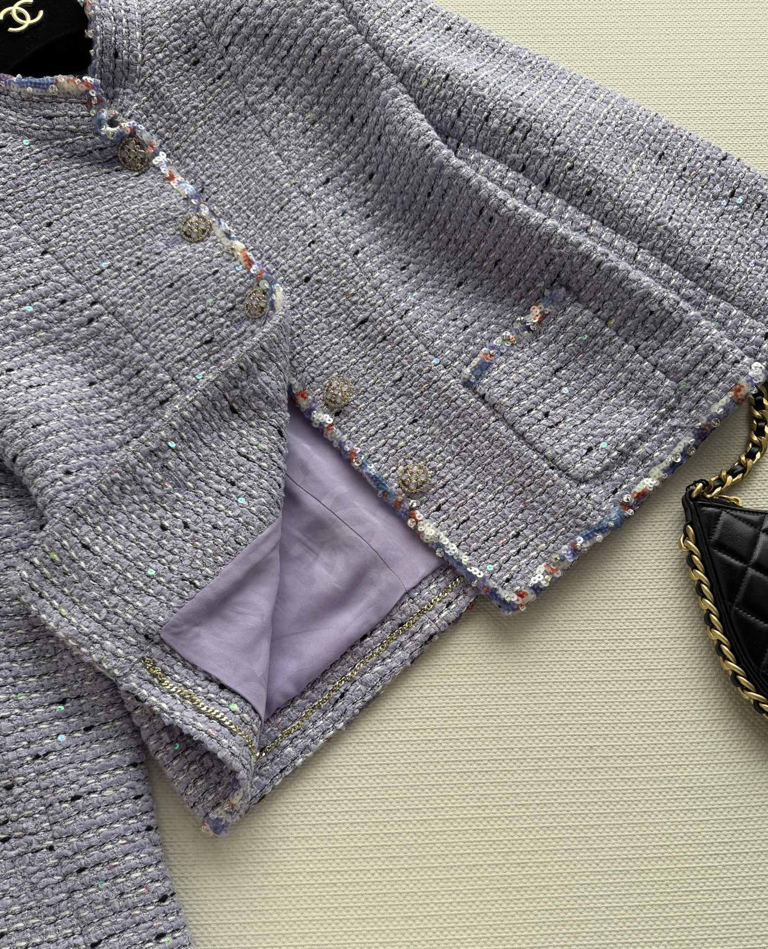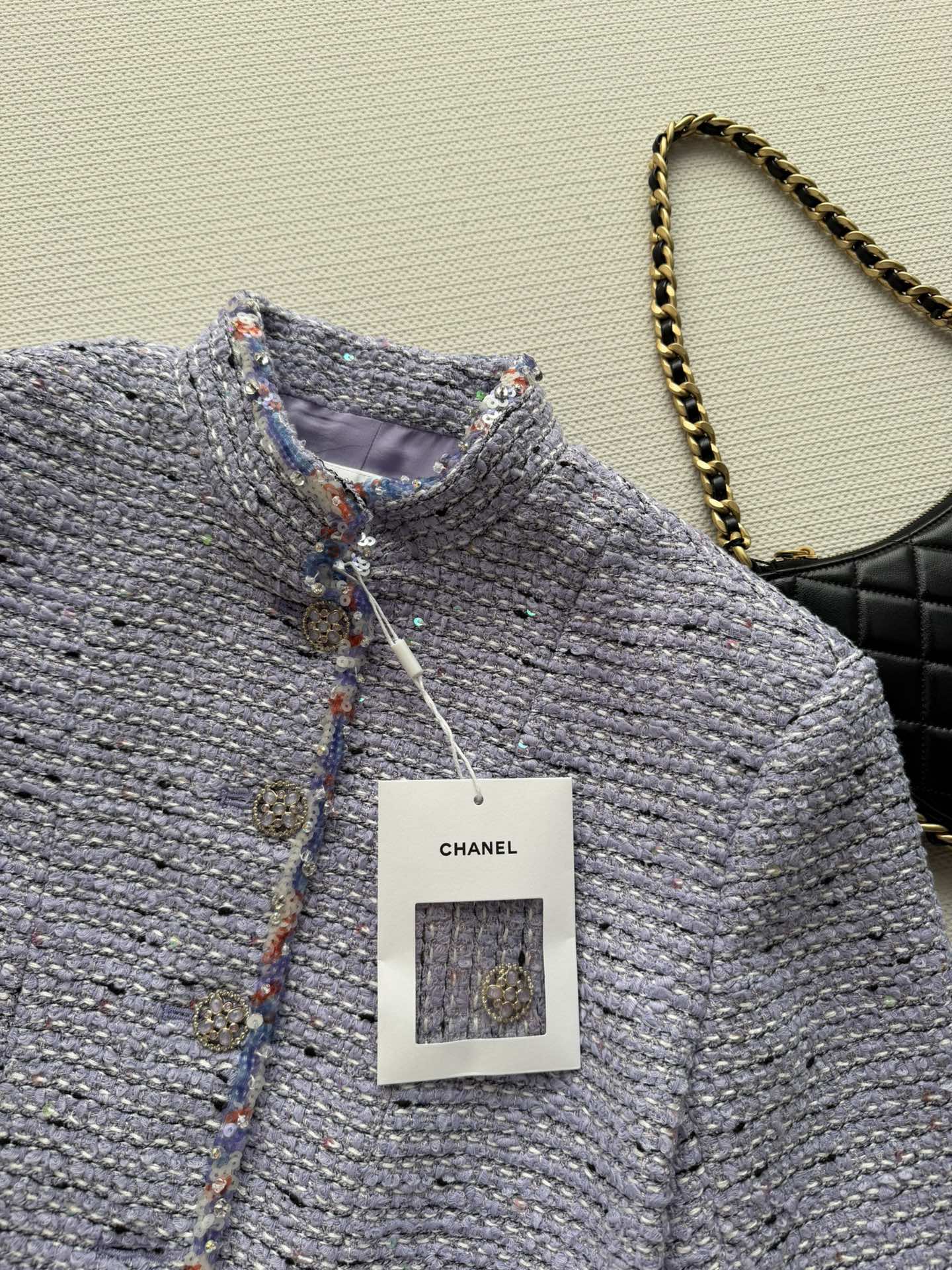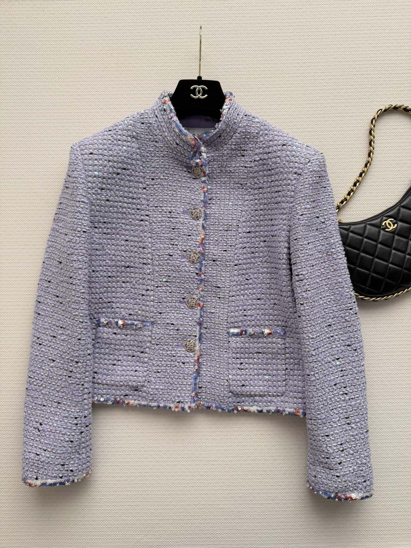 Details: New short tweed coat with silk lining, stand-up collar, and metal buttons. Perfect for daily wear or formal occasions. High-end customization with fine workmanship ensures original quality.