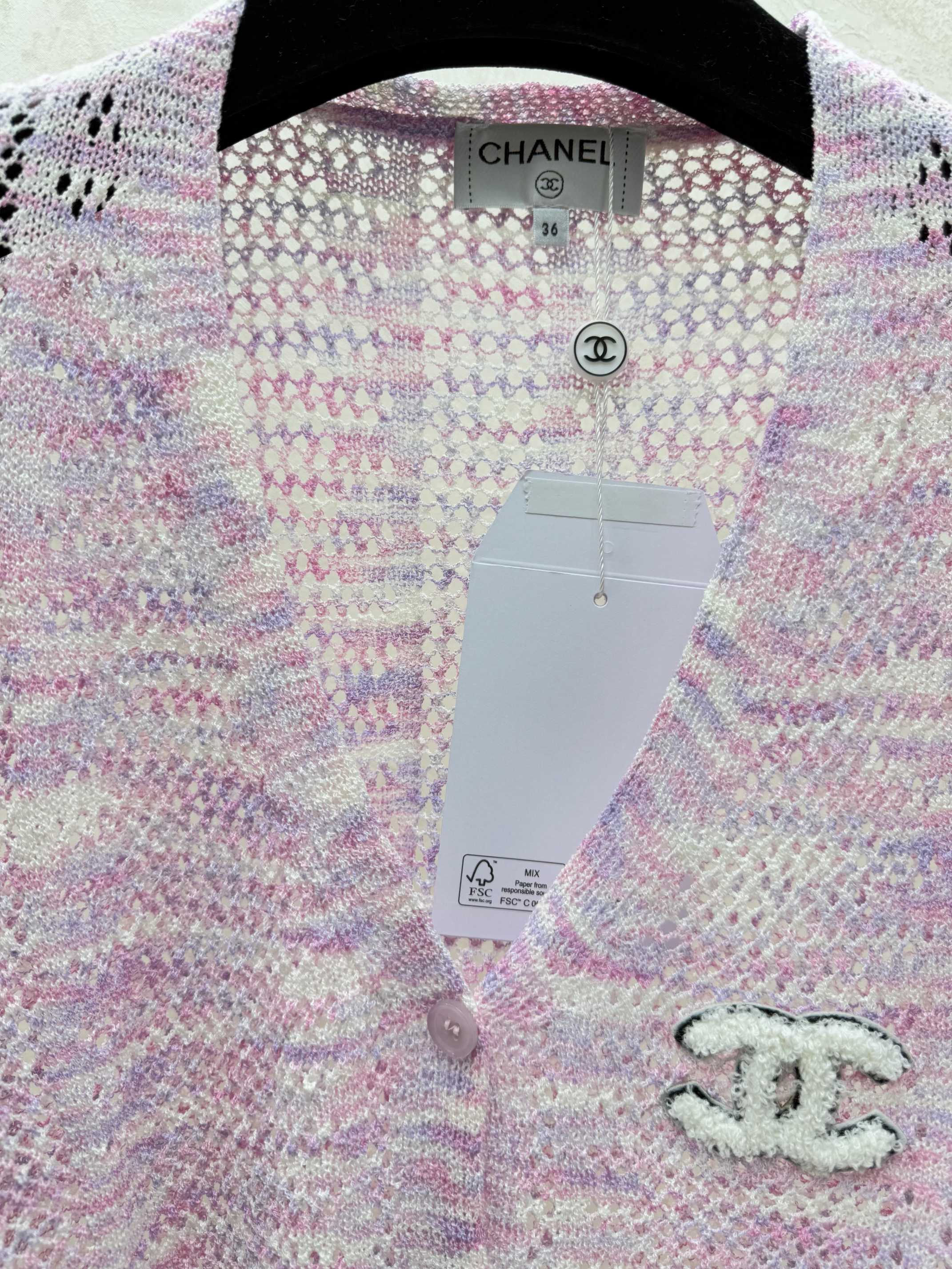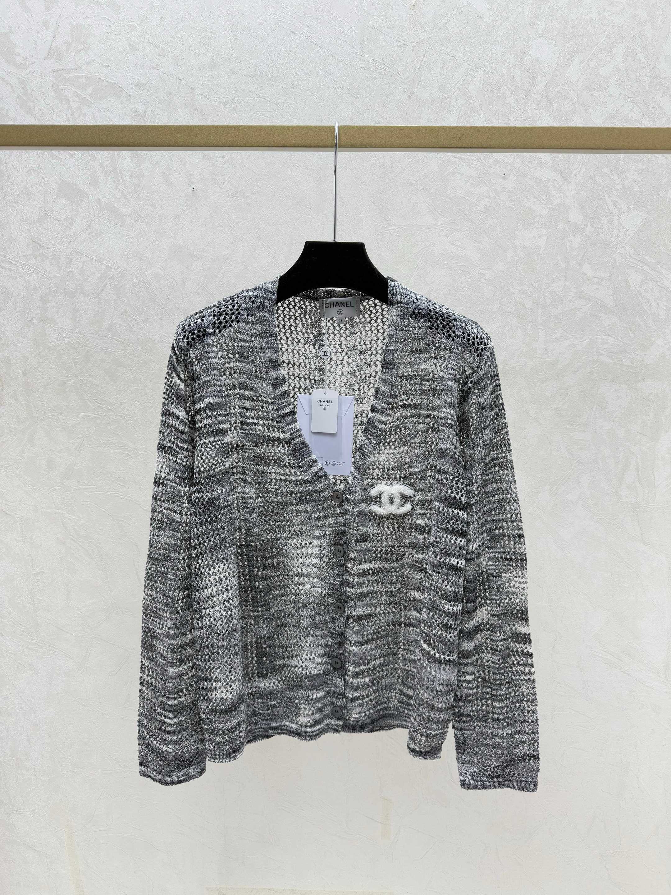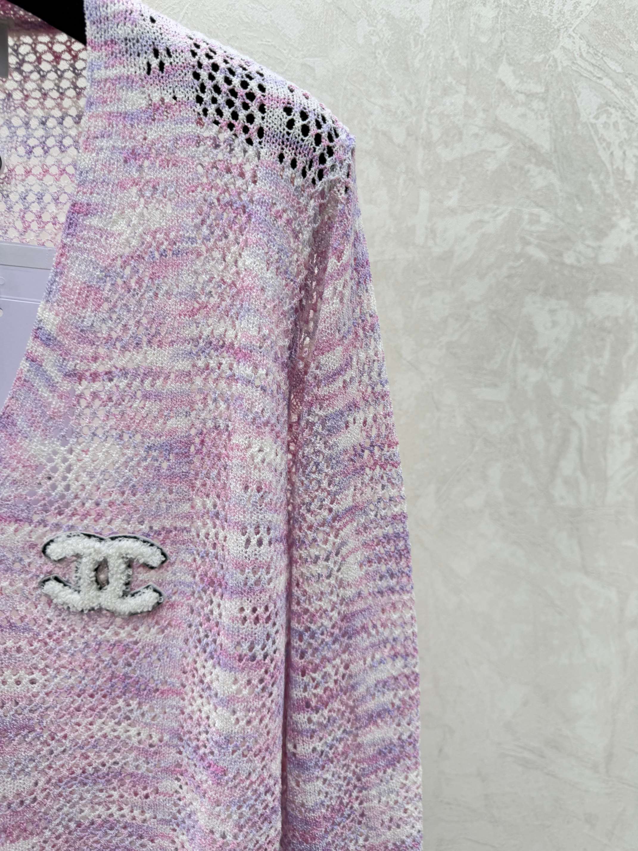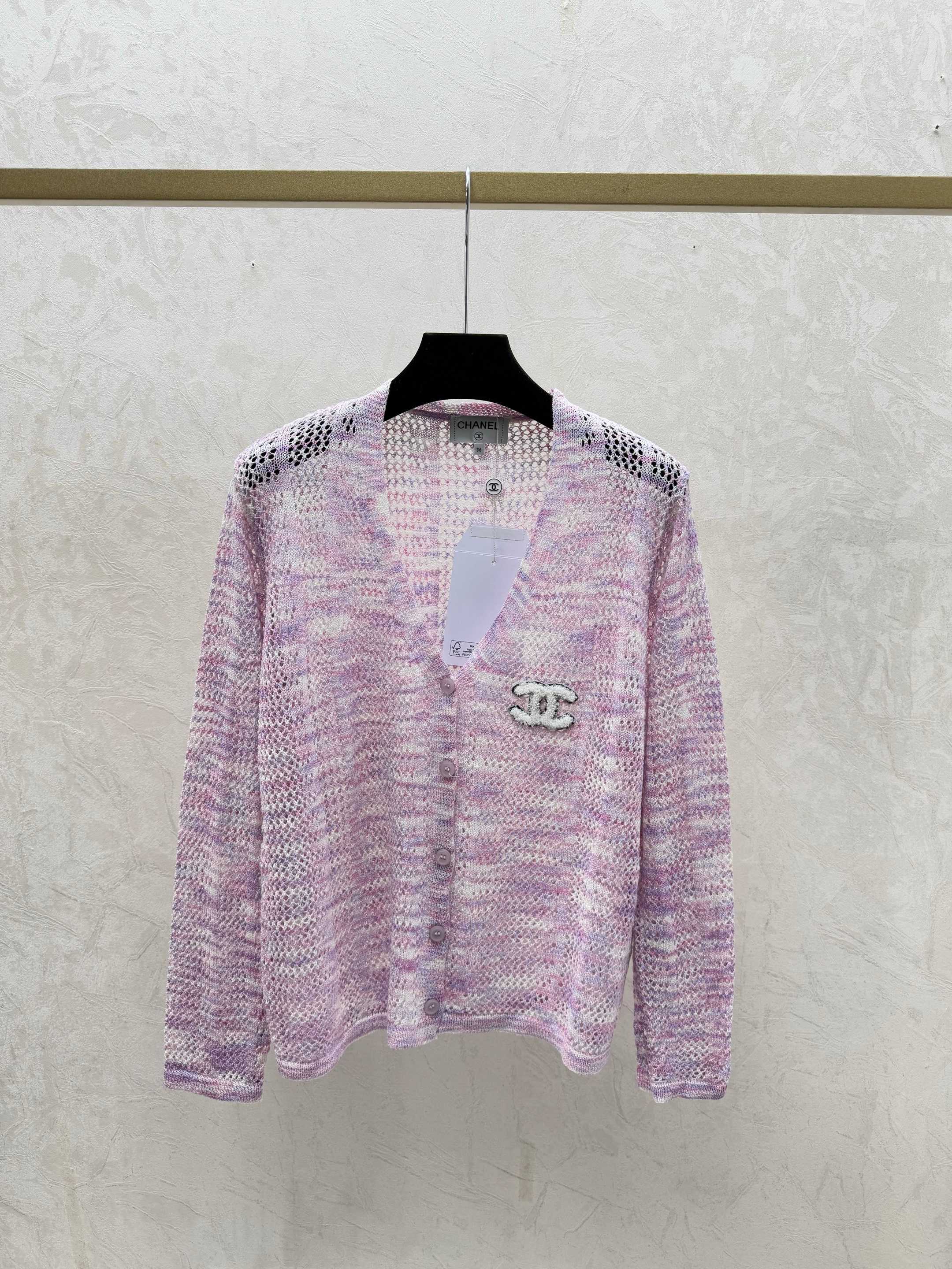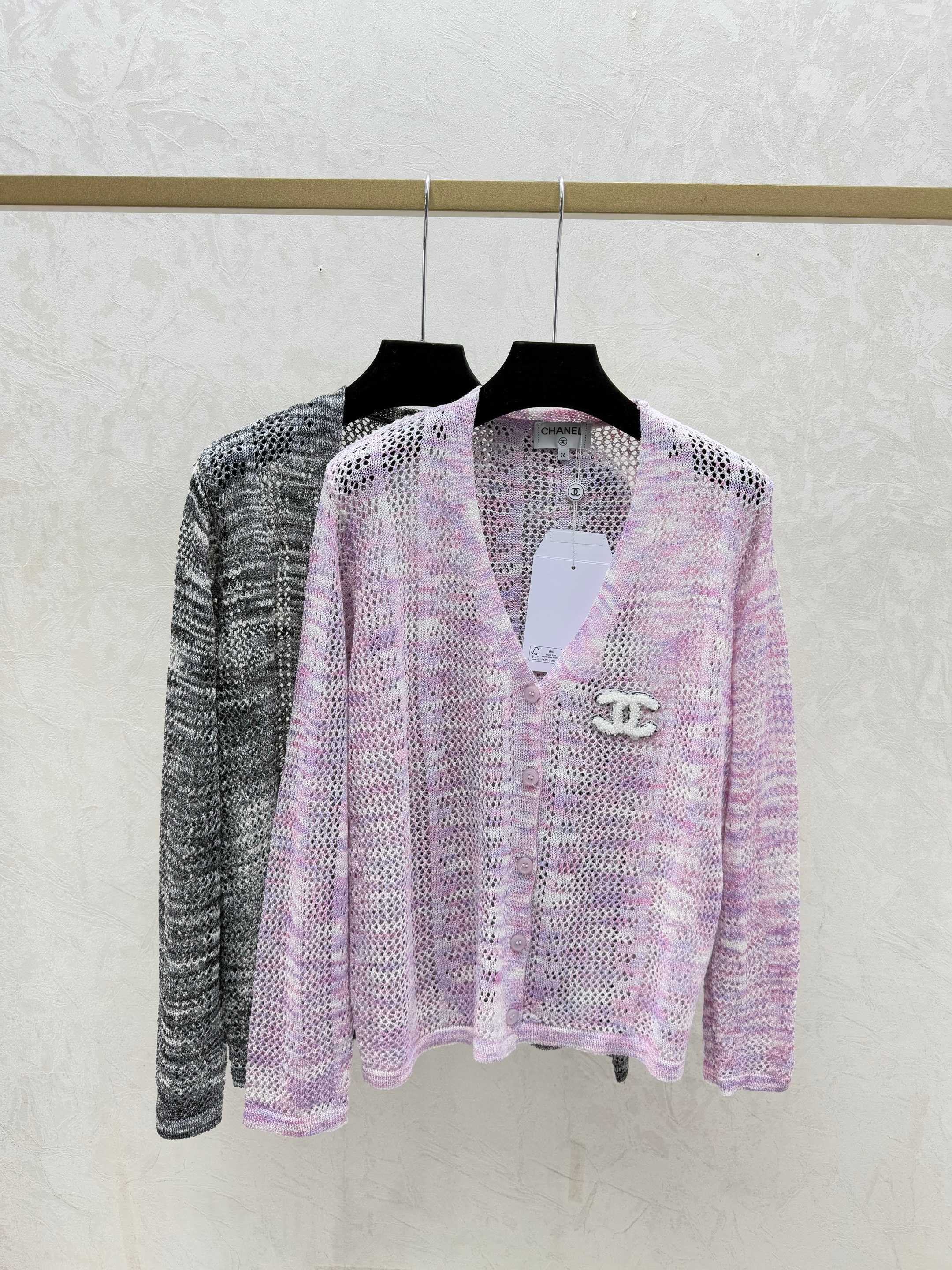 Details: Early autumn new design: Color-block knitted long sleeve cardigan in pink and black with lace V-neck, available in sizes 36-40. High-quality craftsmanship, exact replica.