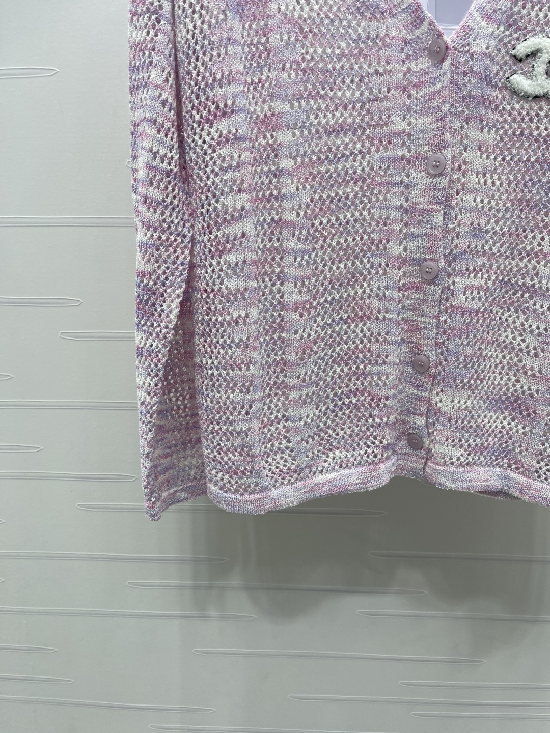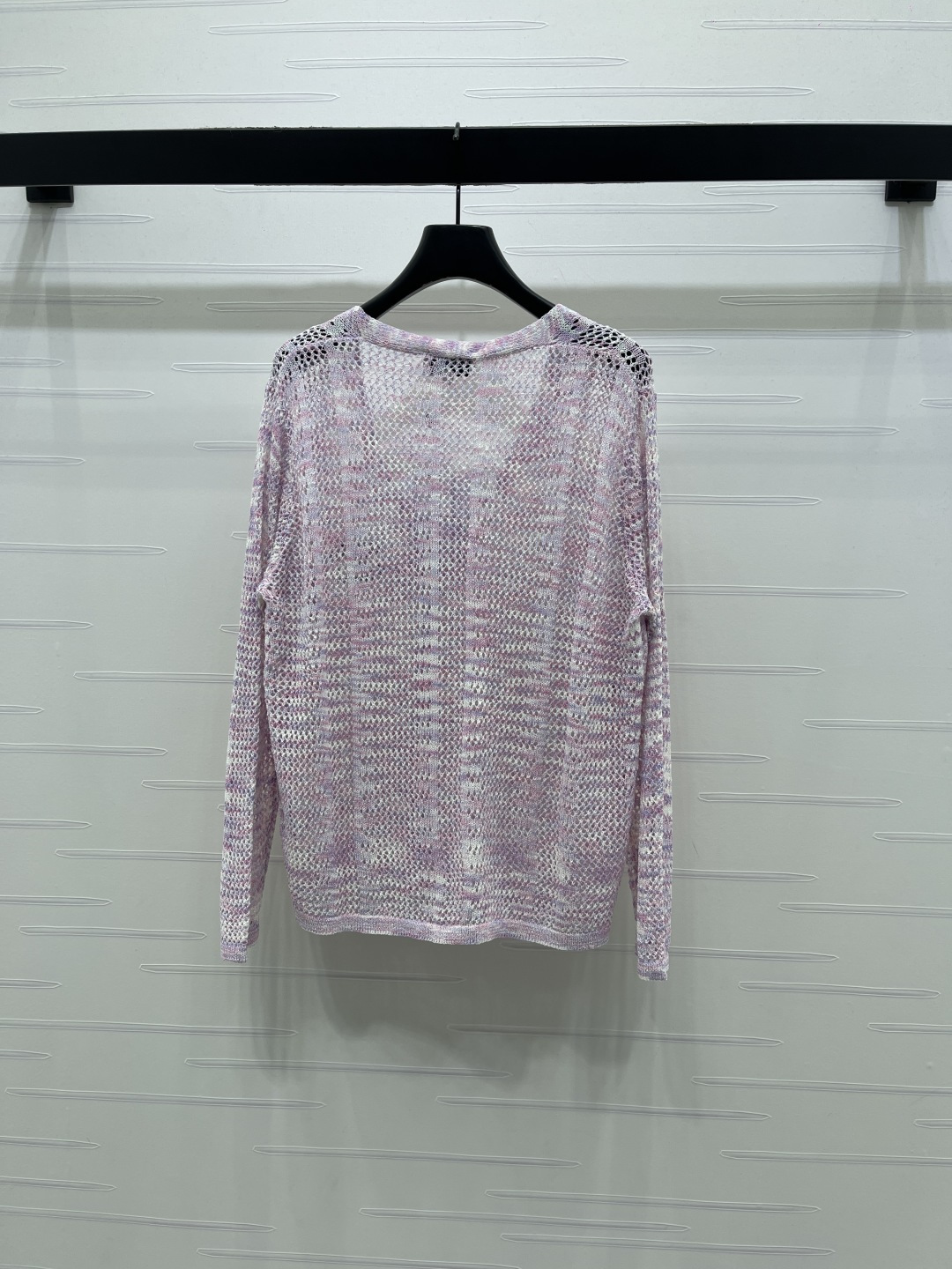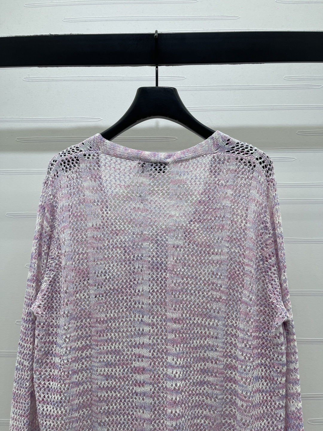 Details: Gradient color openwork V-neck cardigan made of wool blend, available in 2 colors, with advanced customization and fine workmanship