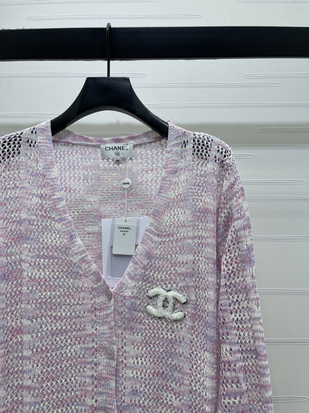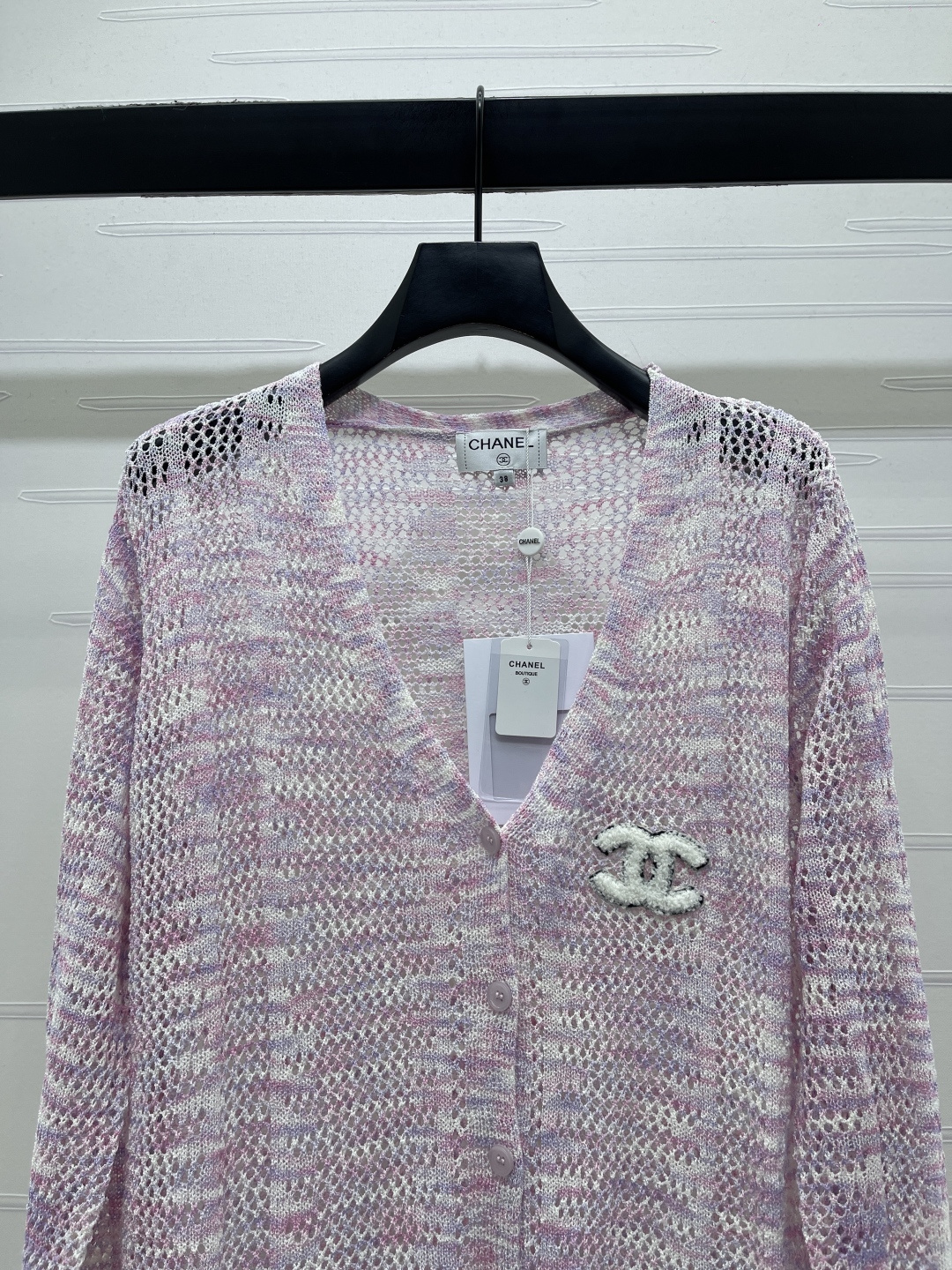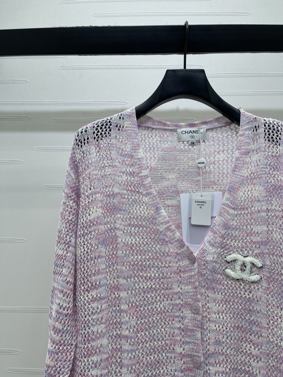 Details: Gradient color openwork V-neck cardigan made of wool blend, available in 2 colors, with advanced customization and fine workmanship