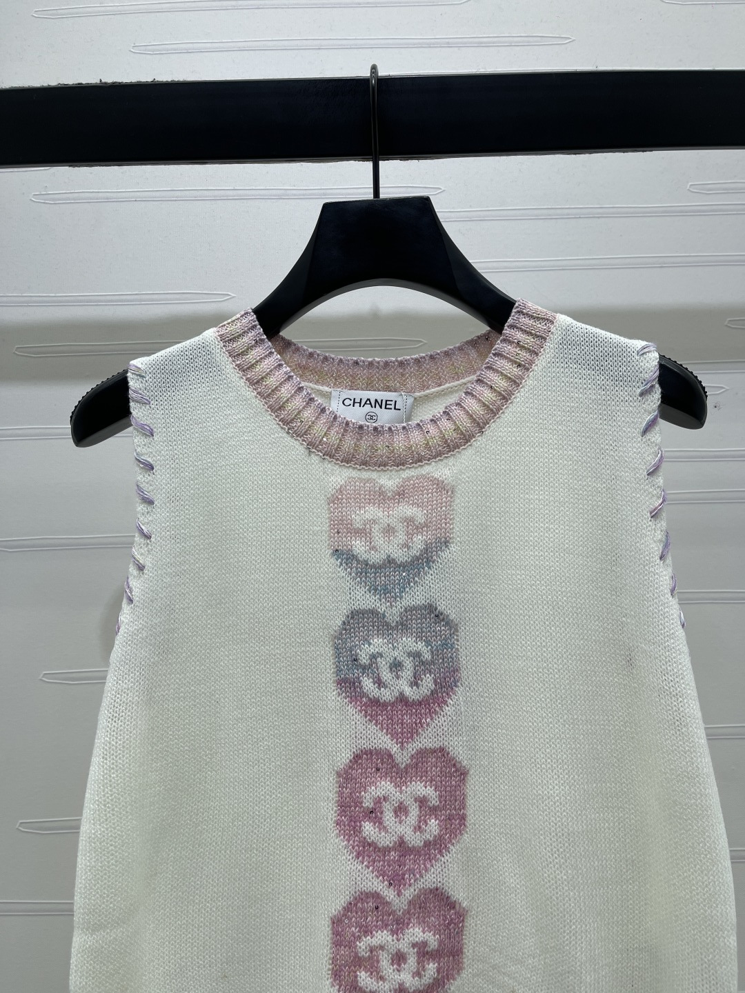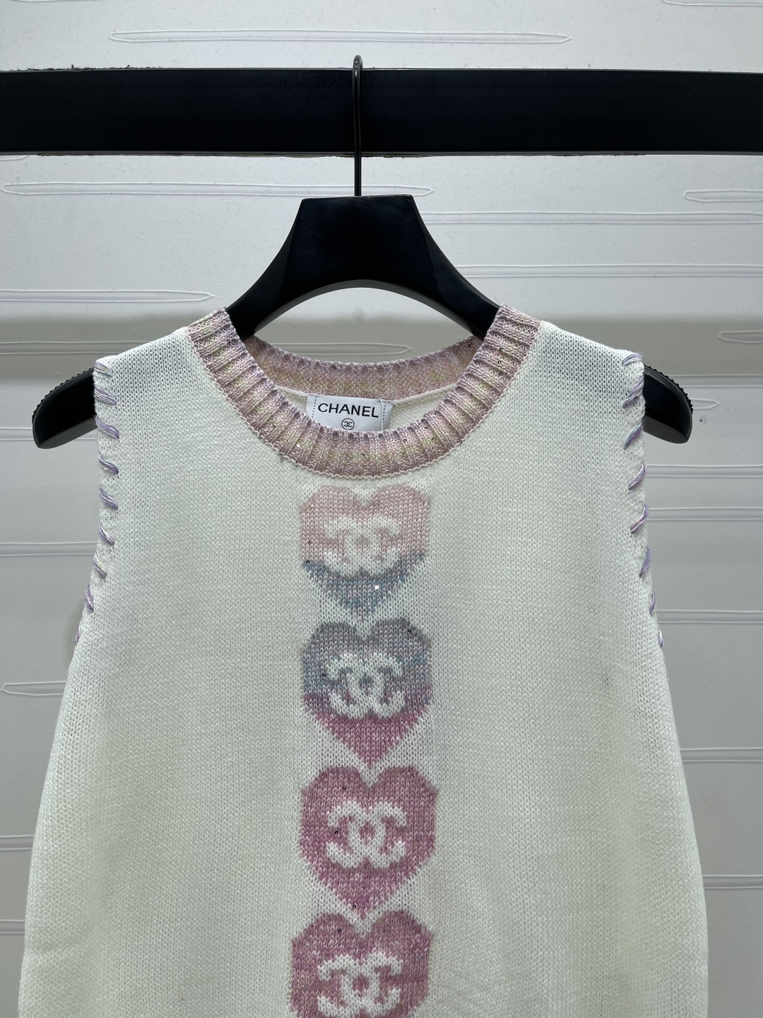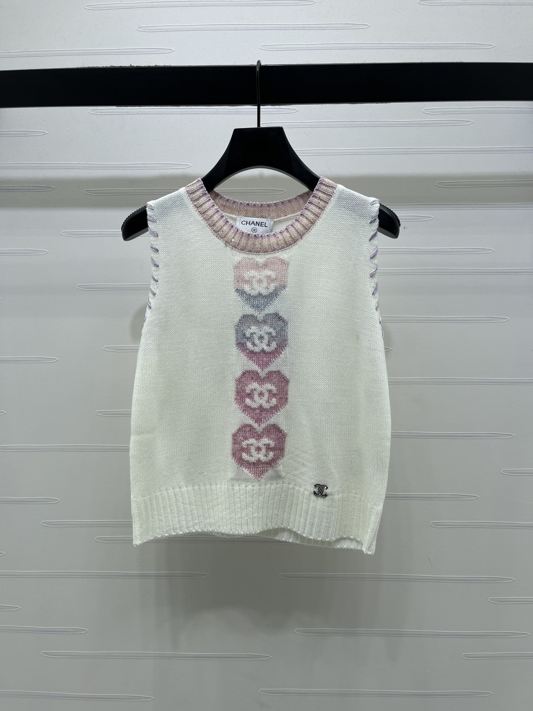 Details: Spring-summer , premium round-neck knit vest with heart pattern, imported wool yarn, soft and delicate, versatile and flattering.