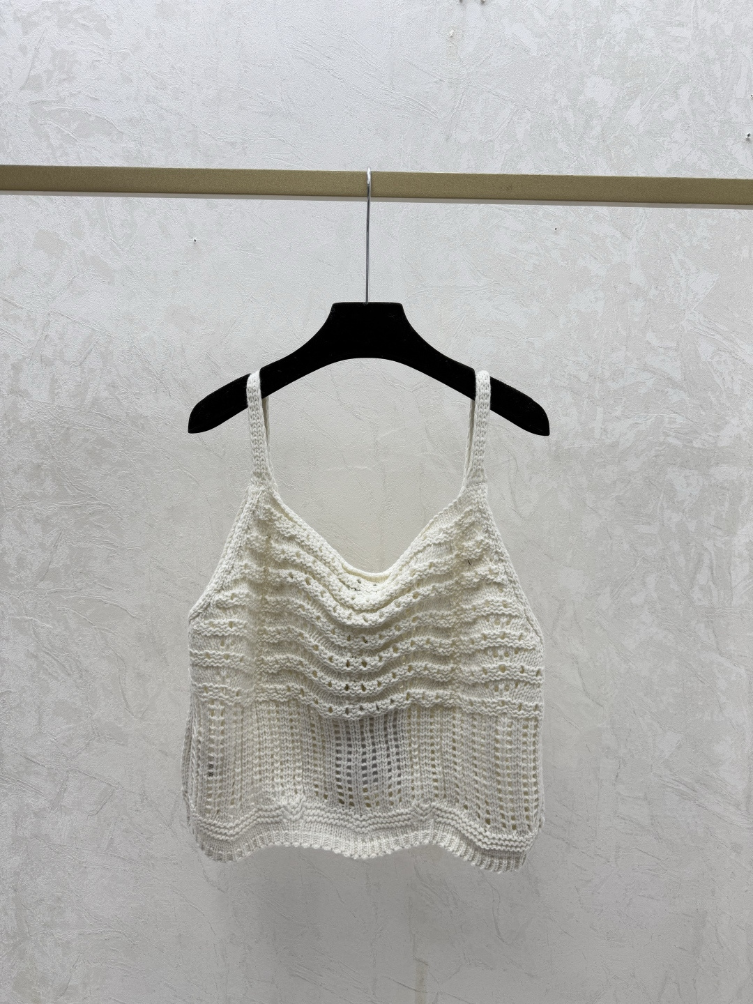 Details: Early spring chic solid-color knitted camisole with a delicate hollow design.