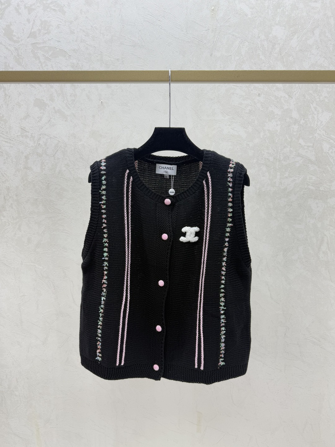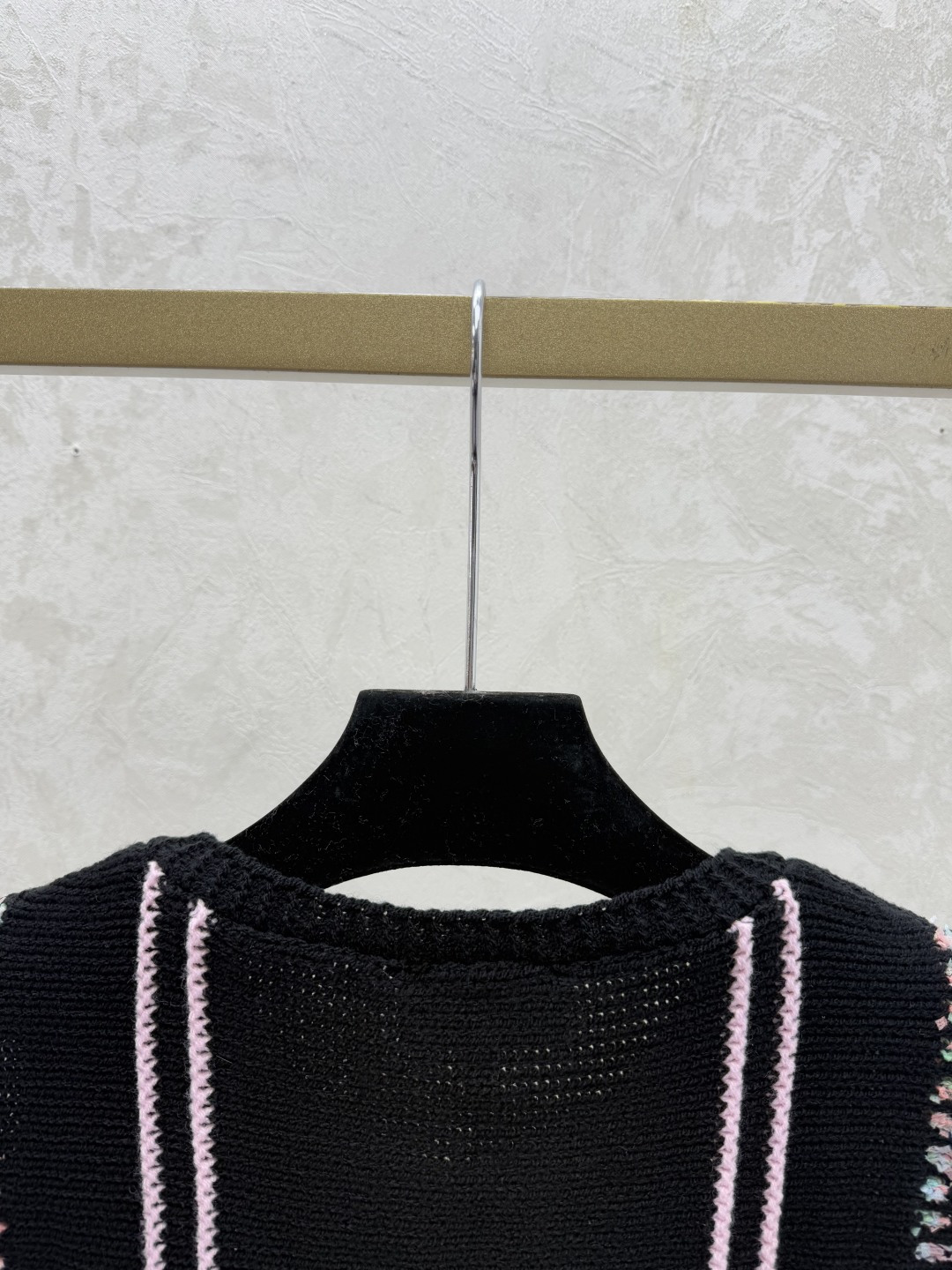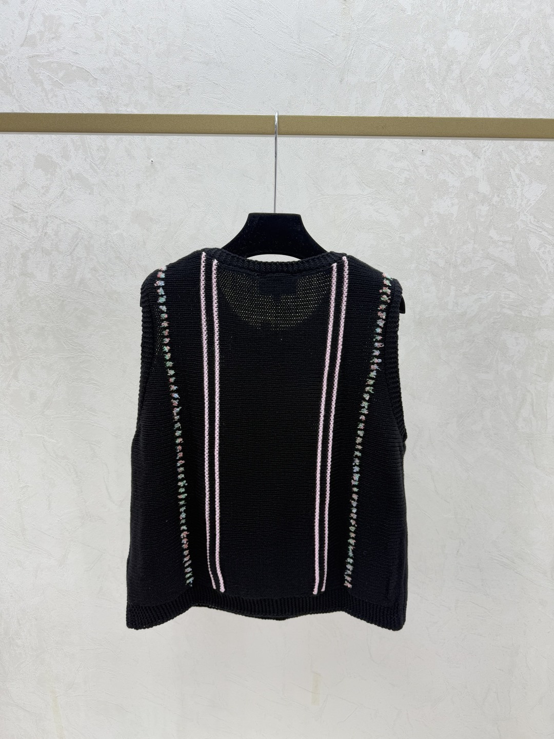 Details: Early spring new: Color-block jacquard round-neck knitted vest cardigan in black, sizes 36-40, with high-end customization.