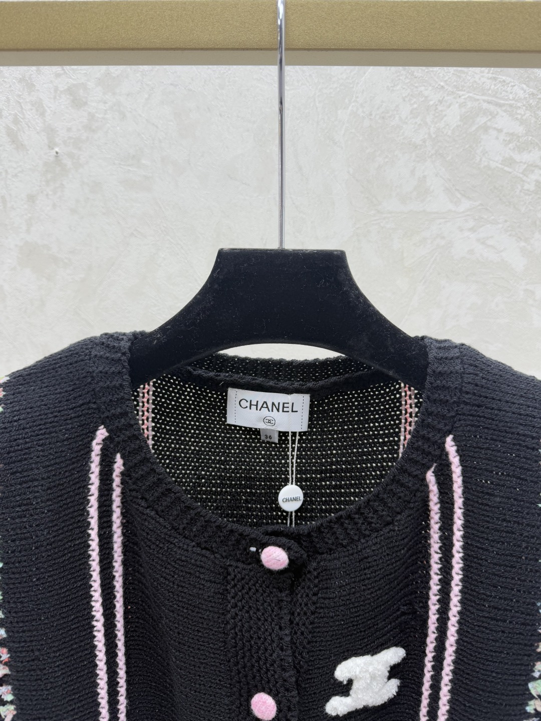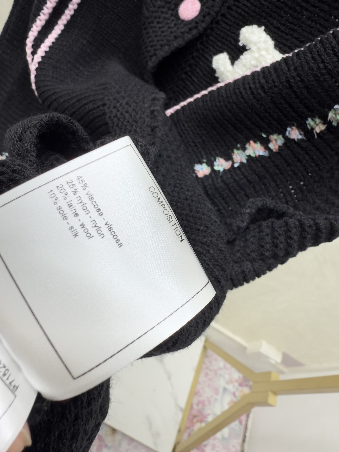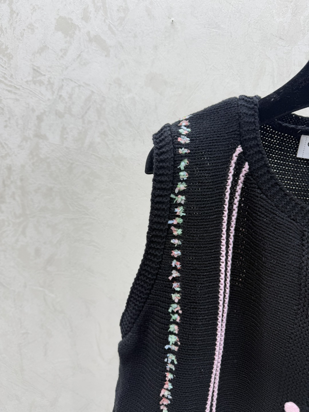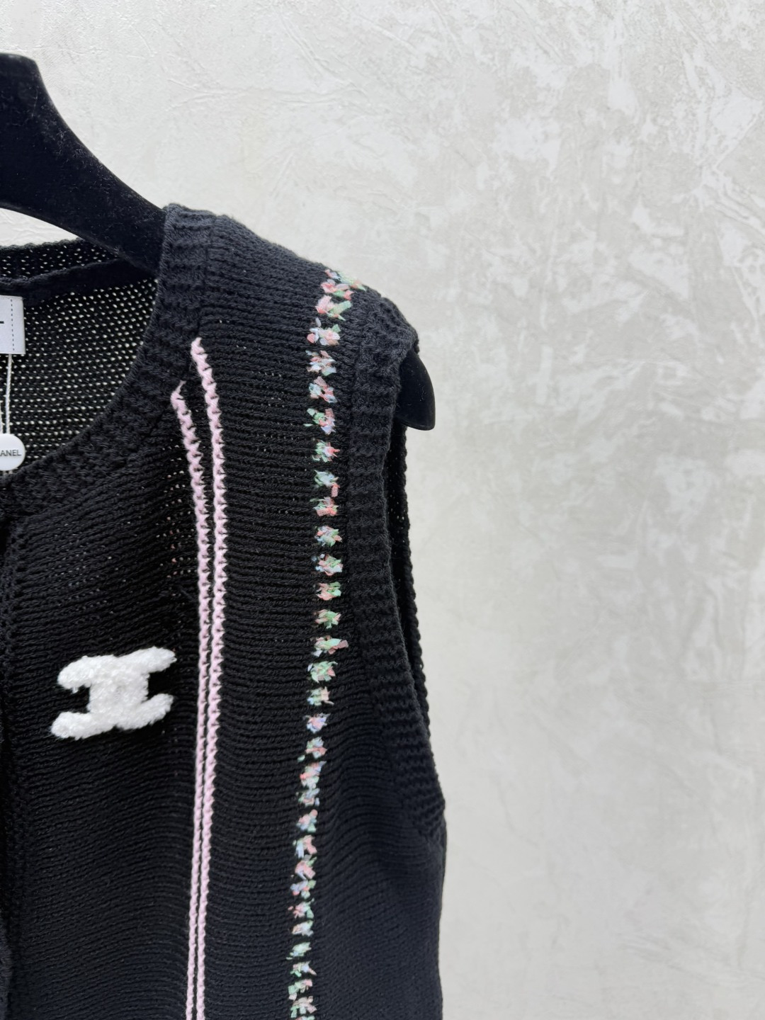 Details: Early spring new: Color-block jacquard round-neck knitted vest cardigan in black, sizes 36-40, with high-end customization.