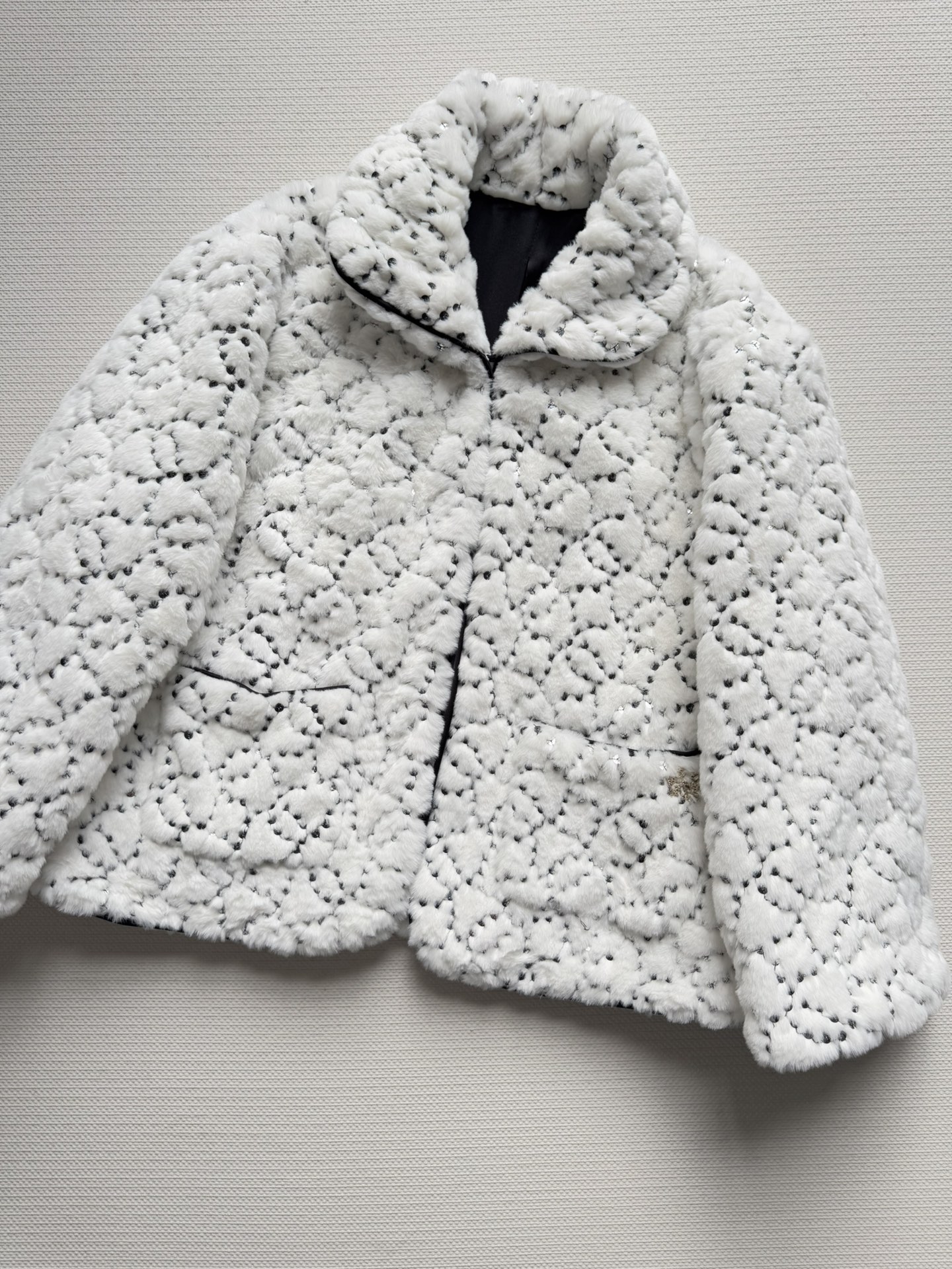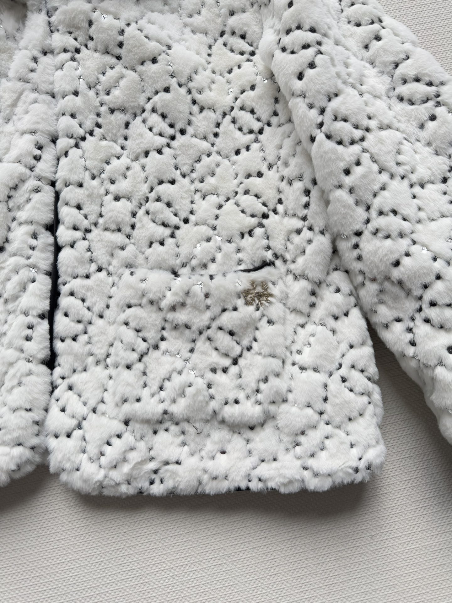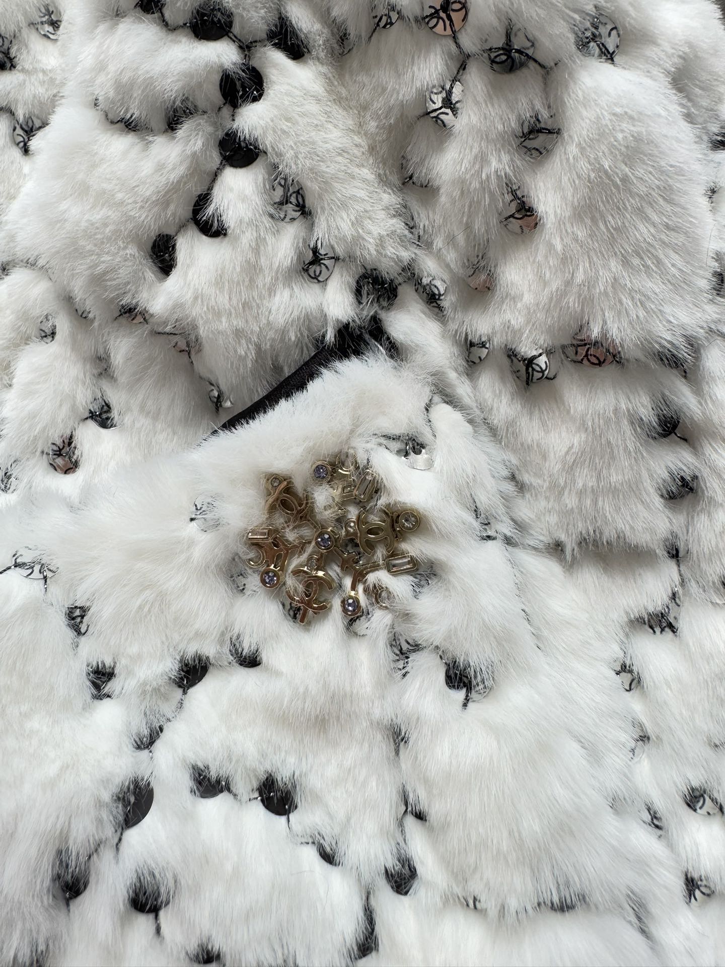 Details: New ski series faux fur short coat with sequins and double C logo, soft, warm and fashionable, available in SML sizes