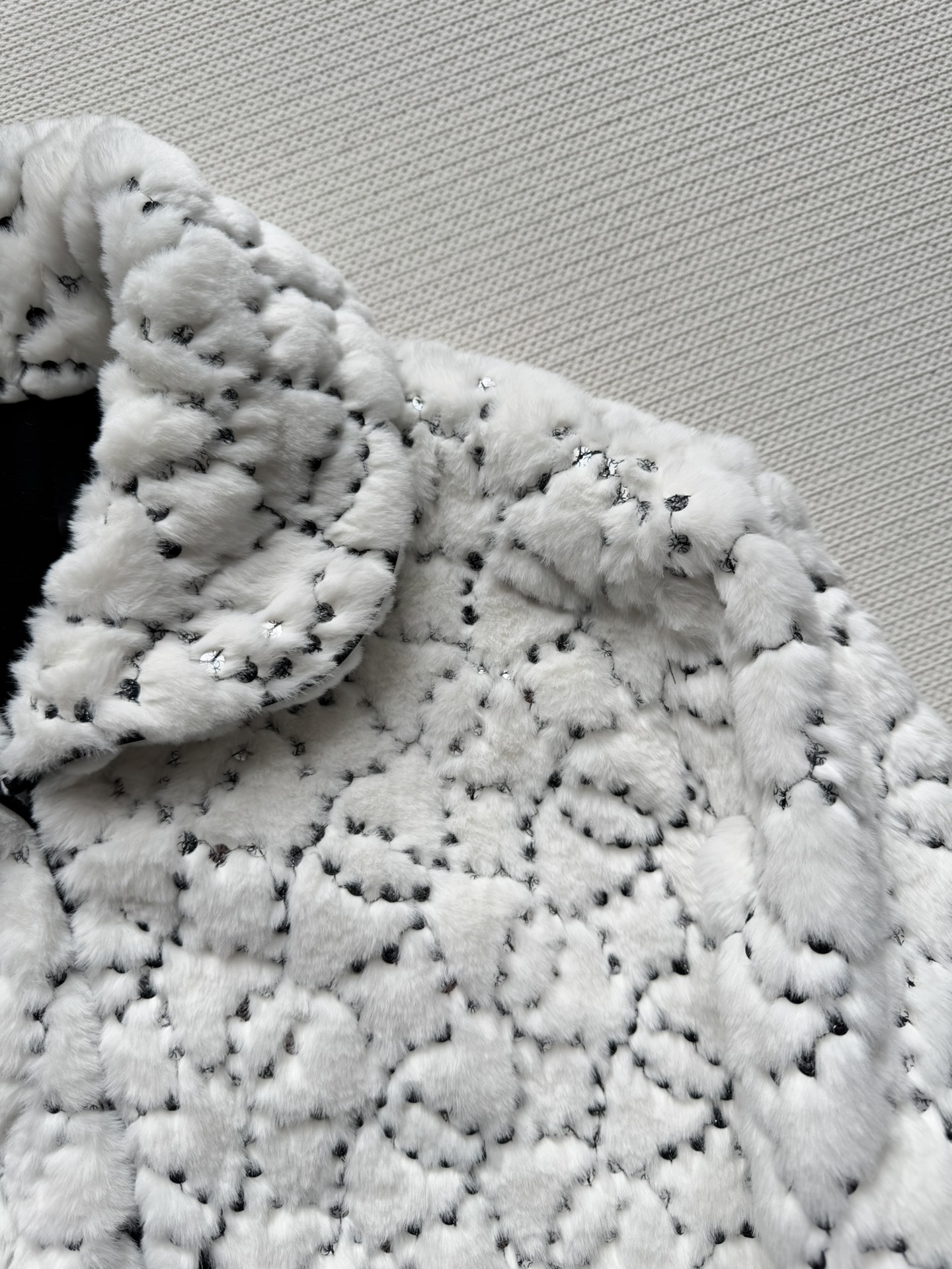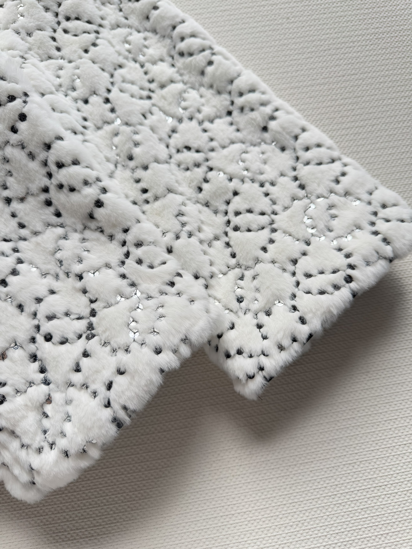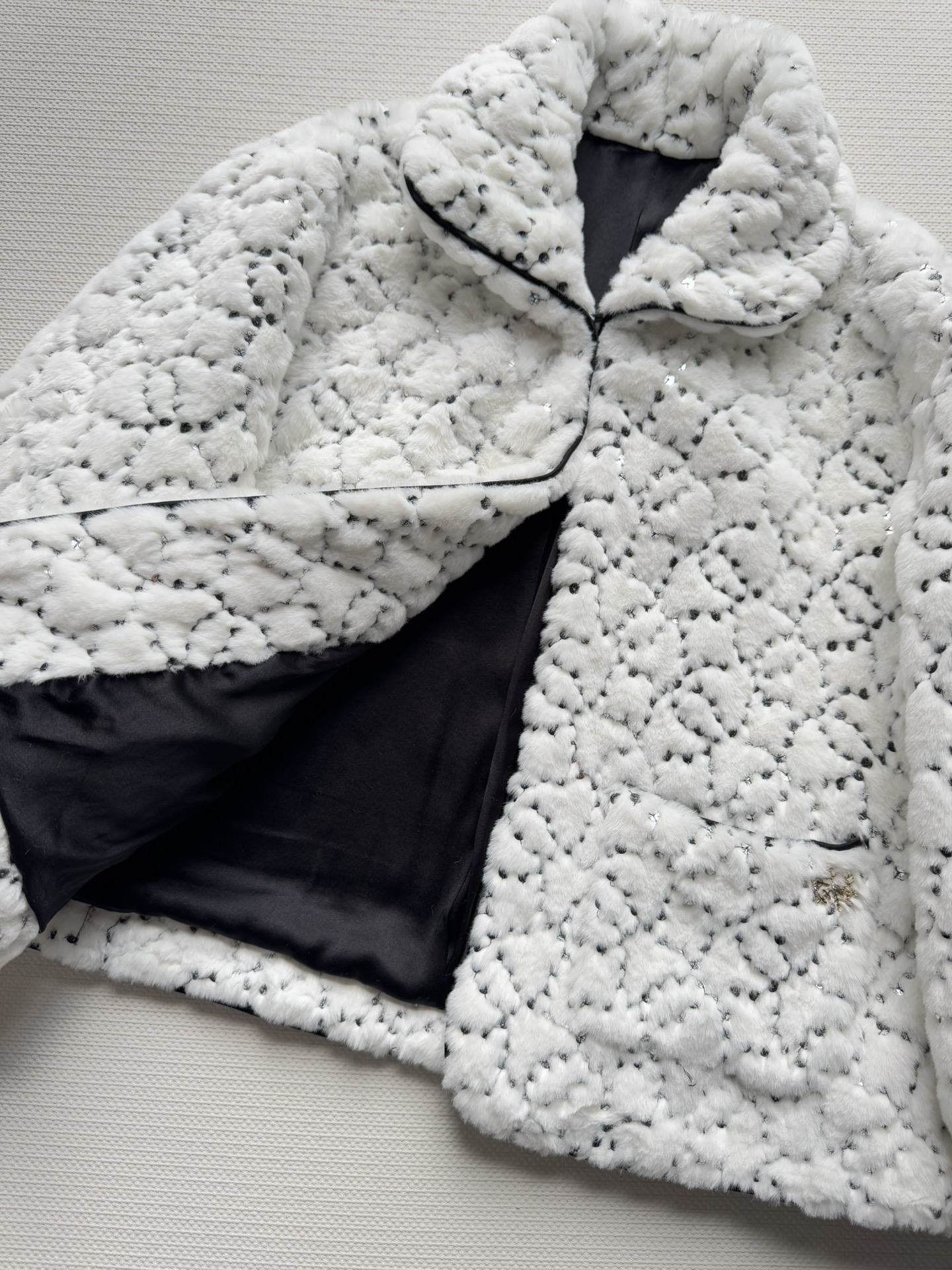 Details: New ski series faux fur short coat with sequins and double C logo, soft, warm and fashionable, available in SML sizes