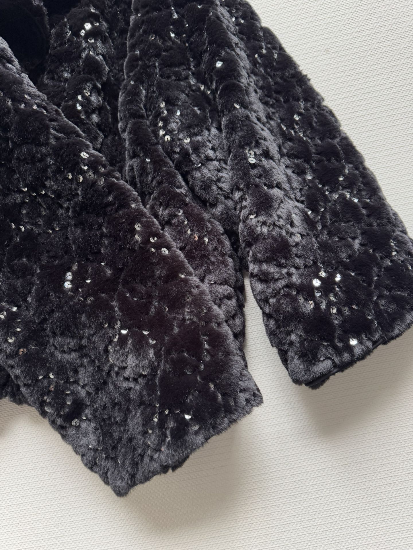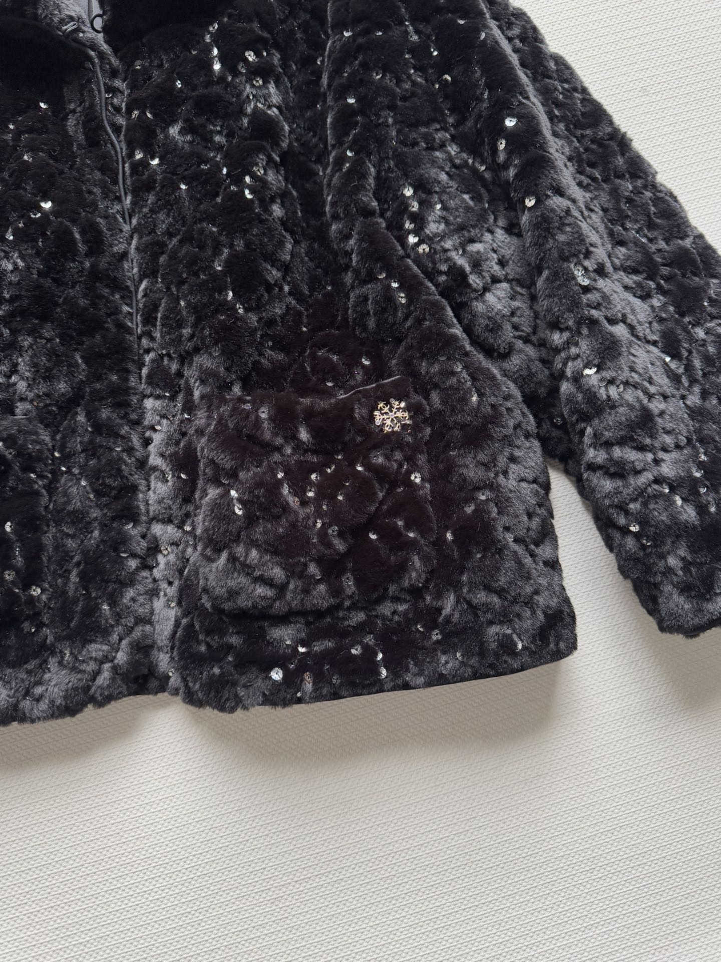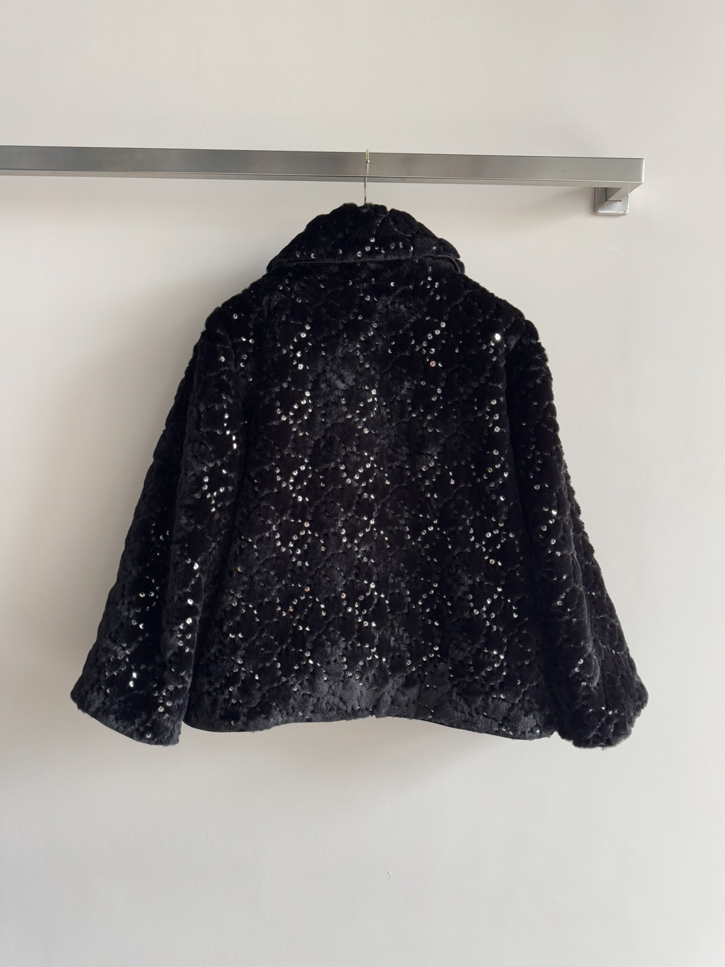 Details: New ski series faux fur short coat with sequins and double C logo, soft, warm and fashionable, available in SML sizes