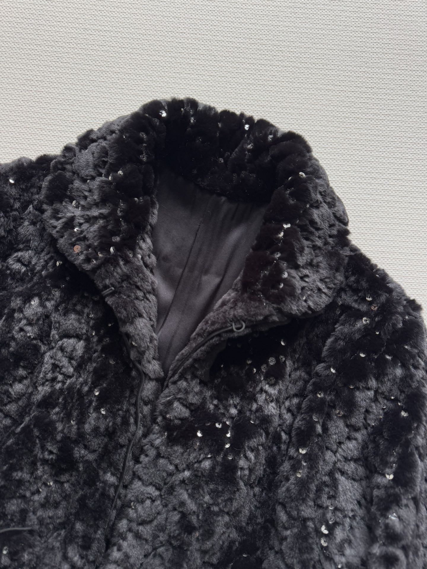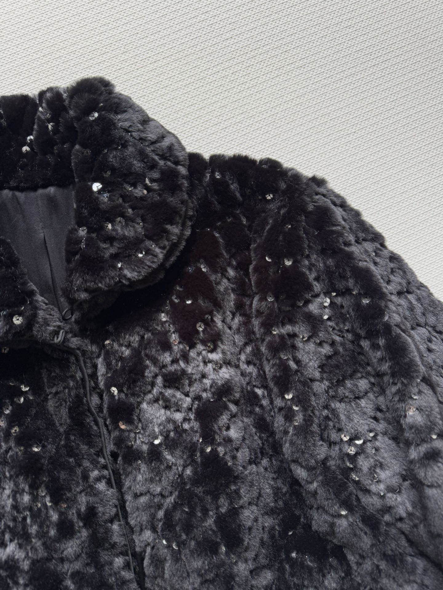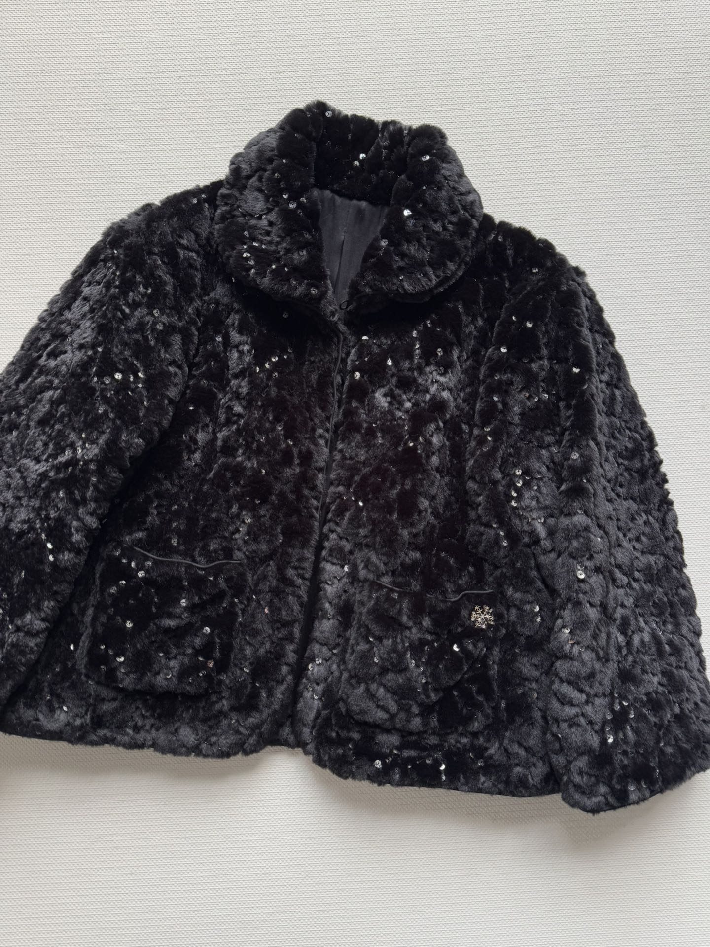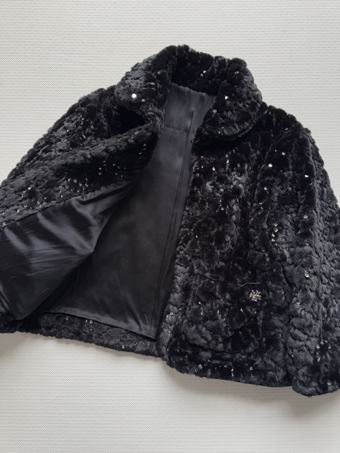 Details: New ski series faux fur short coat with sequins and double C logo, soft, warm and fashionable, available in SML sizes