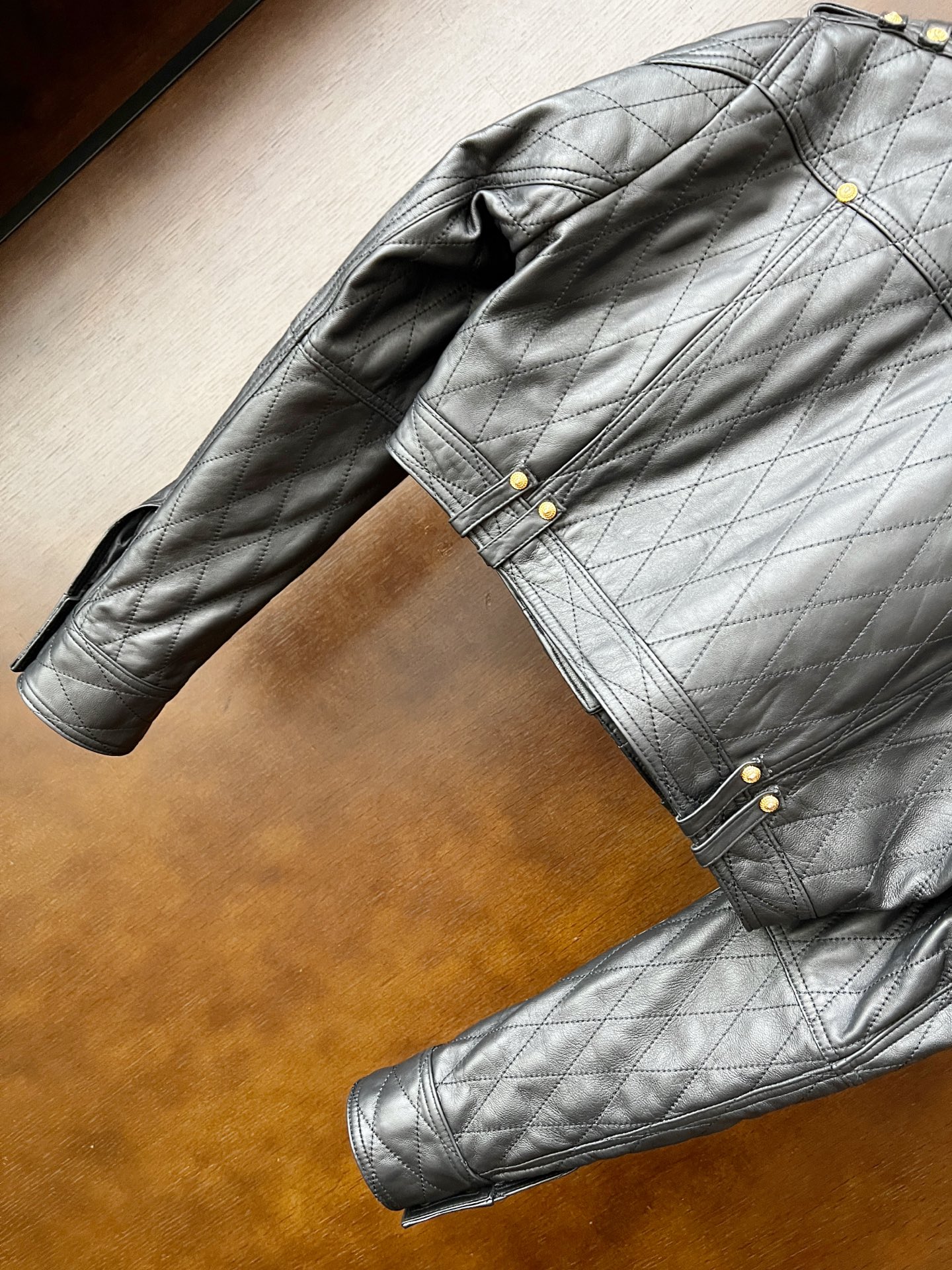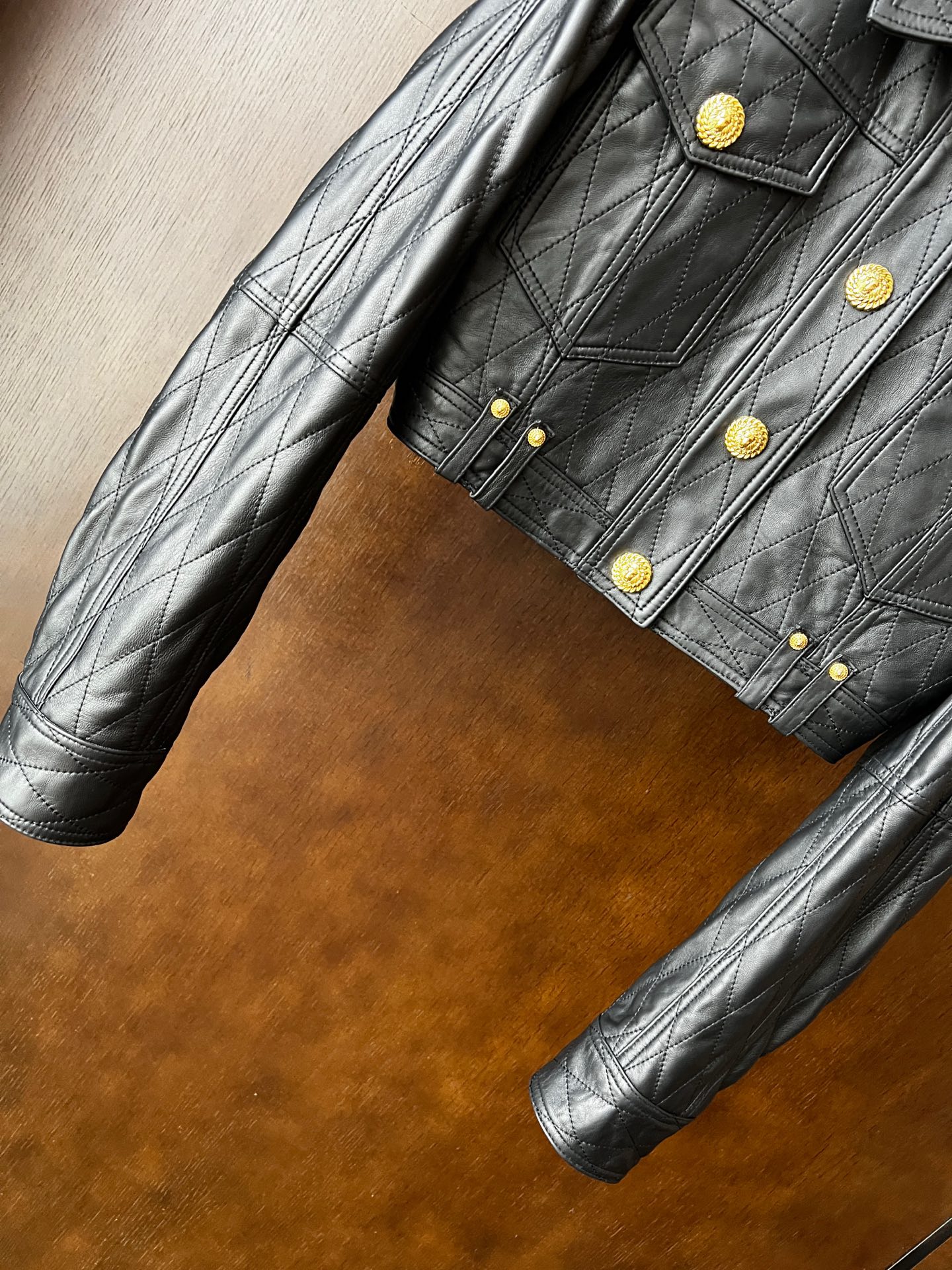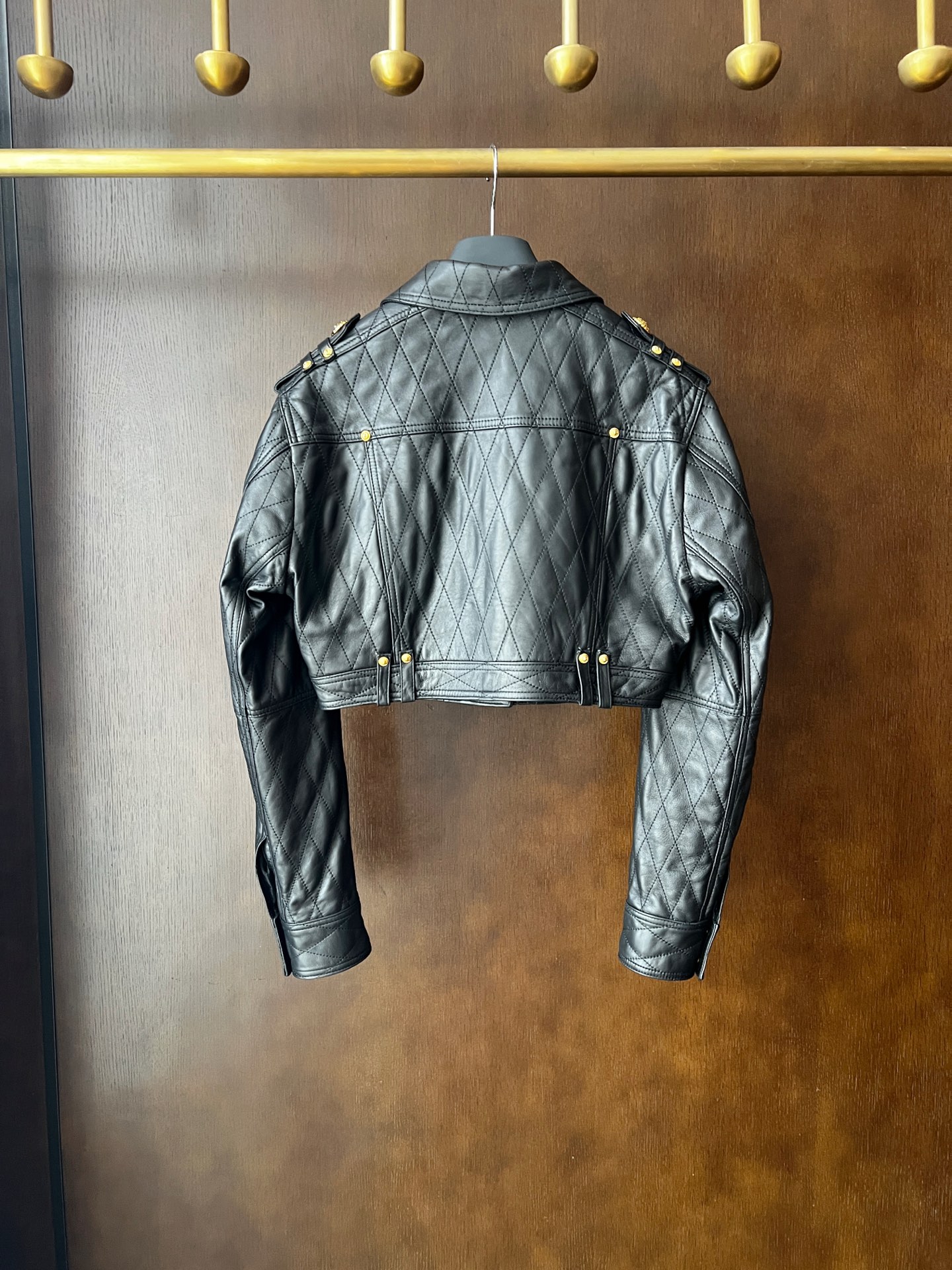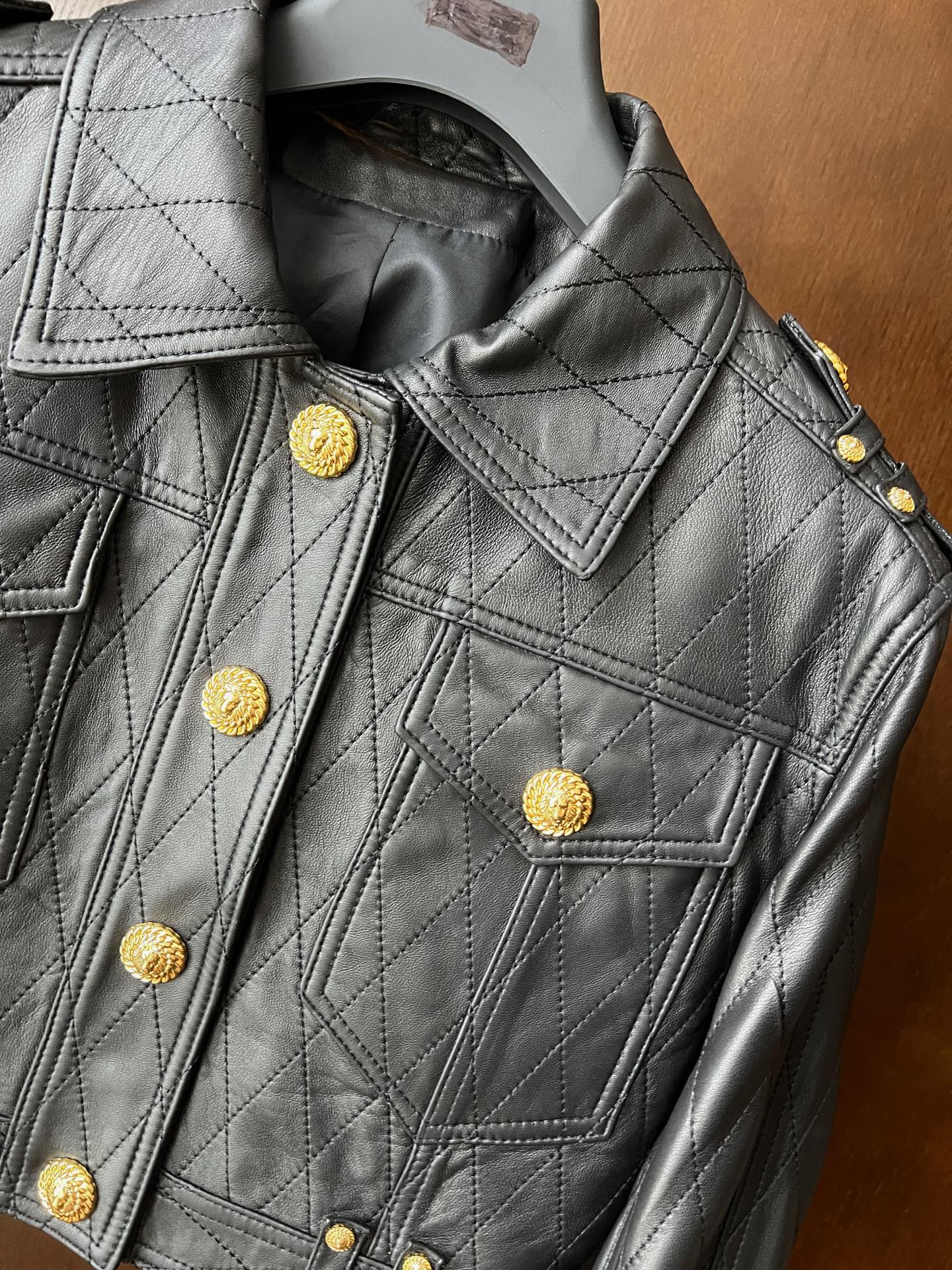 Details: Spring-Summer classic leather jacket, drop-shoulder, turquoise lambskin, high-end customization