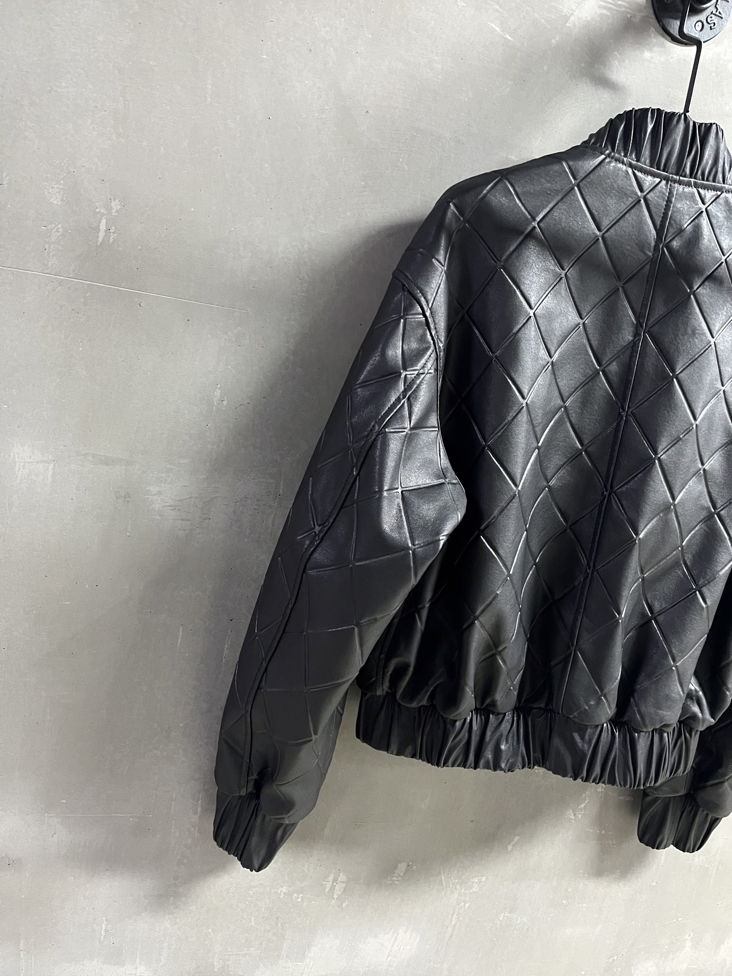 Details: spring baseball uniform with customized diamond - grid pattern, made of imported Turkish lambskin. High - end customization, fine workmanship