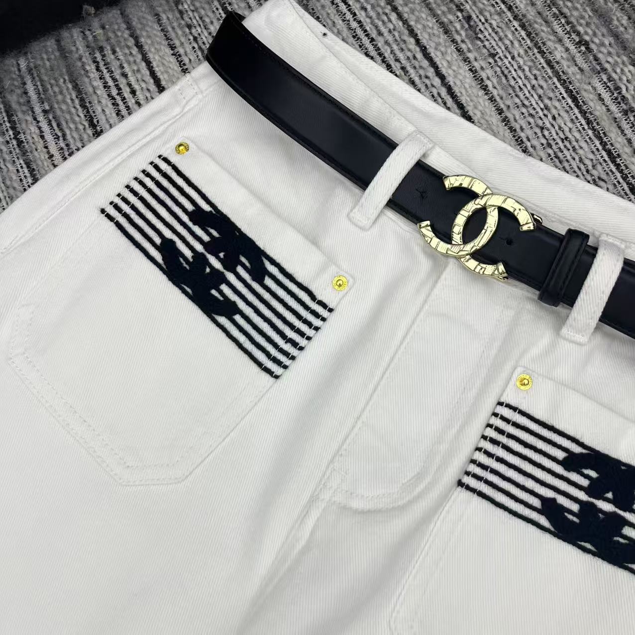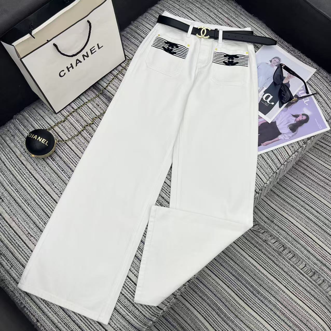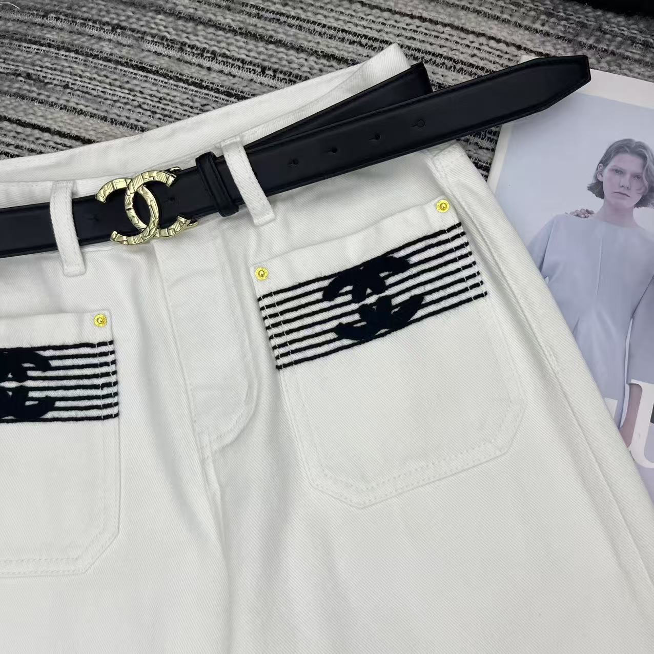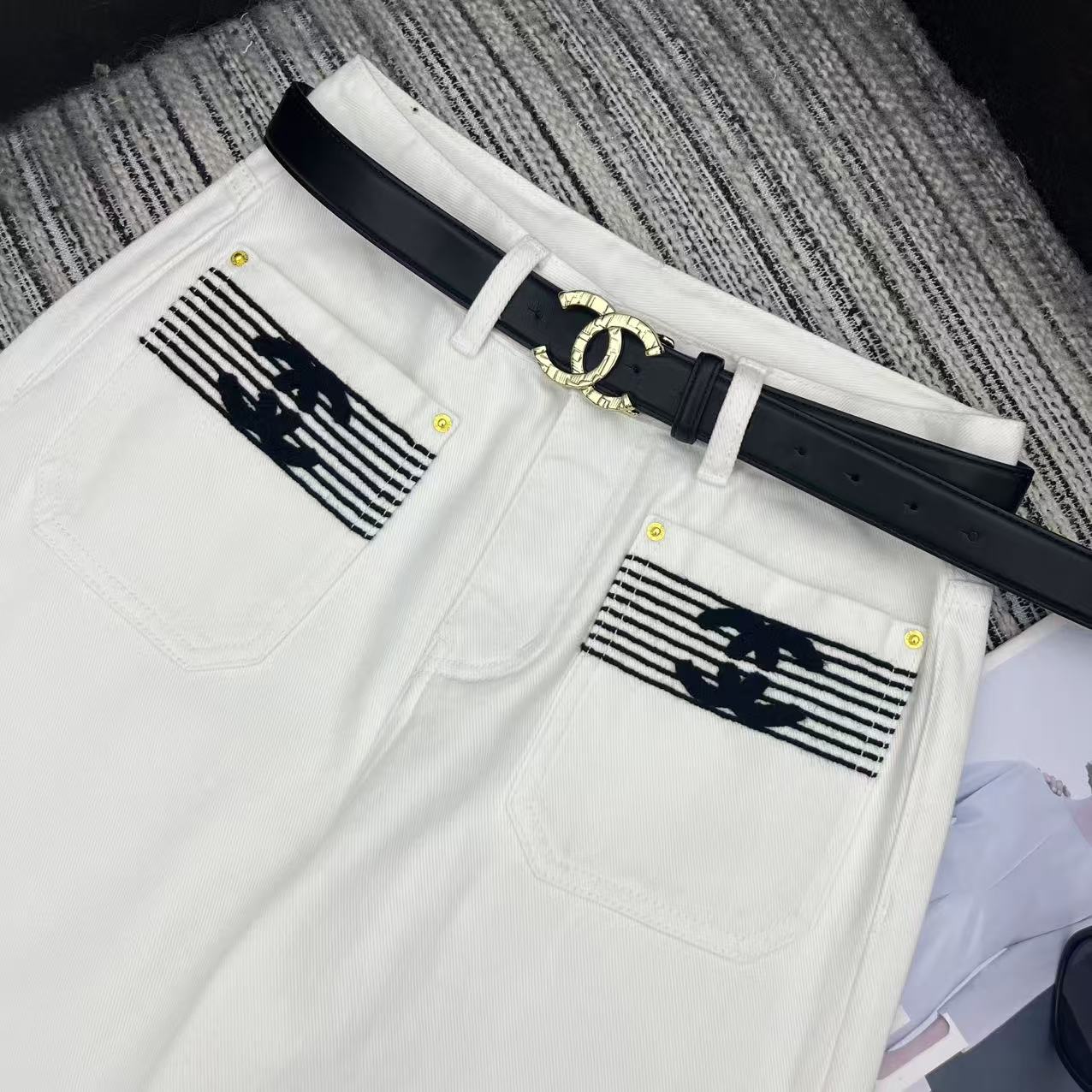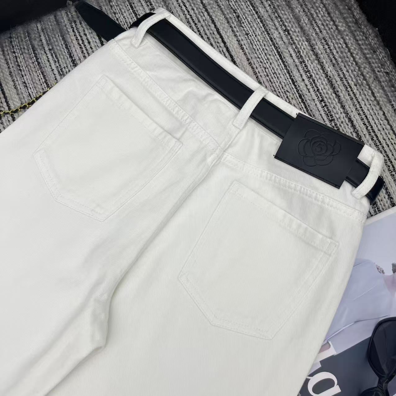 Details: Highly recommended early autumn series, new double-C striped pocket denim straight-leg trousers with a custom leather belt, available in SML sizes.