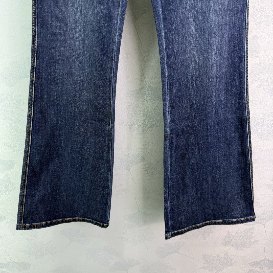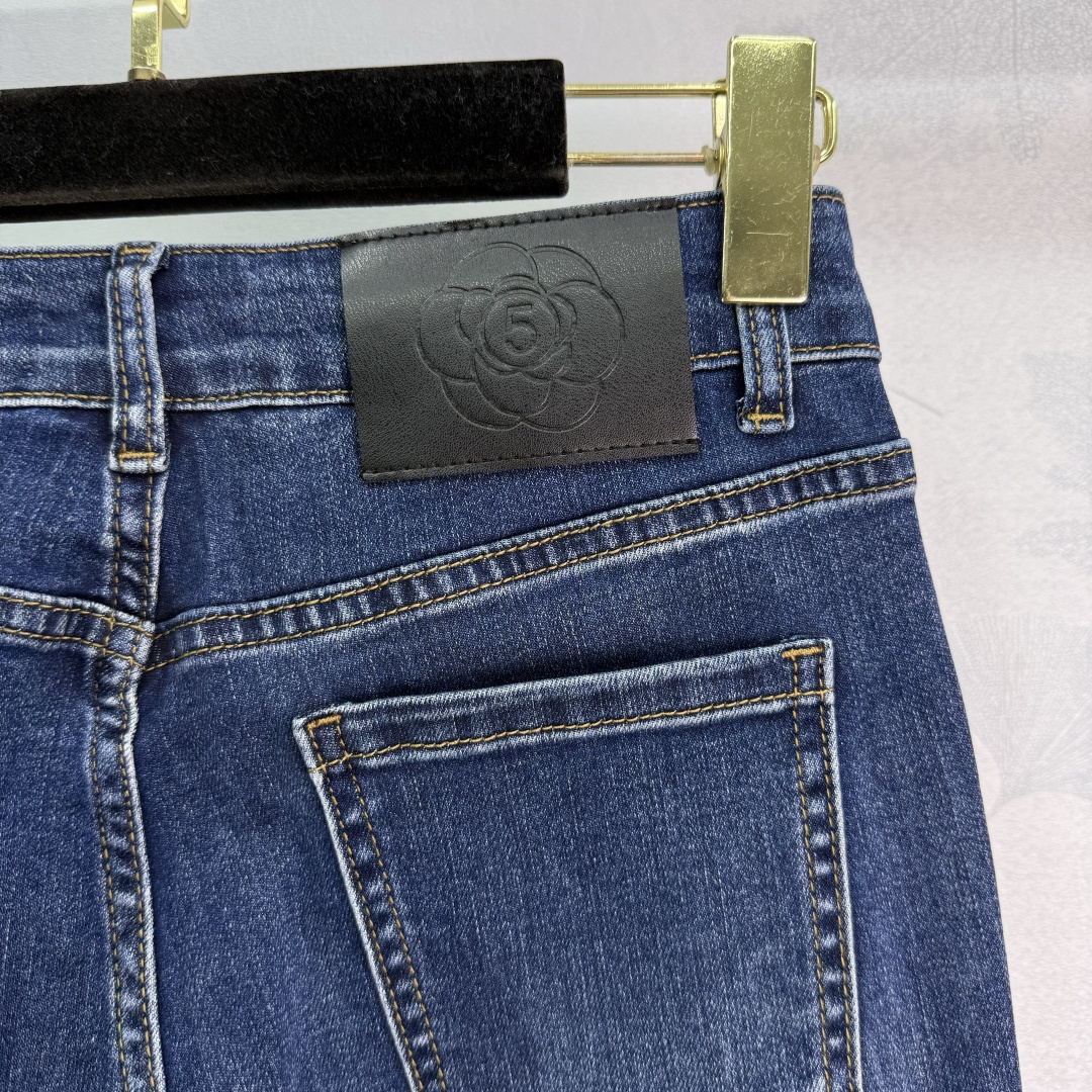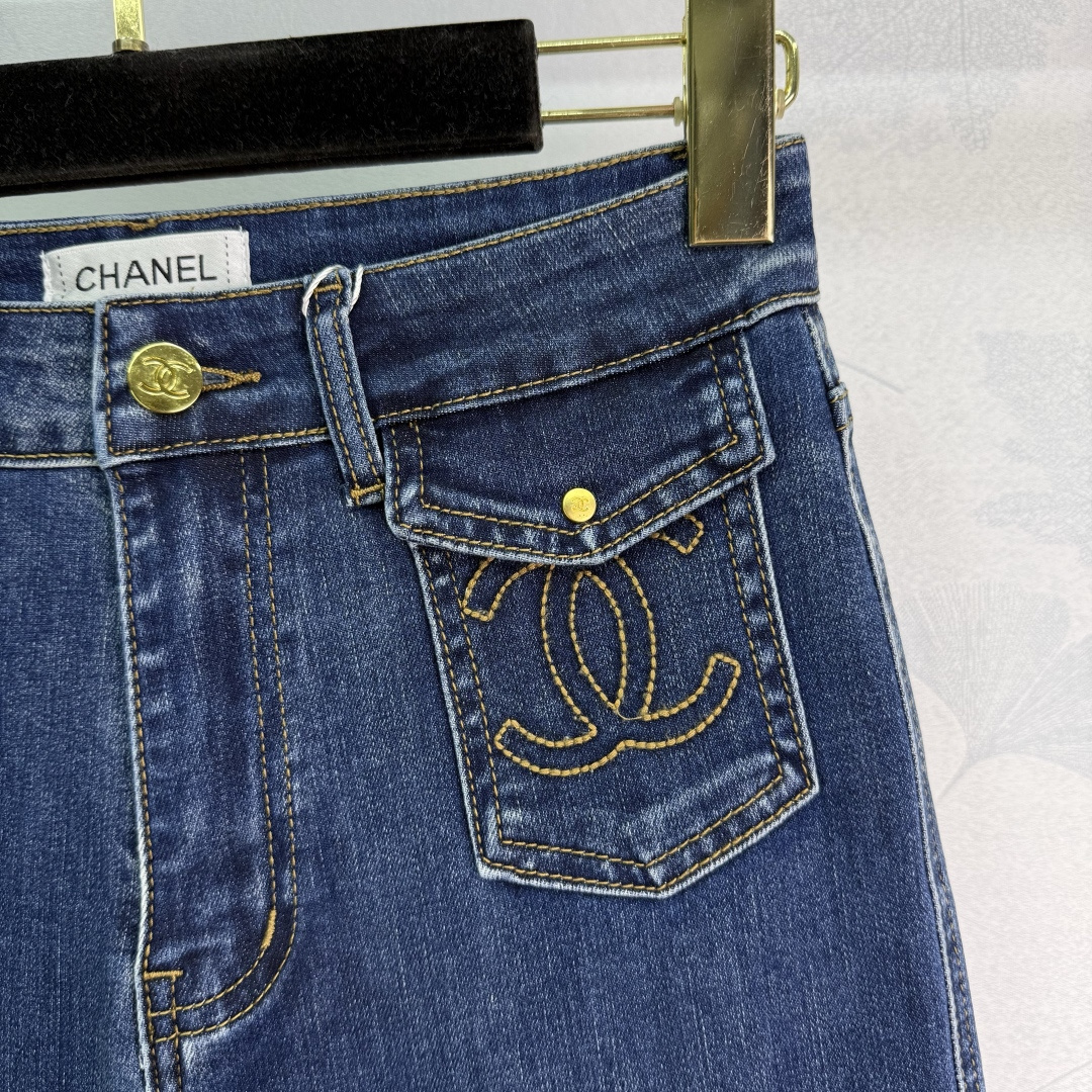 Details: early autumn denim flare pants with double C logo embroidery, high waist, slim fit, comfortable and stretchy.