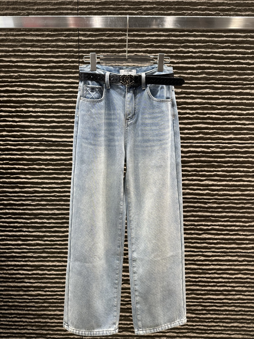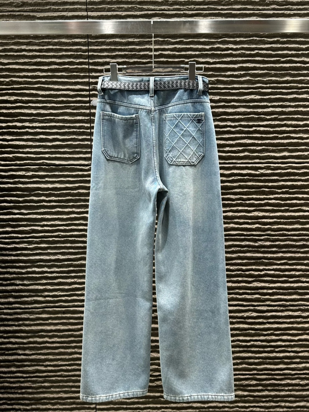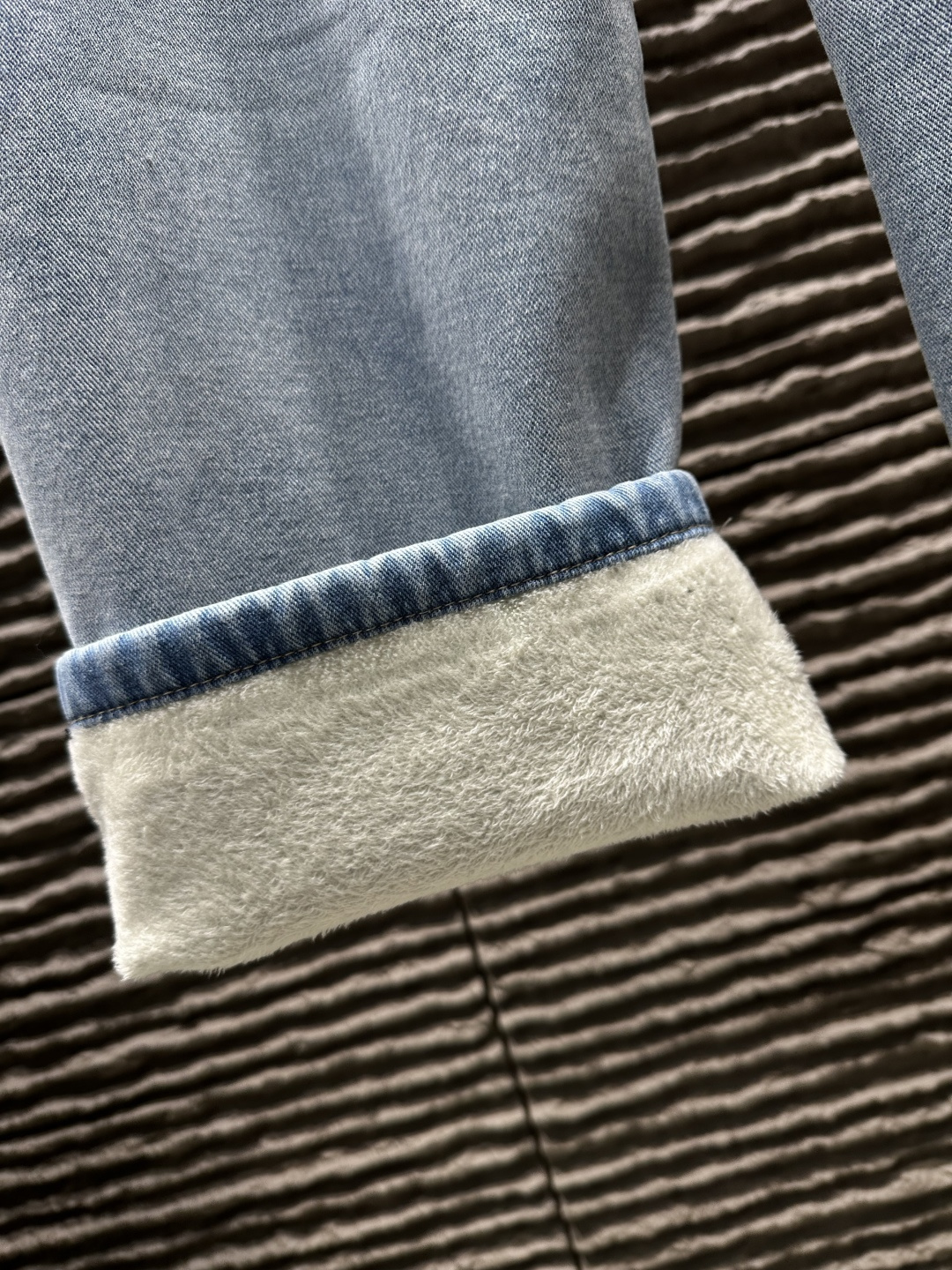 Details: New Autumn-Winter Thick Denim Straight-leg Pants with Belt, Composite Fleece, Sizes S, M, L, XL