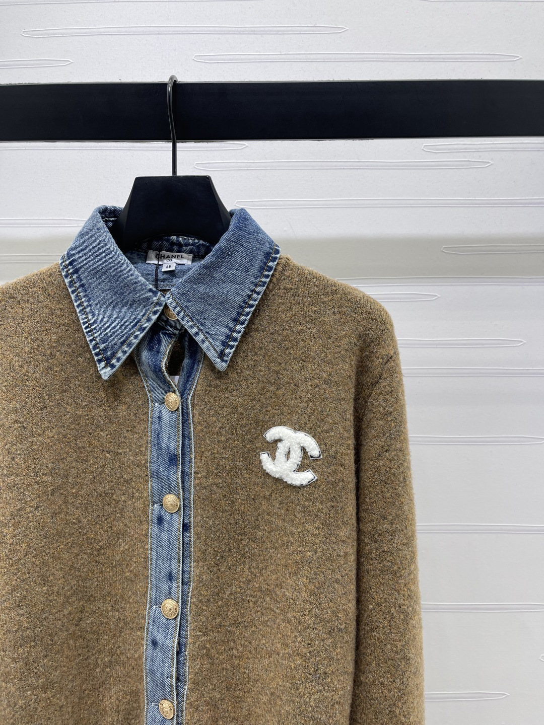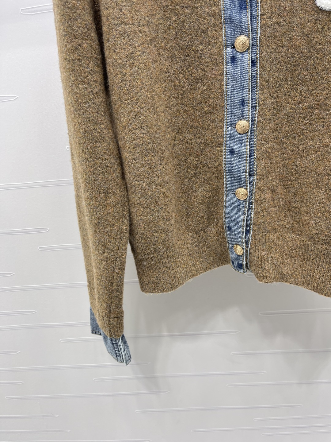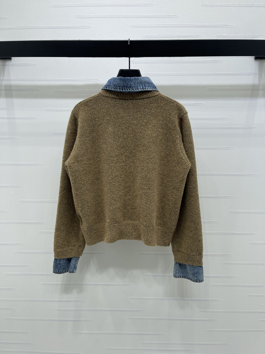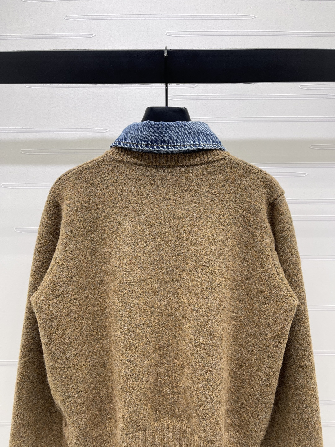 Details: Autumn-Winter Denim-Spliced Collared Knit Cardigan, 2 colors, SML sizes. High-end custom, exquisite workmanship