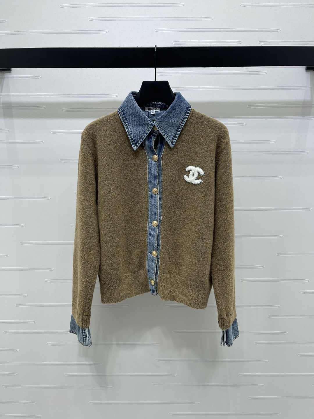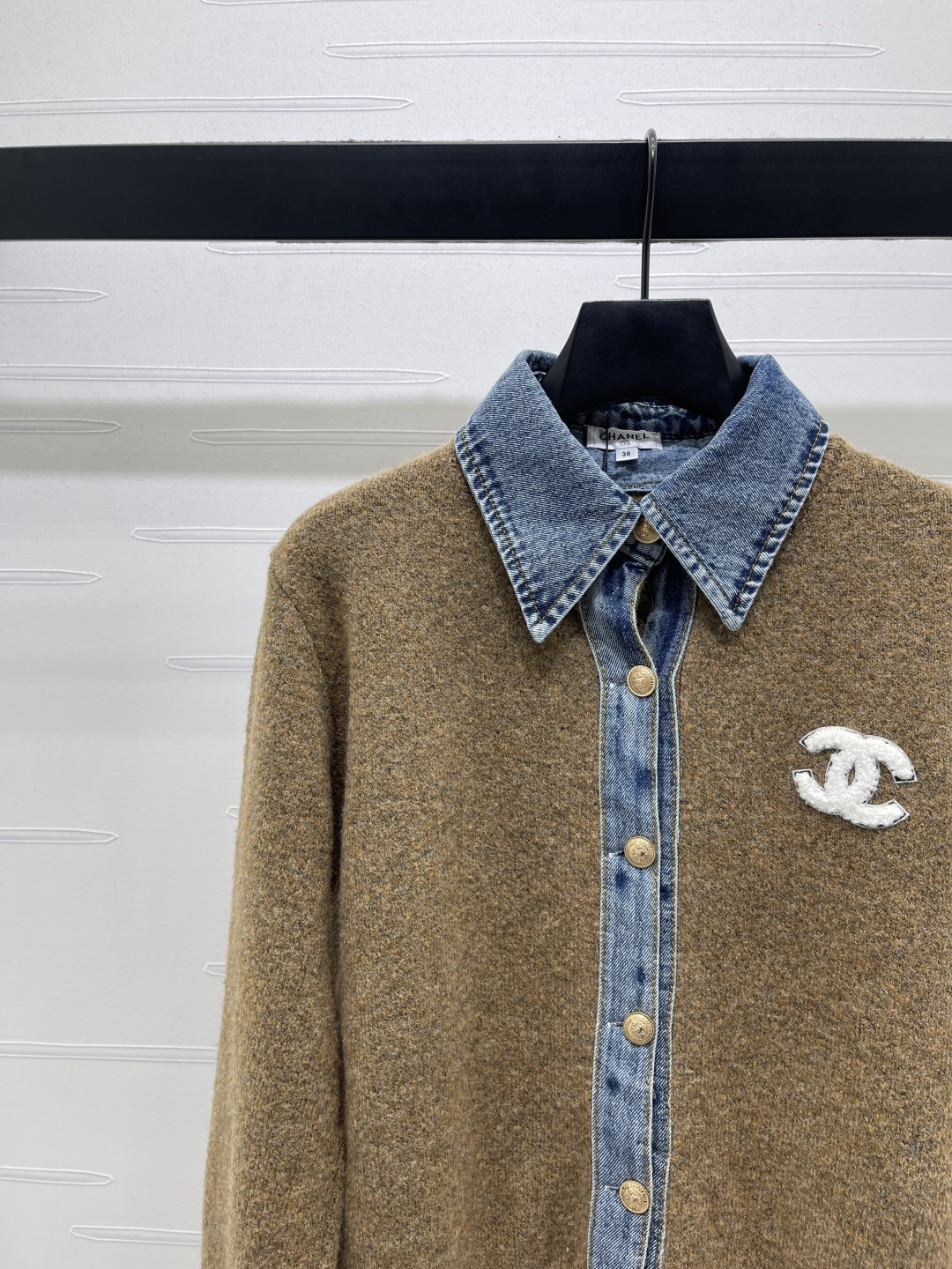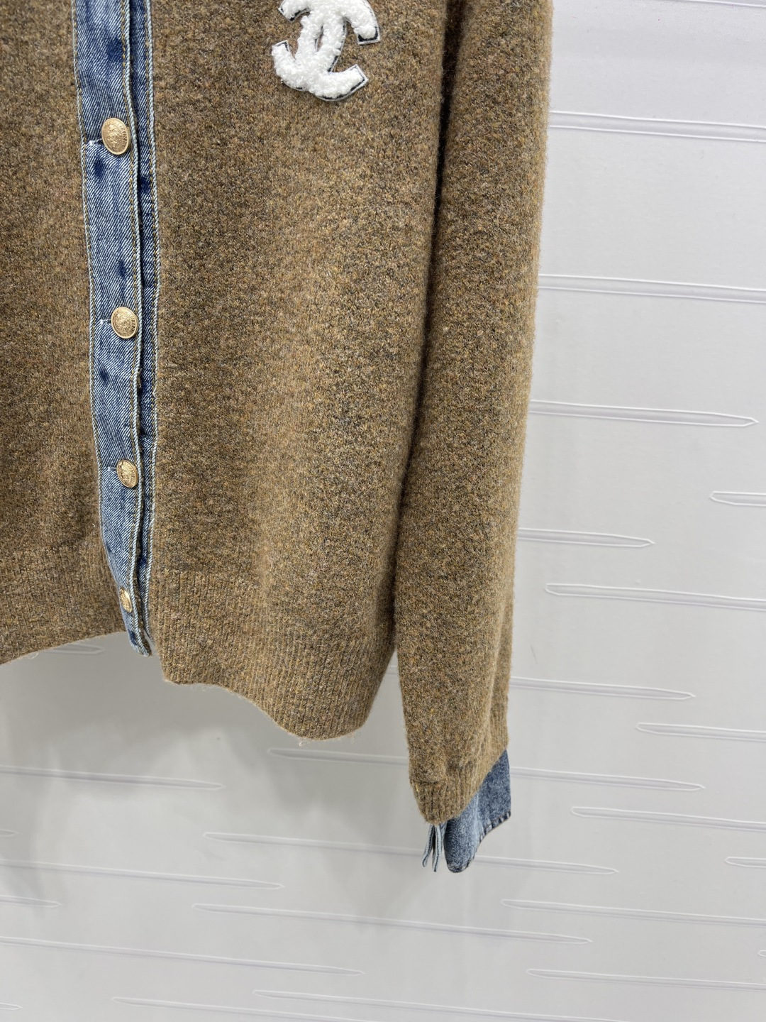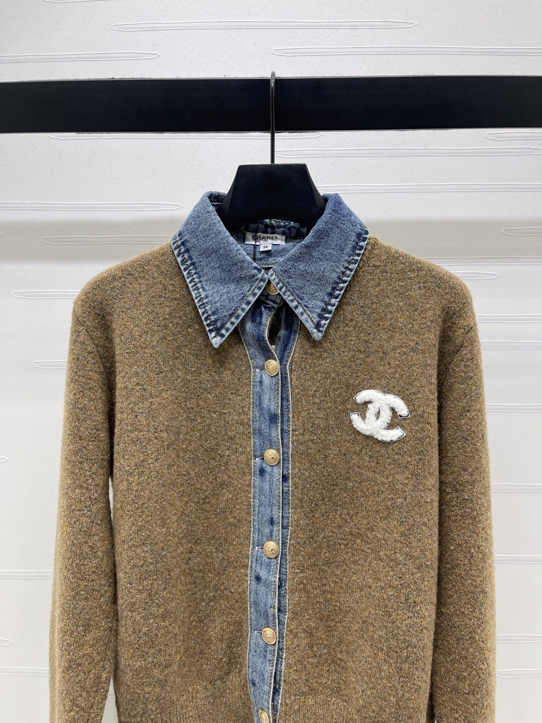 Details: Autumn-Winter Denim-Spliced Collared Knit Cardigan, 2 colors, SML sizes. High-end custom, exquisite workmanship