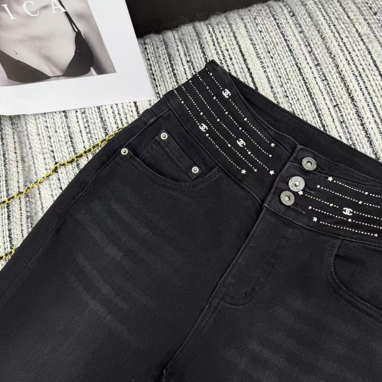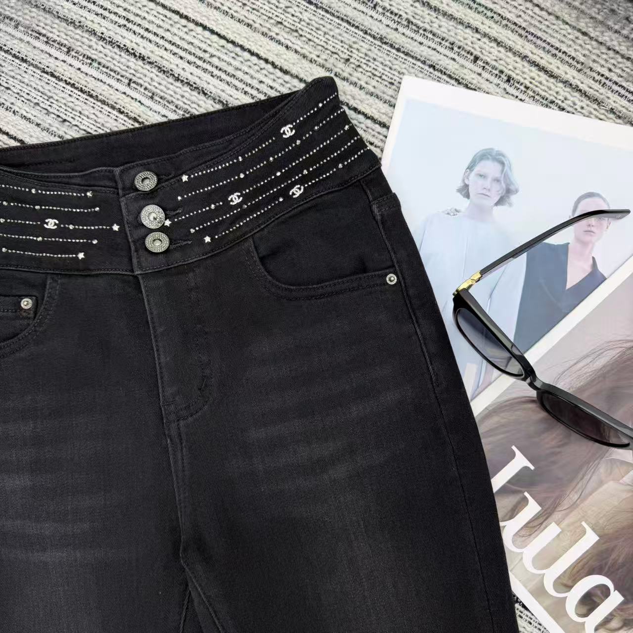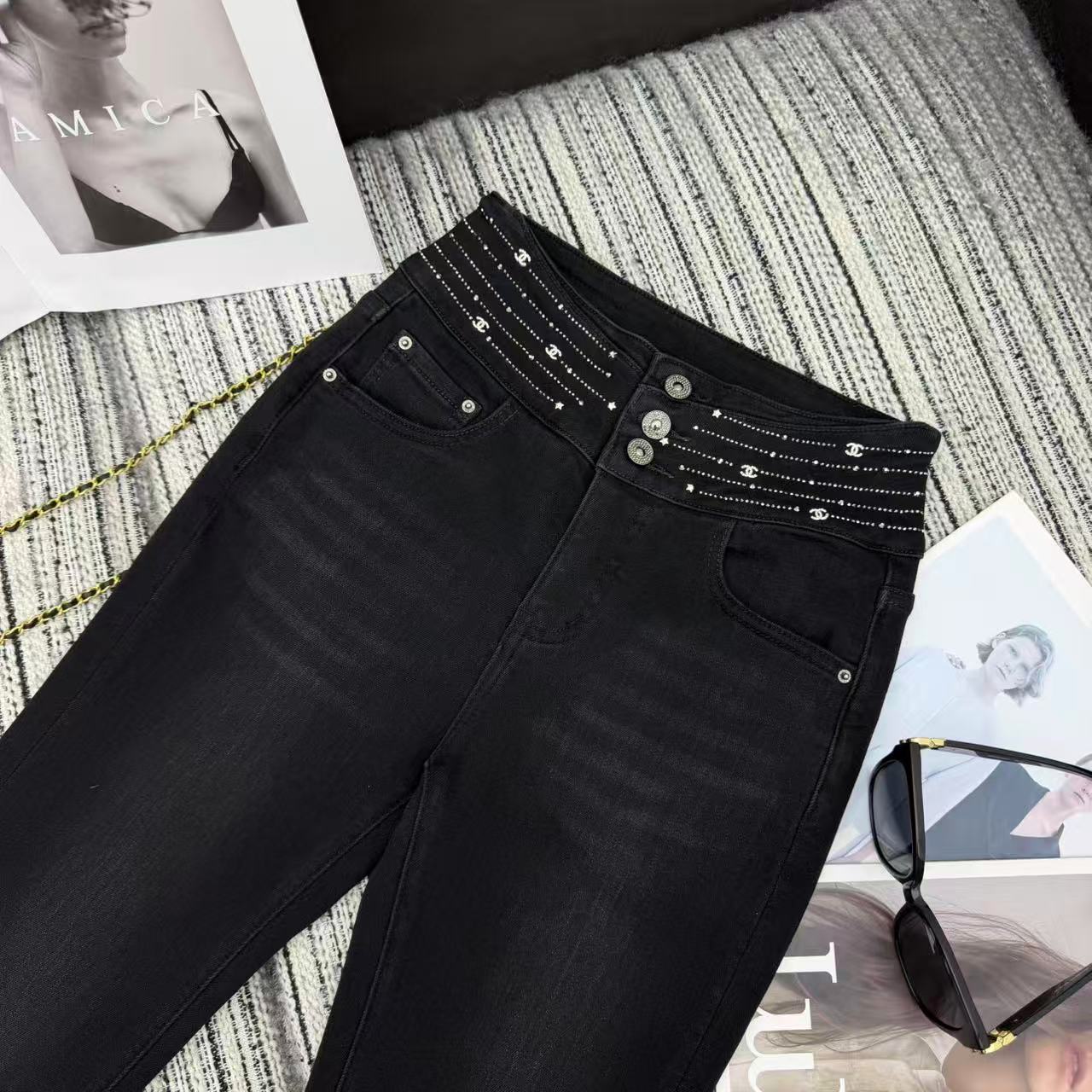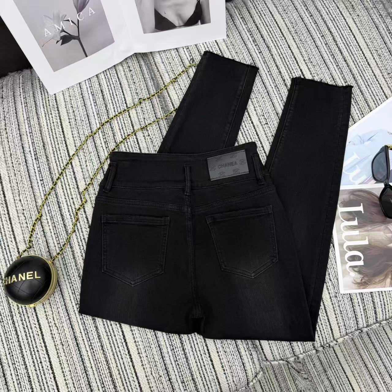 Details: Highly recommended skinny jeans for early autumn and winter, featuring a studded logo, fleece-lined, available in two colors, advanced customization, and fine workmanship with 1:1 original quality