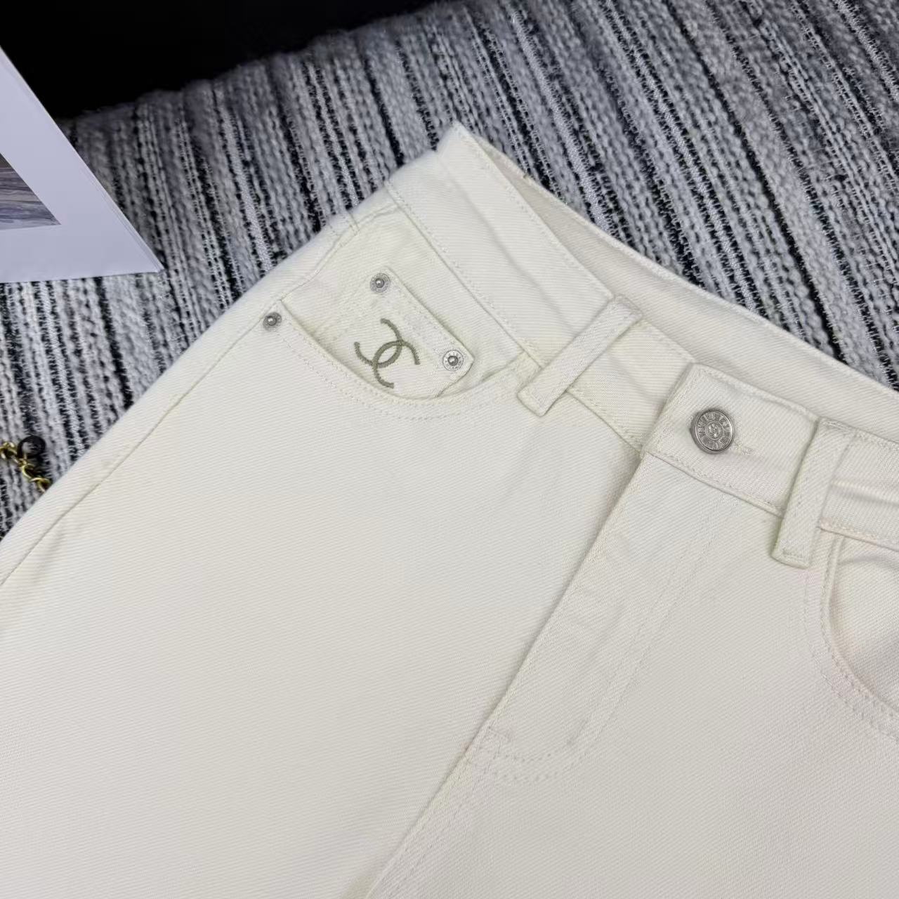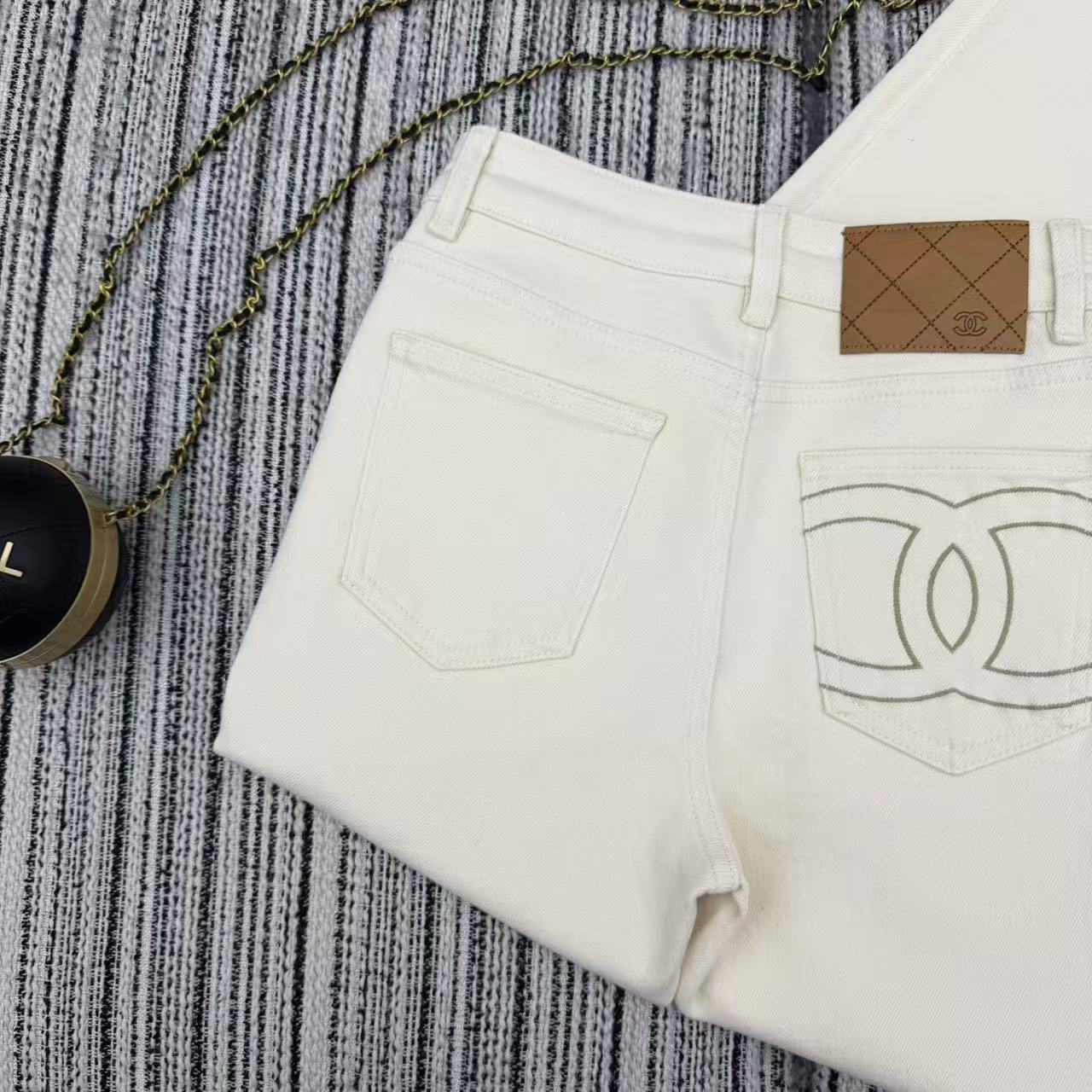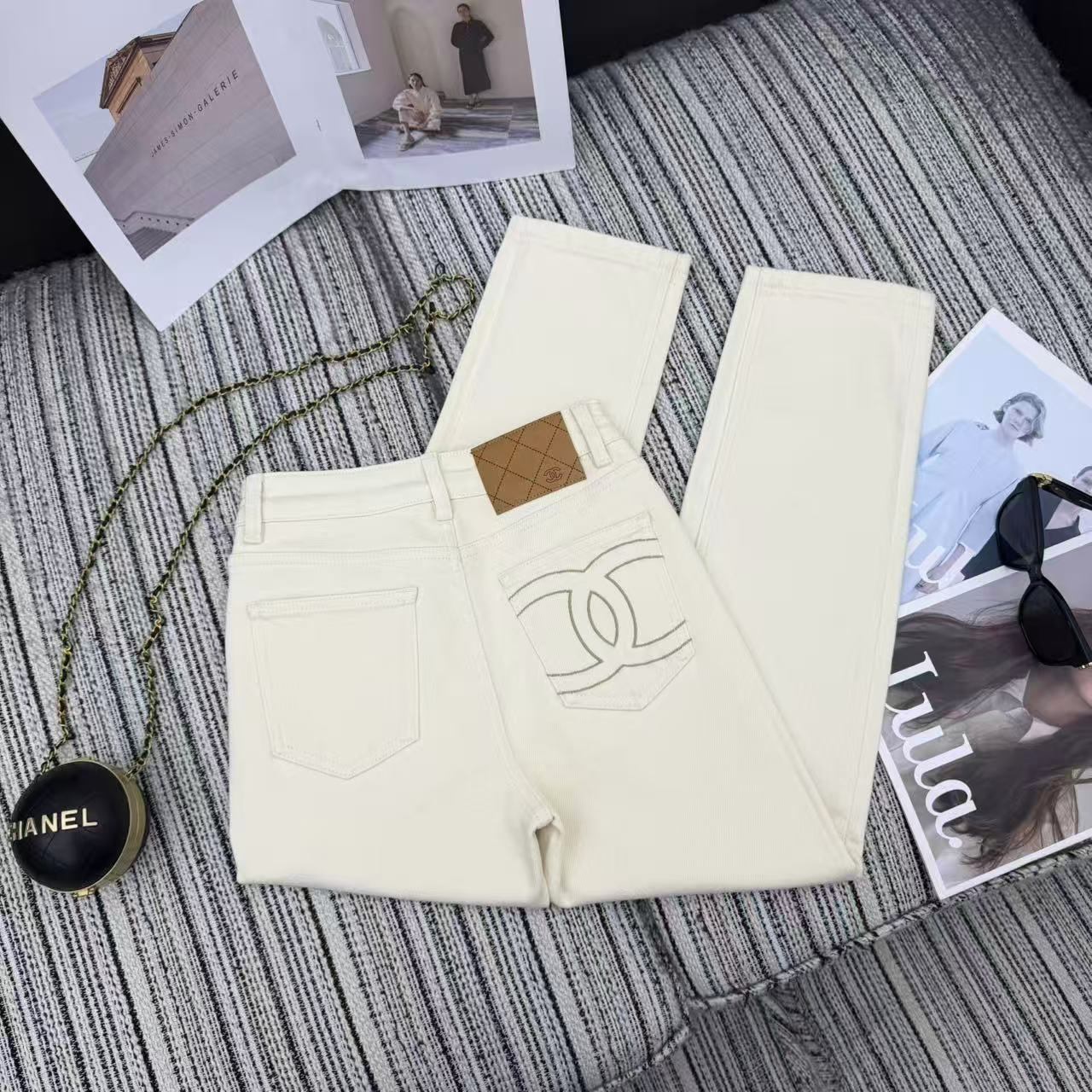 Details: Highly recommended early autumn and winter series, new skinny denim pants, fleece-lined and warm, embroidered double C logo, two colors.