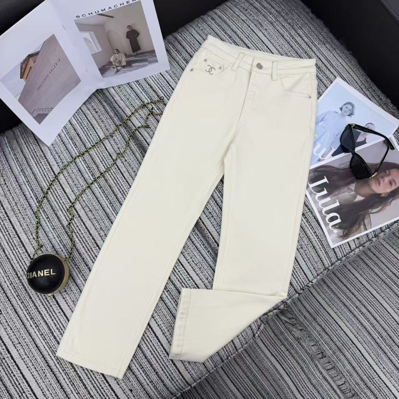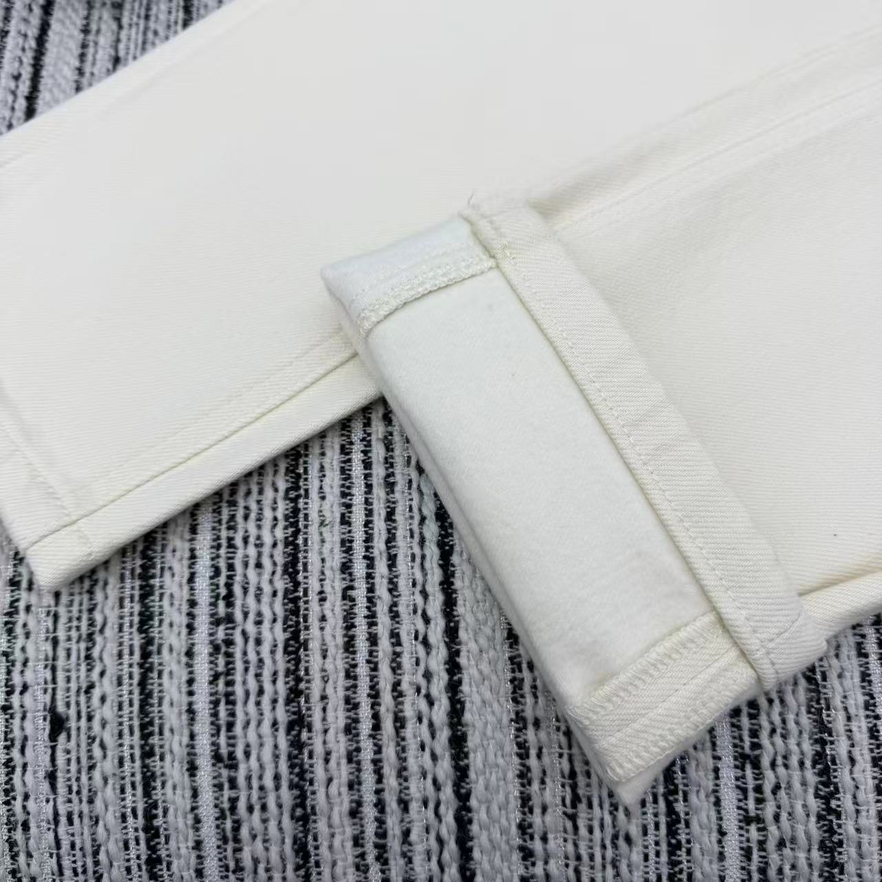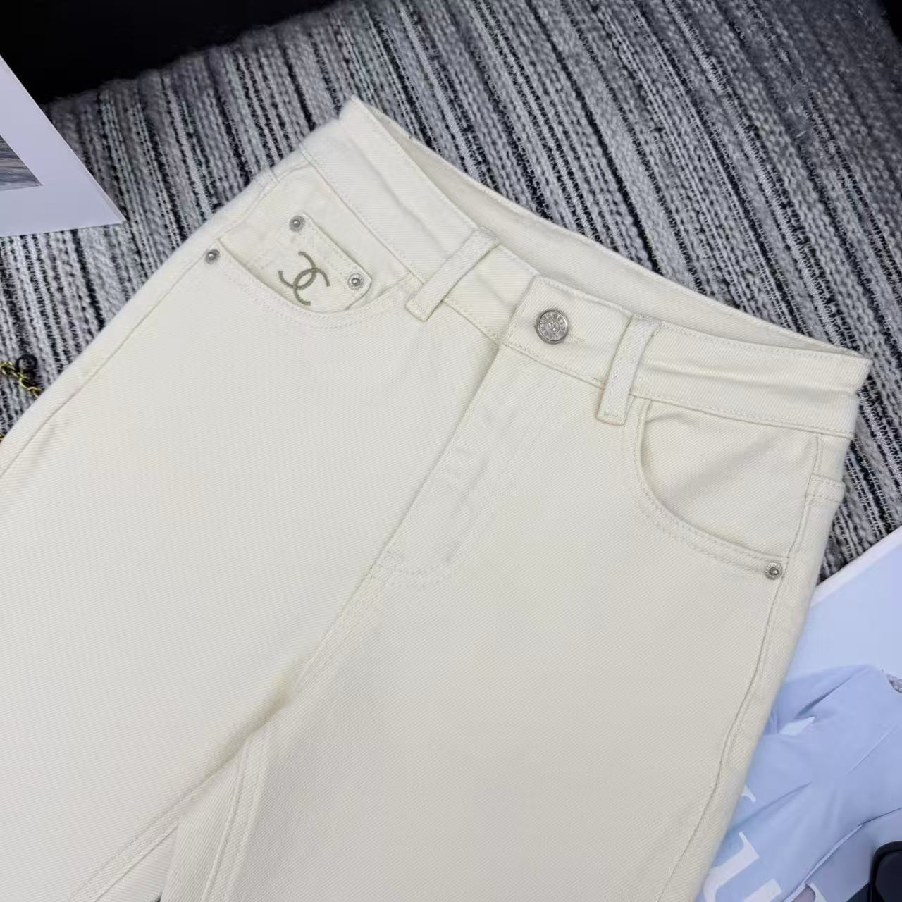 Details: Highly recommended early autumn and winter series, new skinny denim pants, fleece-lined and warm, embroidered double C logo, two colors.
