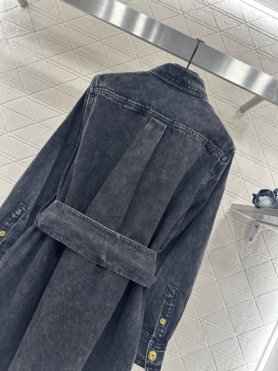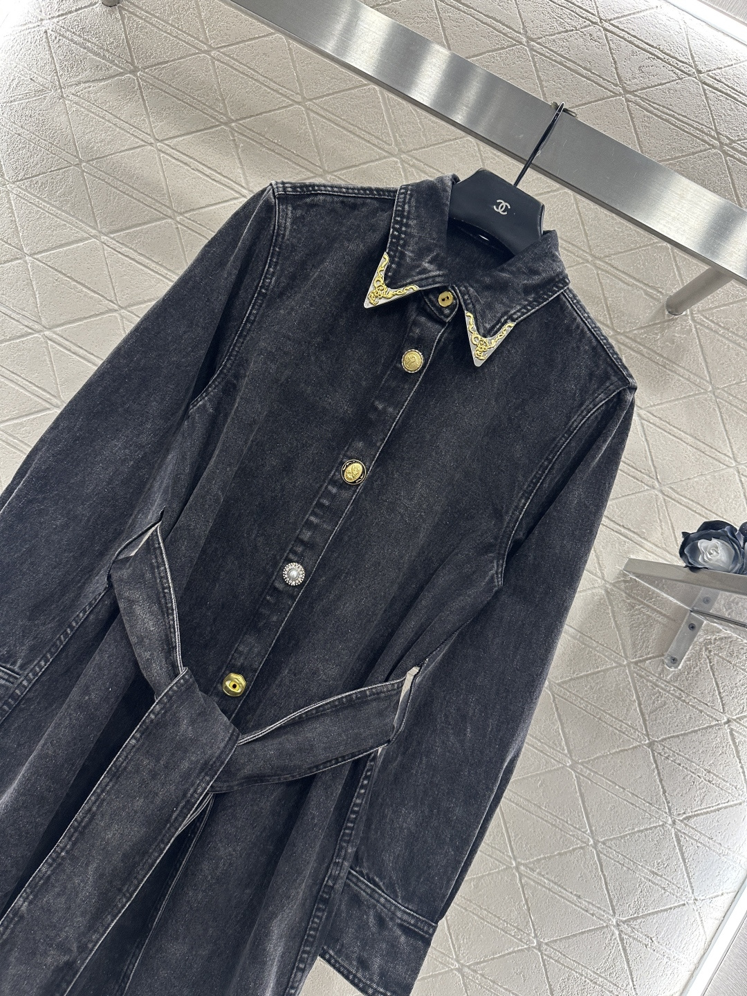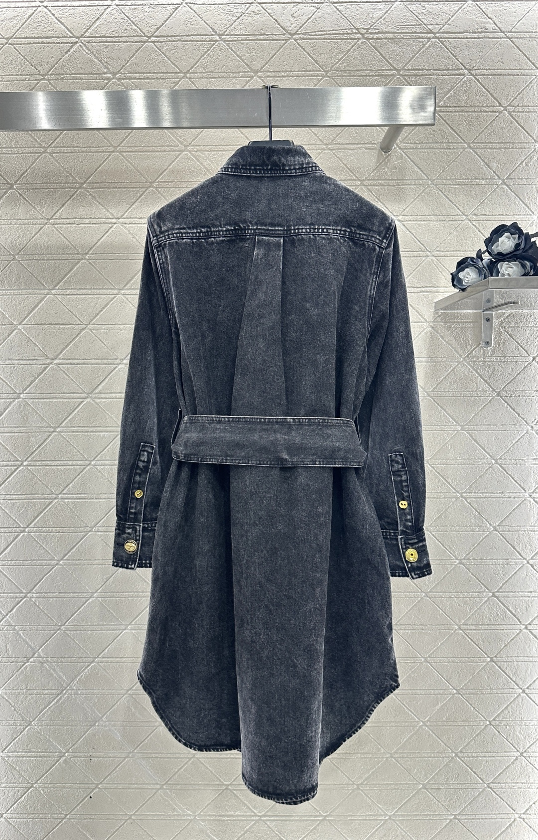 Details: Denim Shirt Dress with Belt, Fashionable, High-end Customization