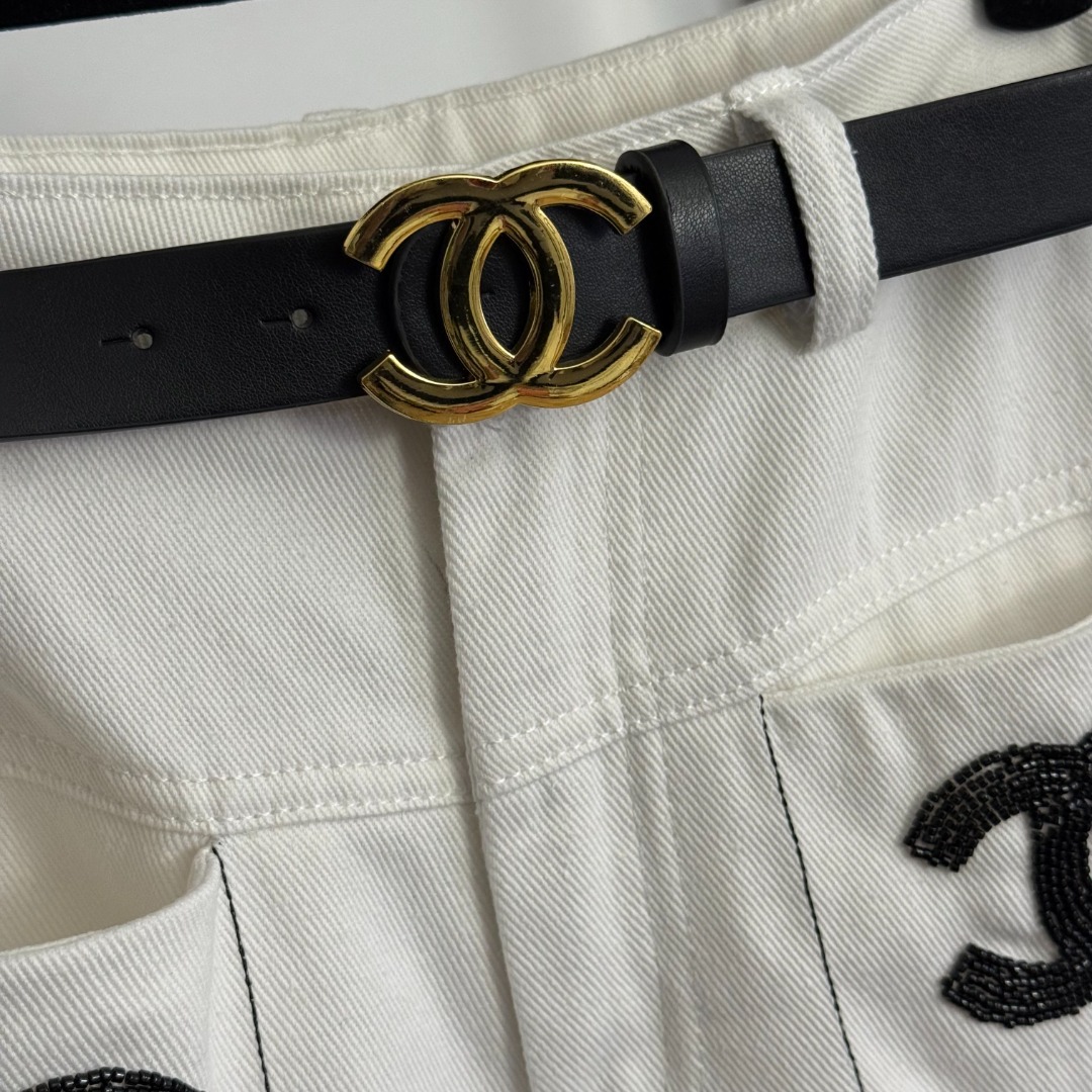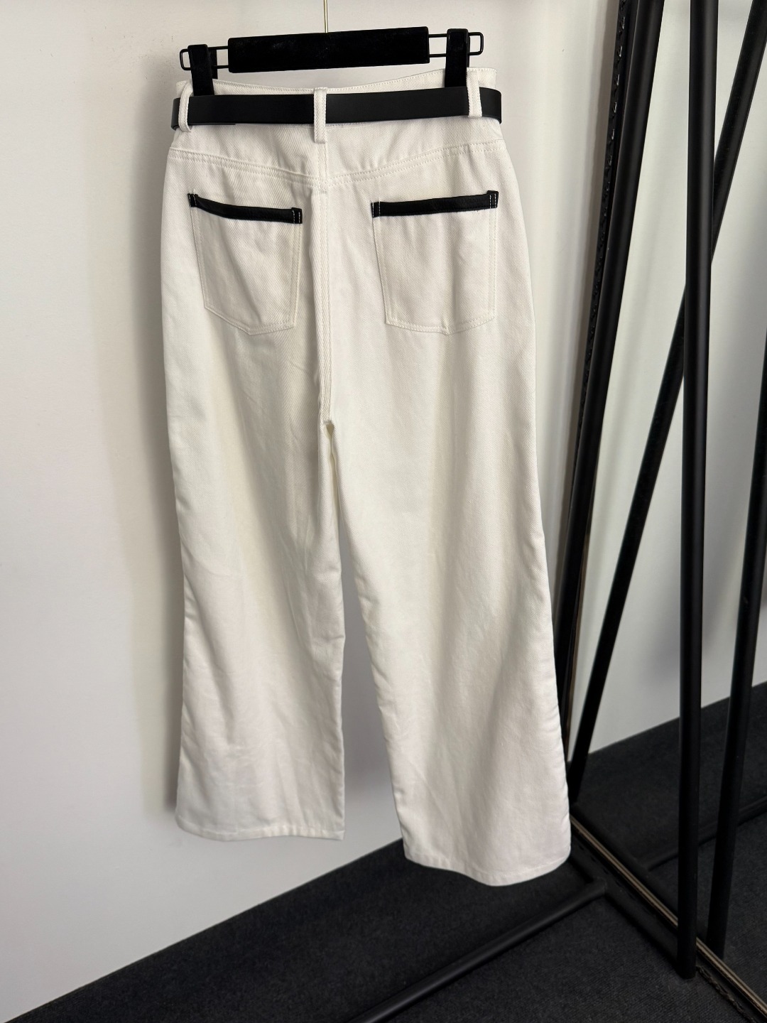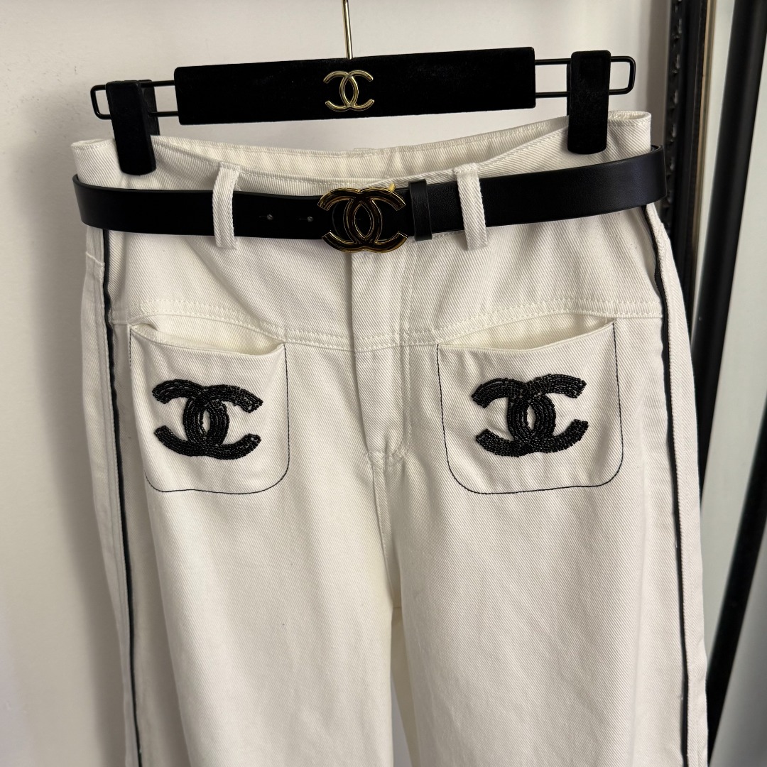 Details: New high-waisted white denim pants with studs and double pockets, available in S and M sizes. High-end customization with fine workmanship