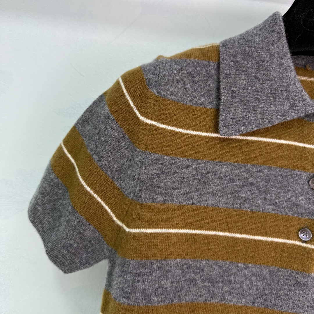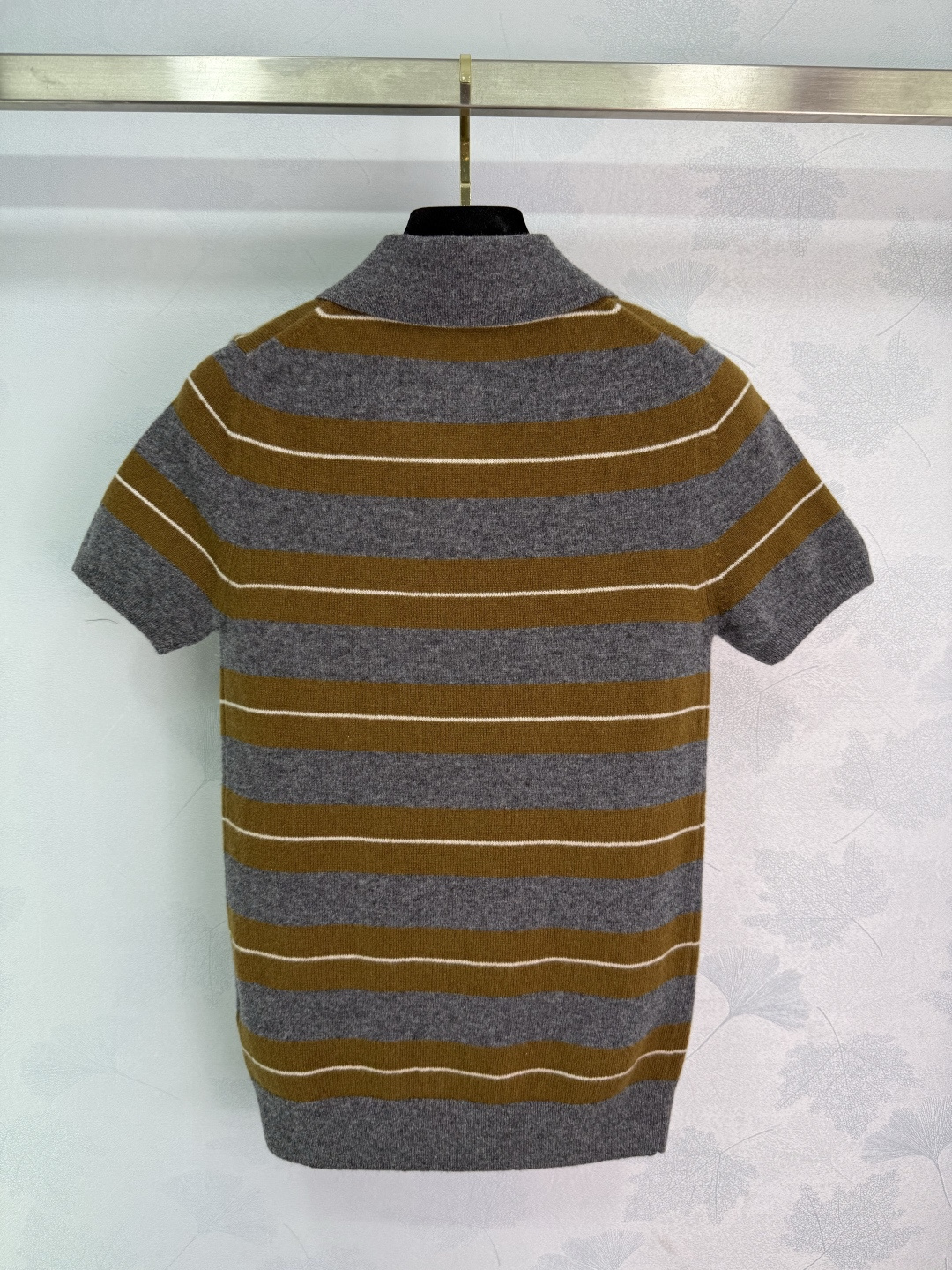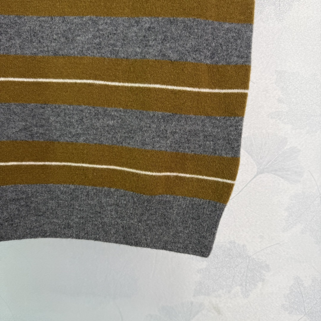Details: Striped knit polo shirt in classic colors, small logo embroidery, imported cashmere, soft and comfortable, slim fit, half-placket button design, suitable for work.