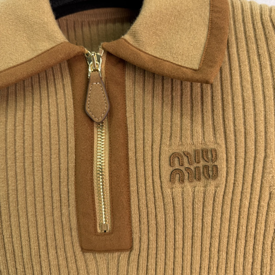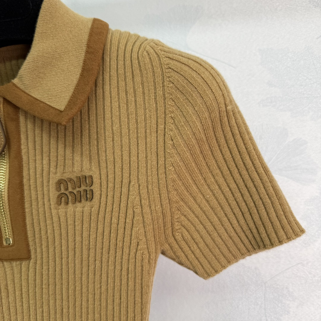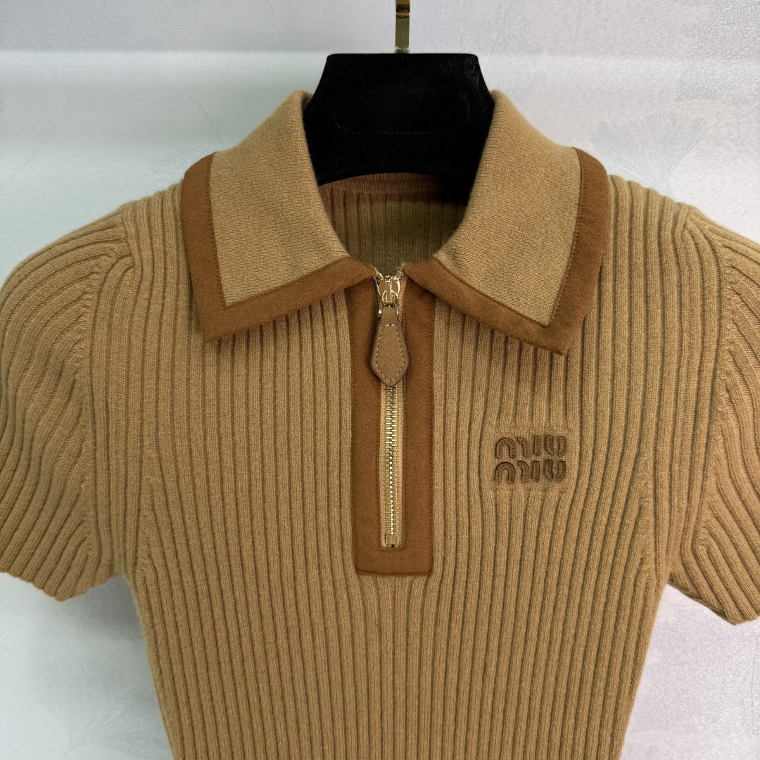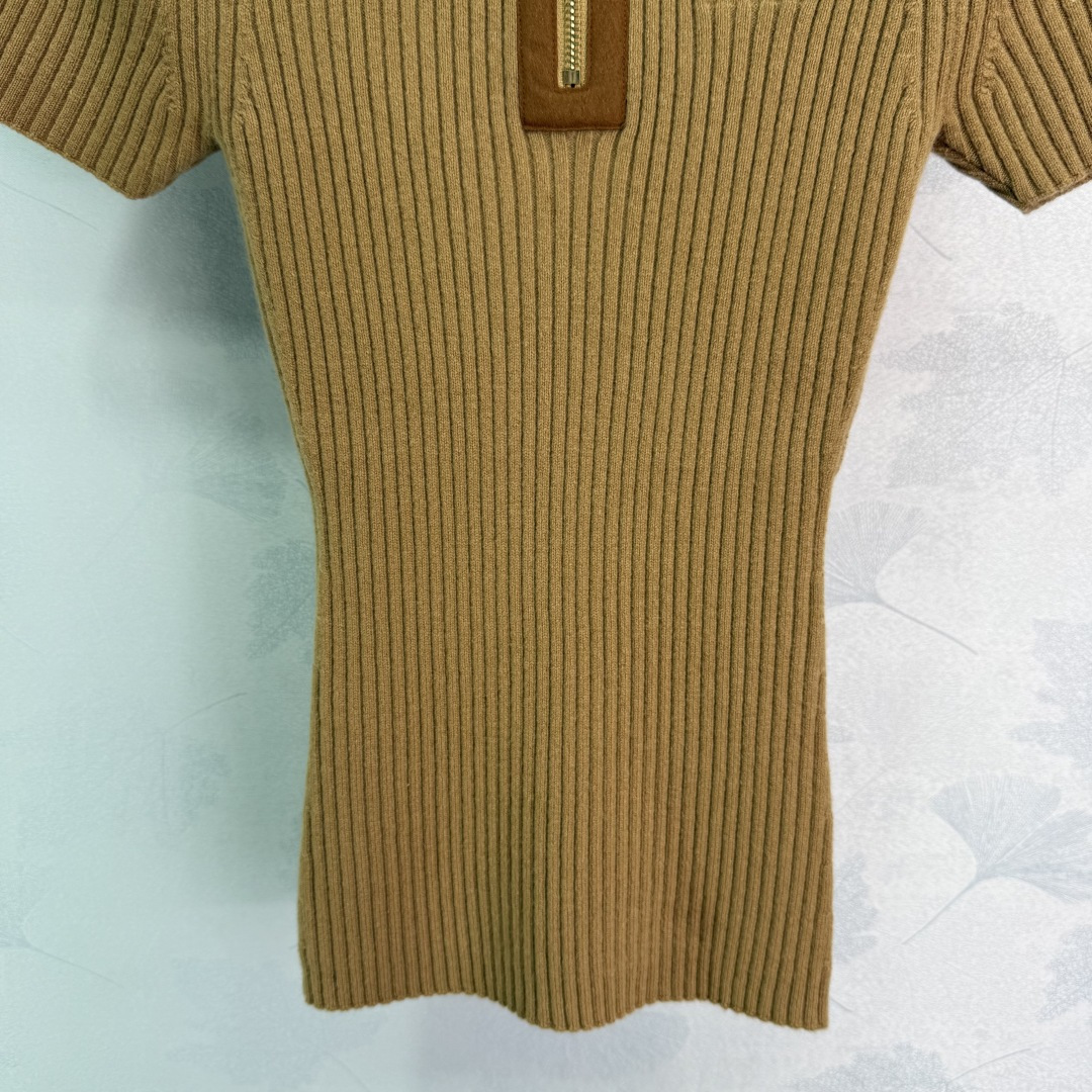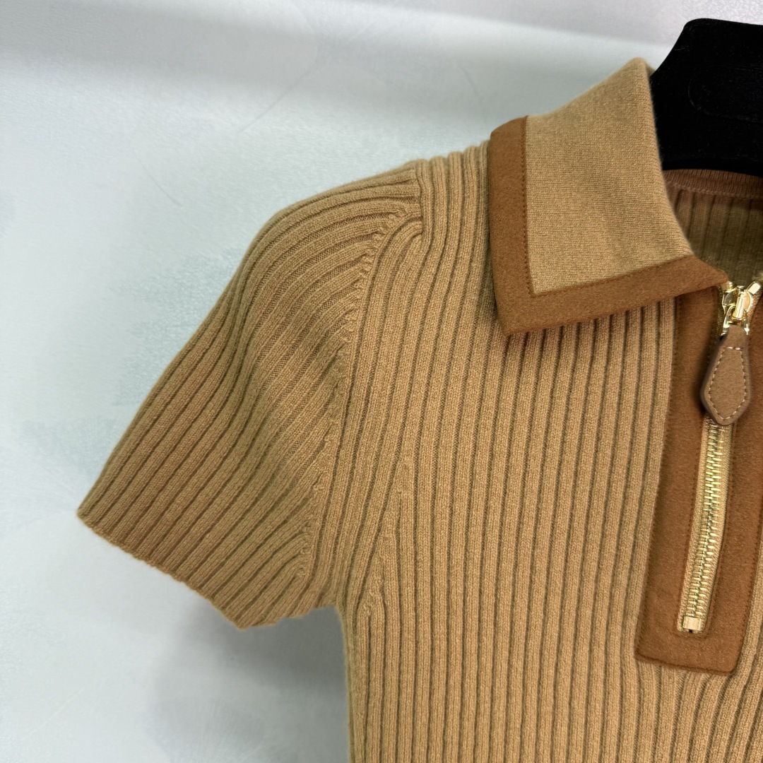 Details: Early Autumn suede patchwork collar knit short sleeve with zipper collar, slim fit, stylish and unique.