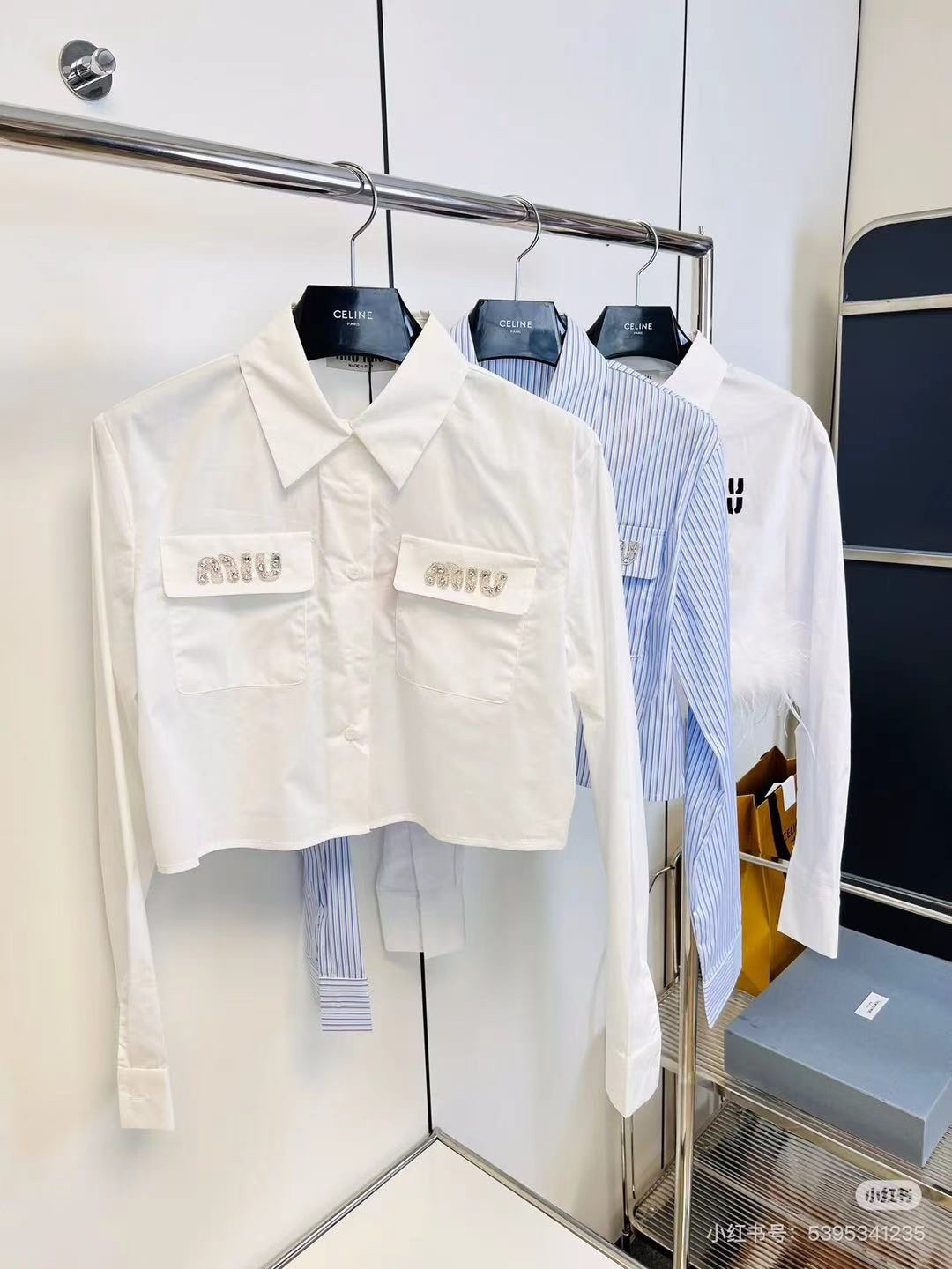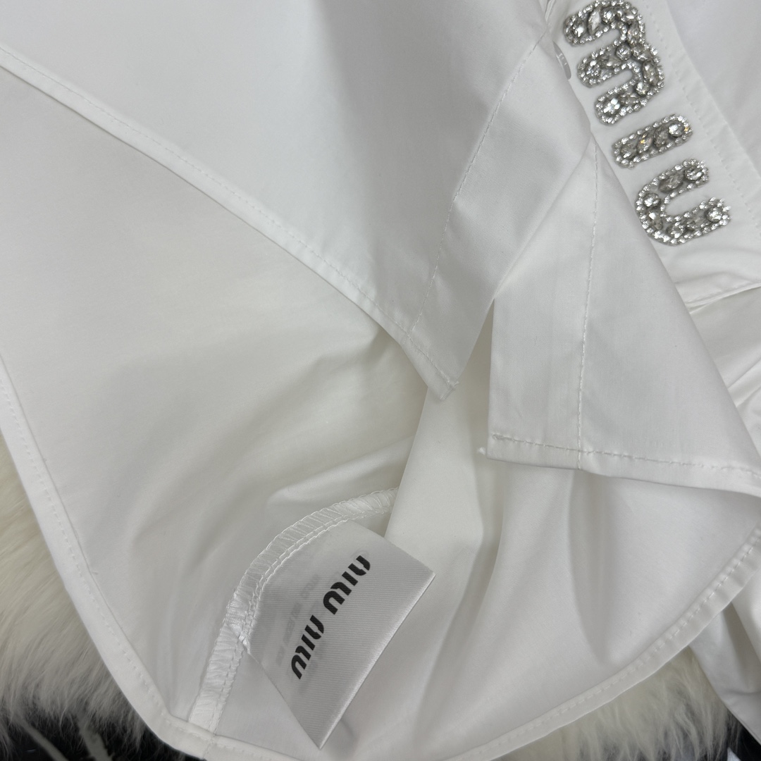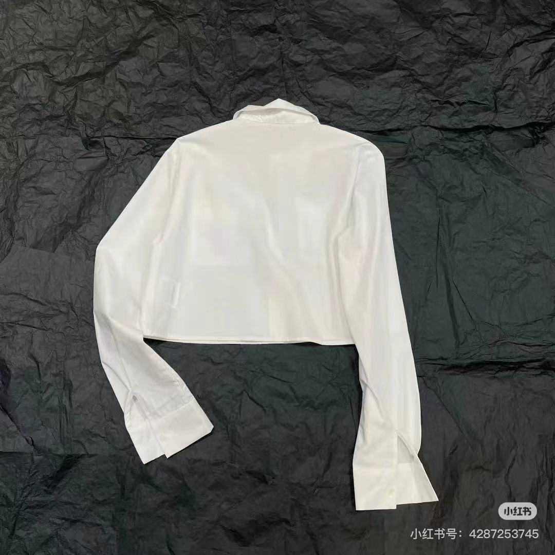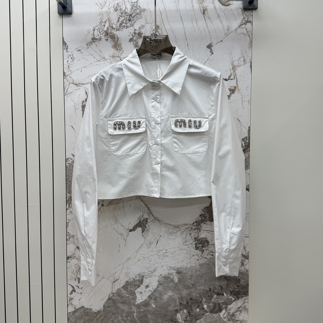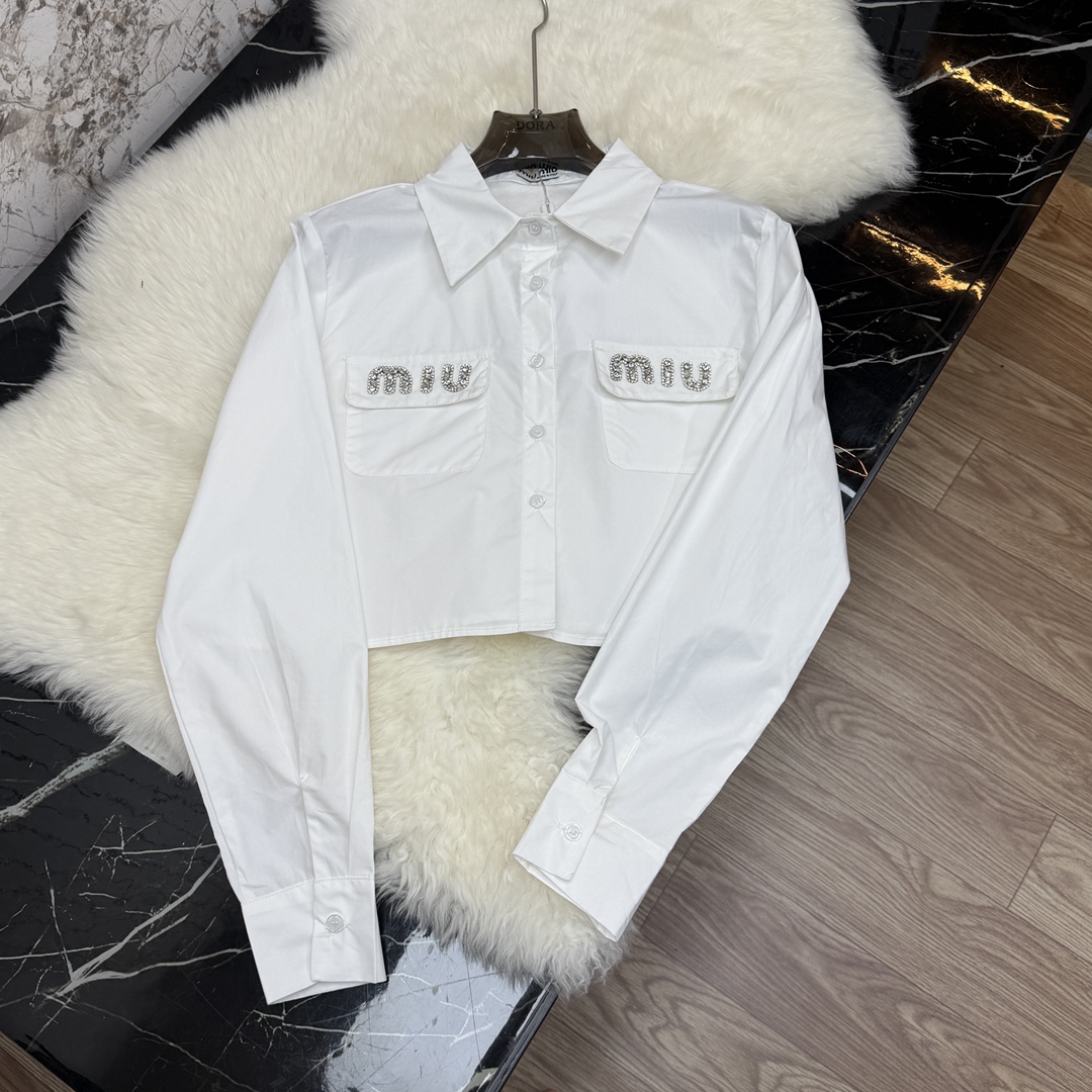 Details: Autumn and winter long - sleeved short shirt with rhinestone - inlaid pockets, sweet and elegant, available in white and black, S & L sizes. High - end customization, fine workmanship