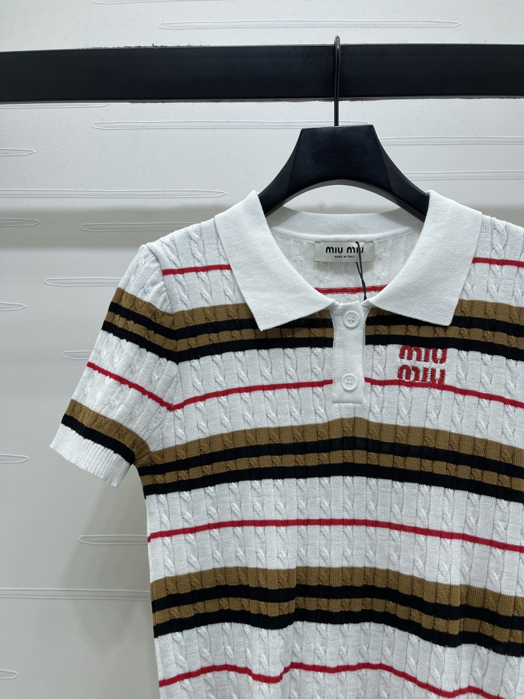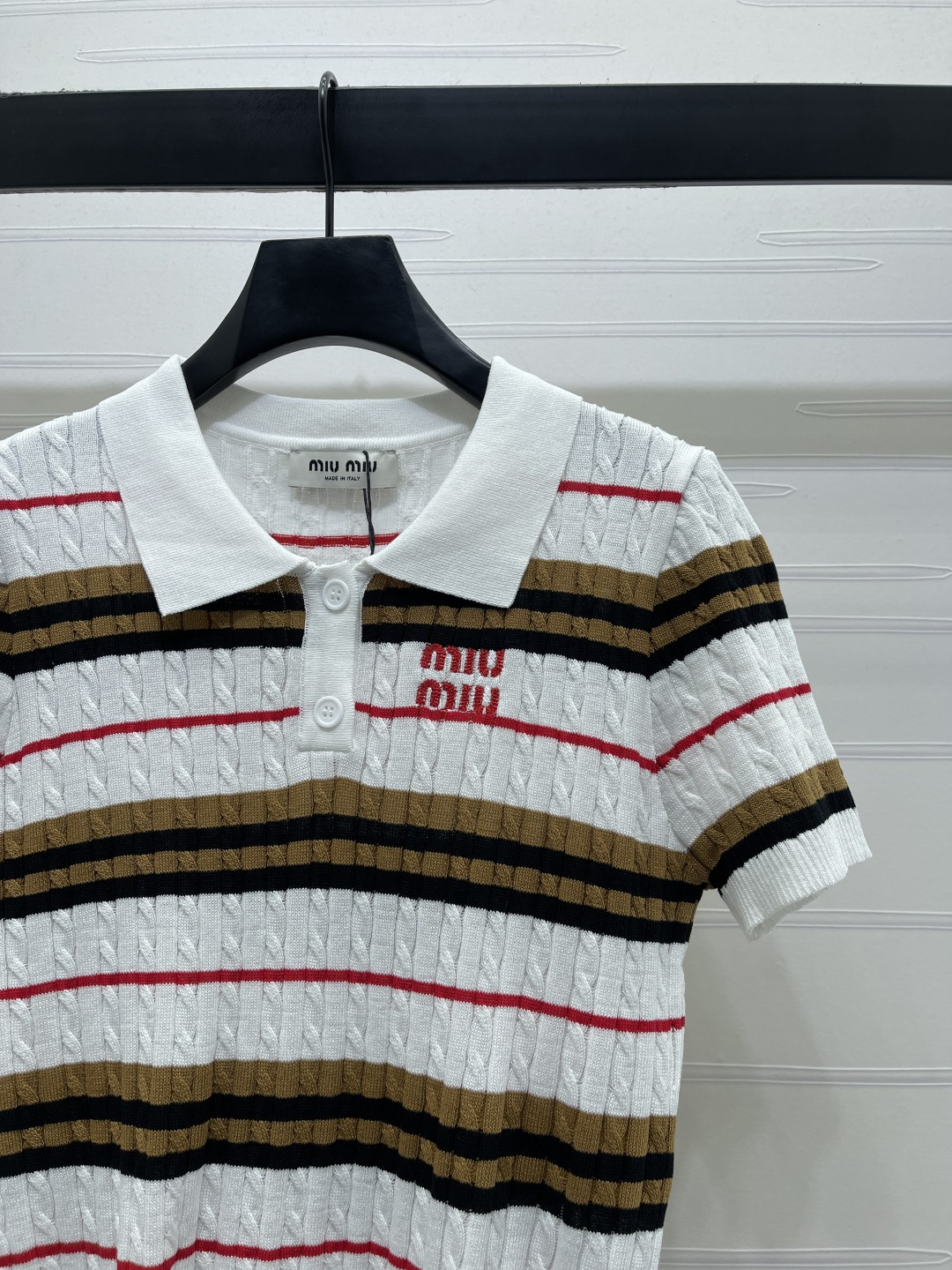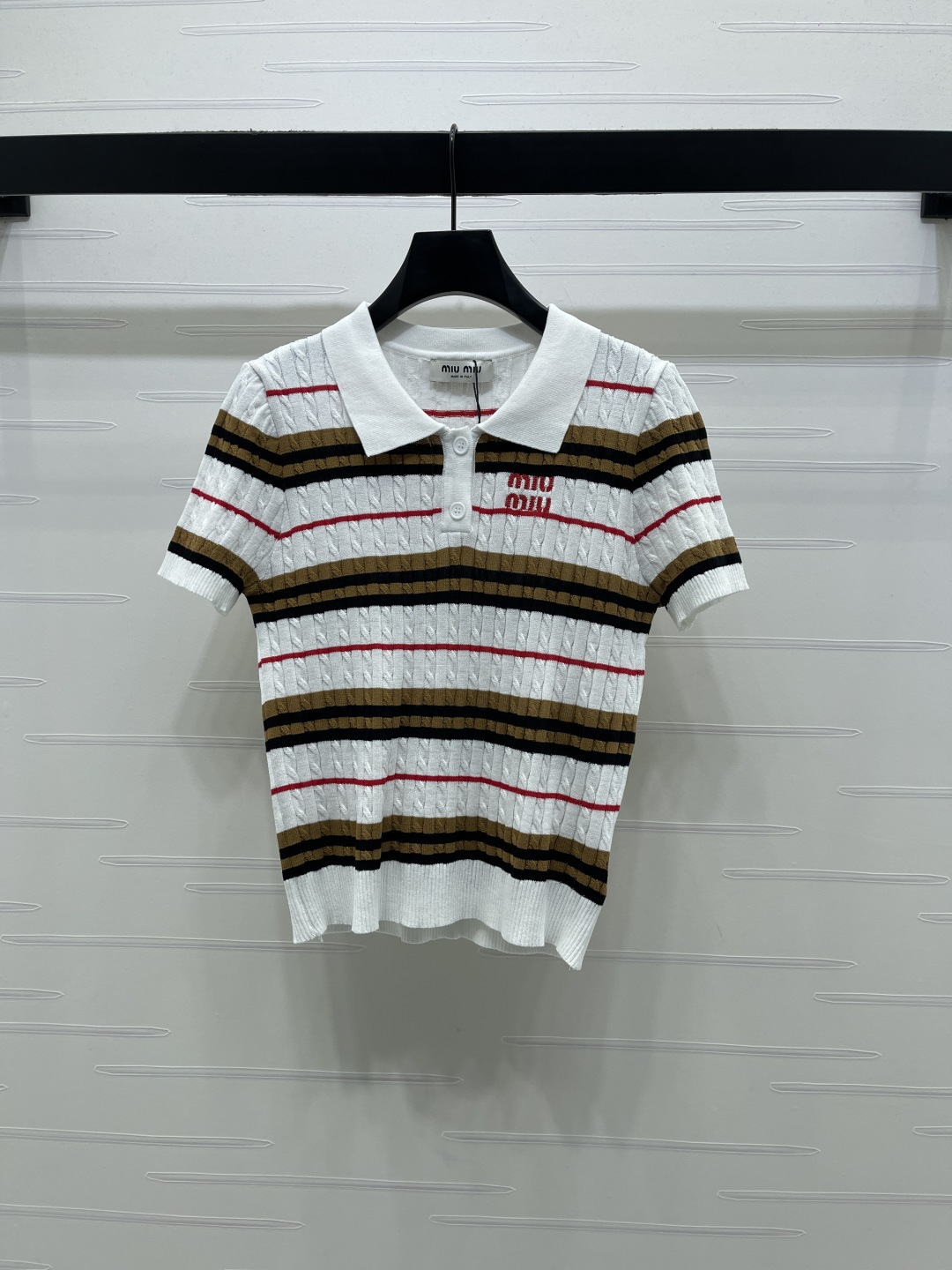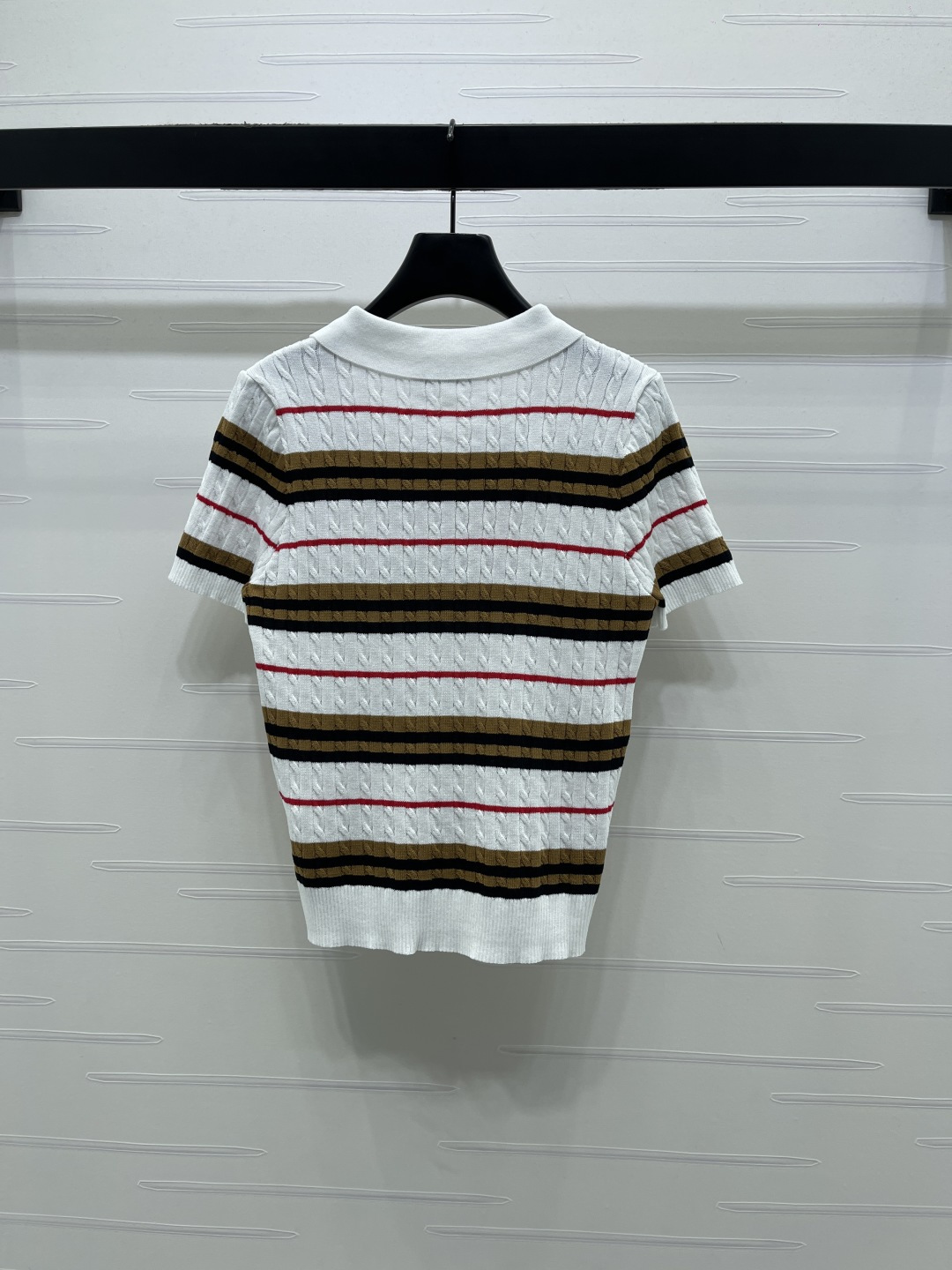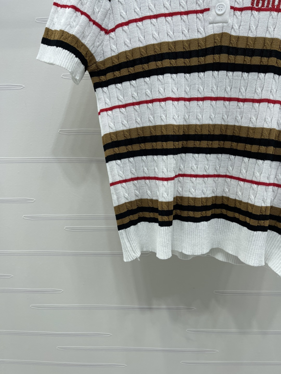 Details: Early Spring Premium Knit Short-Sleeve with Twisted Stripes and Contrasting Colors, Exquisite Embroidery, Soft and Comfortable, Slim Fit, Versatile Styling.