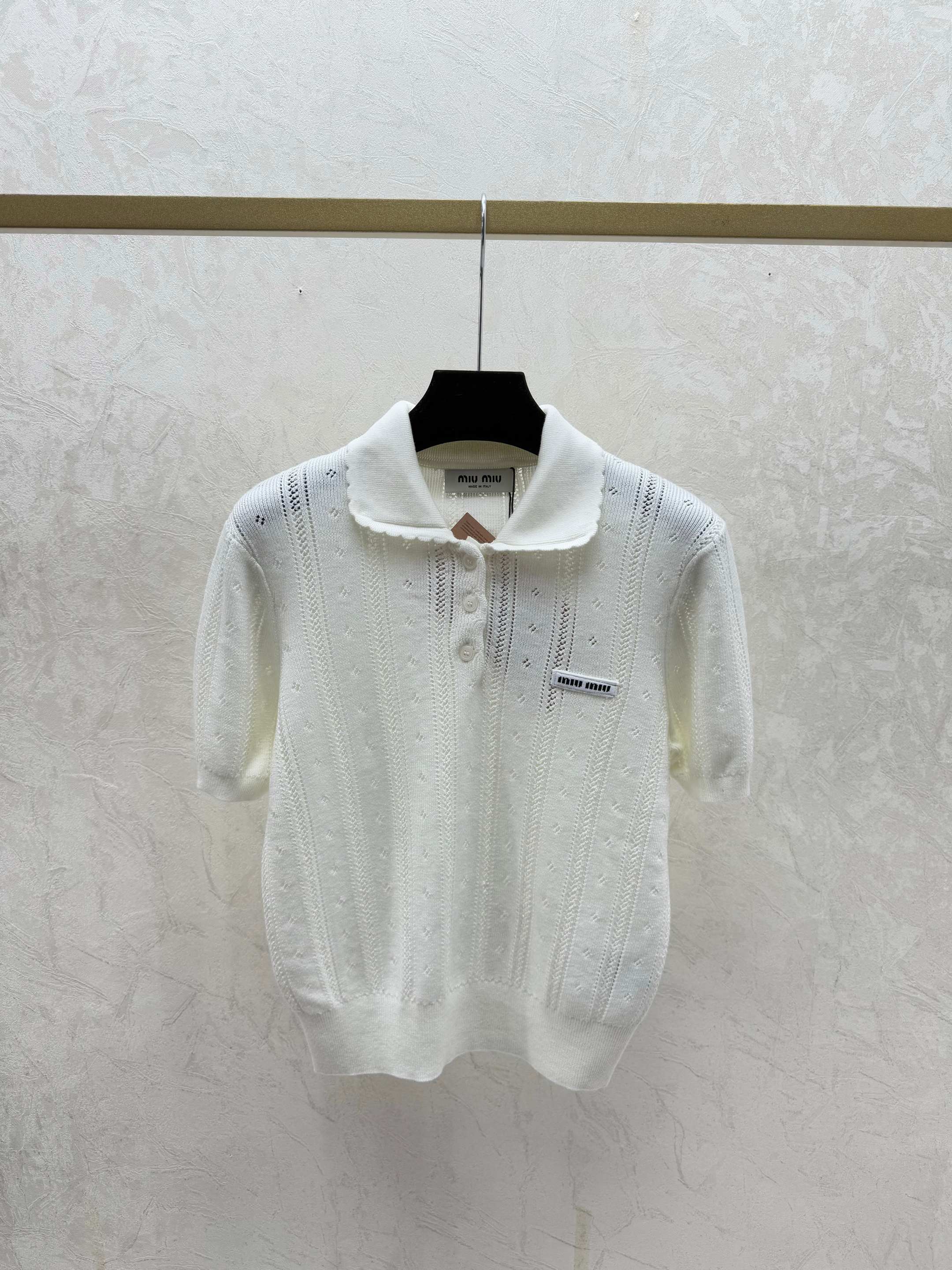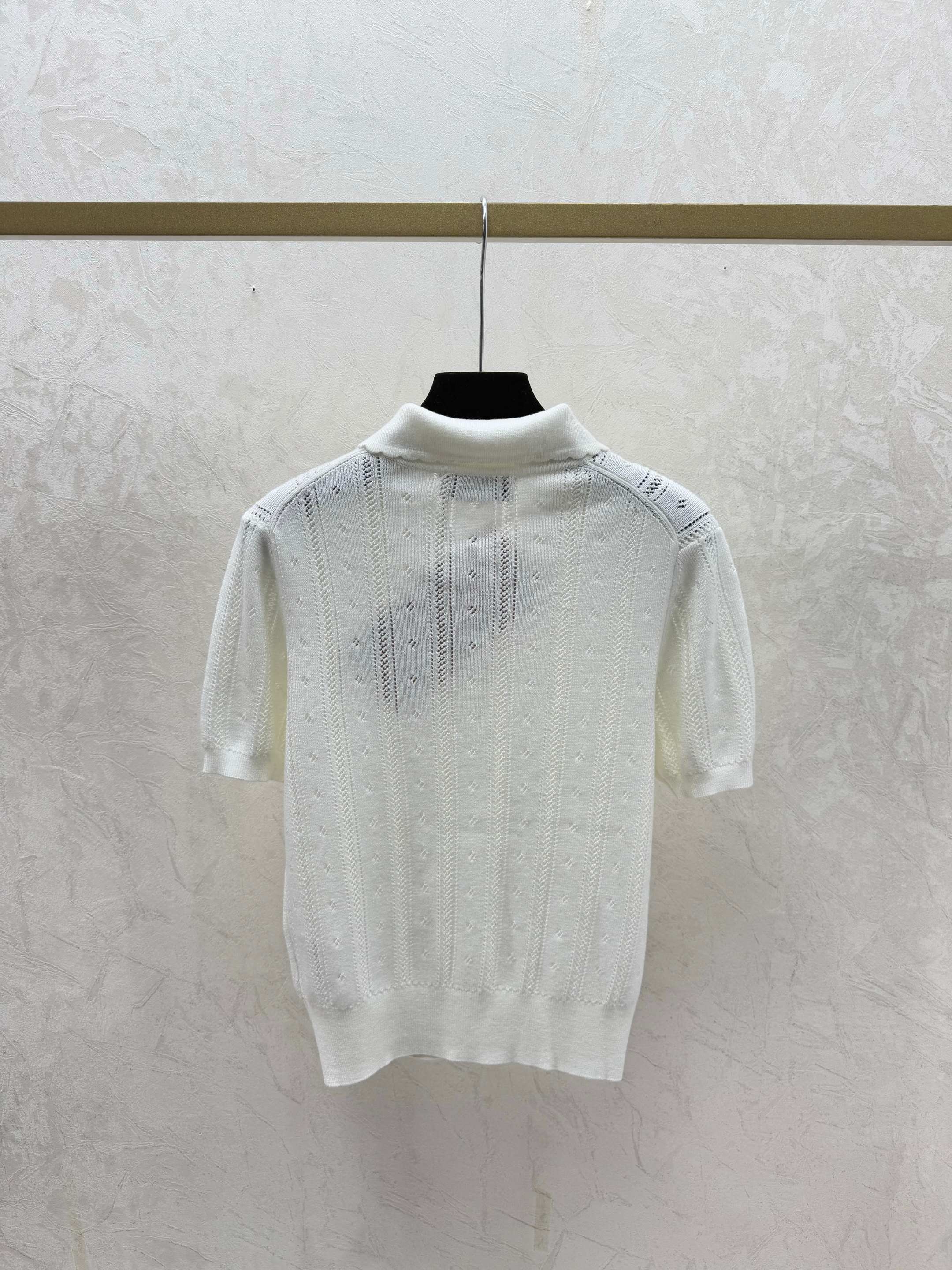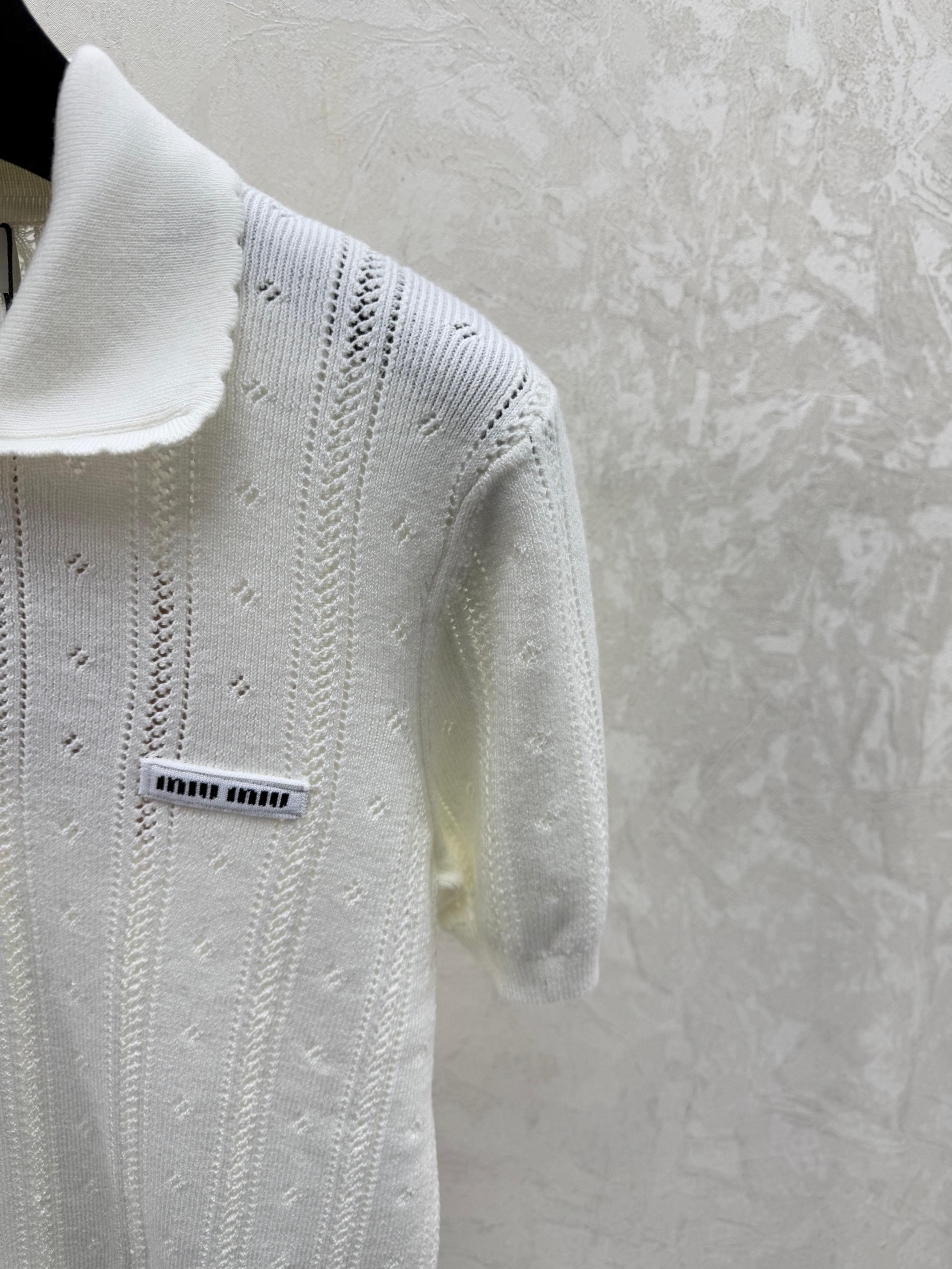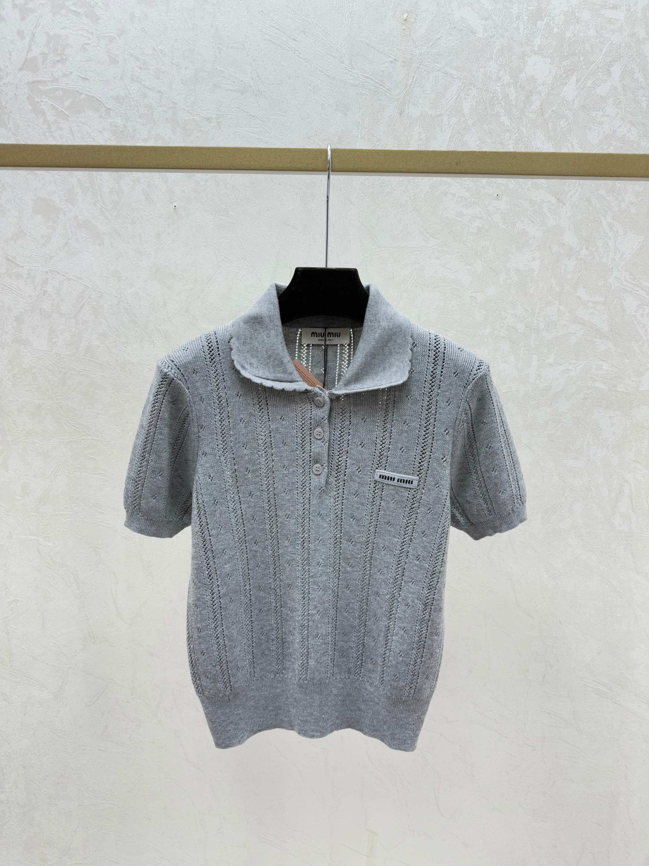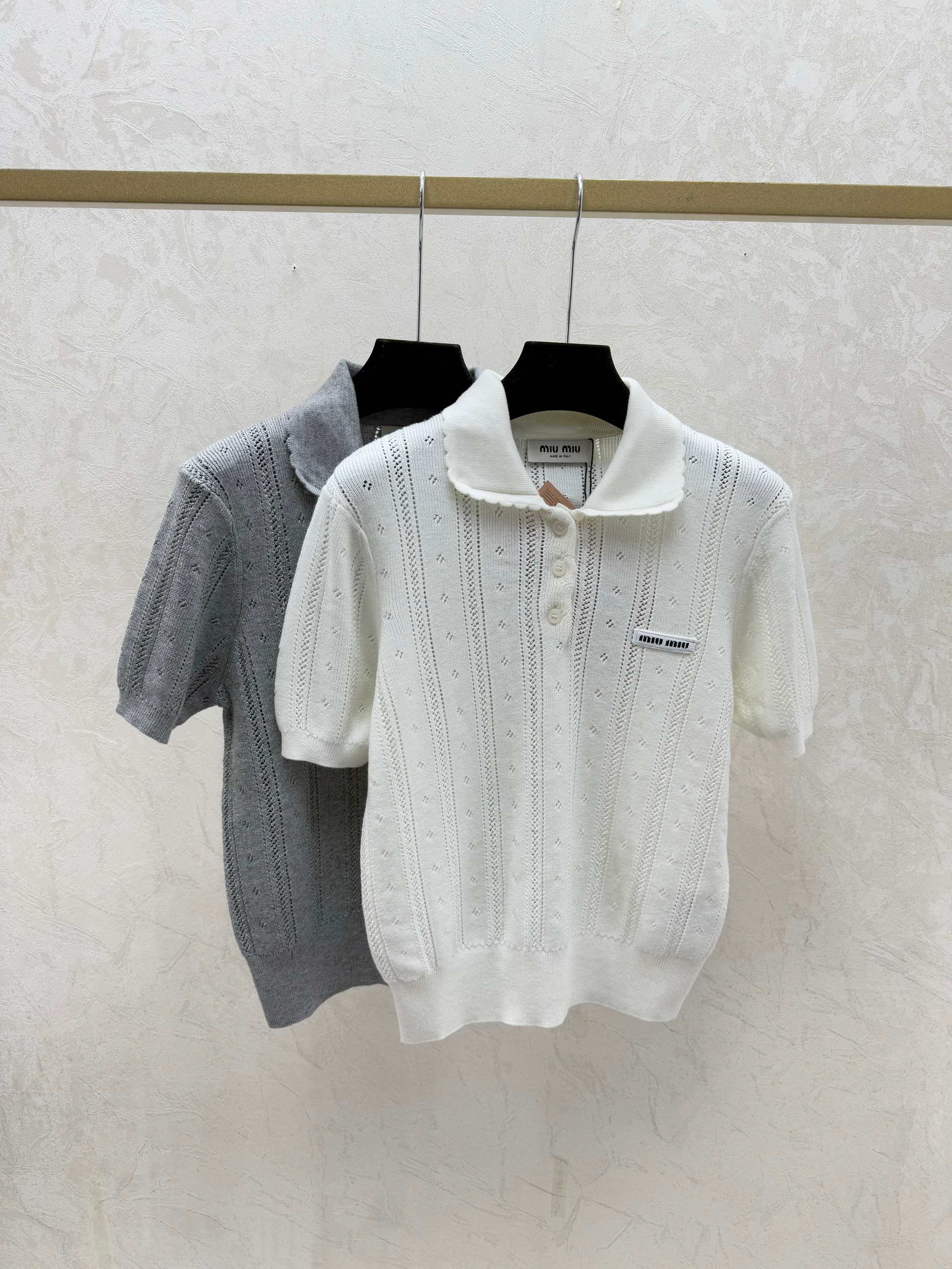 Details: Early spring new: Solid color, notched collar, knitted short-sleeve shirt in white and gray, sizes 36-40.