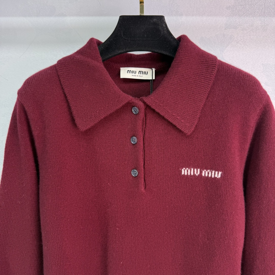Details: Autumn-winter knit long-sleeve polo shirt, letter logo buttons, simple and elegant, with fine embroidery.