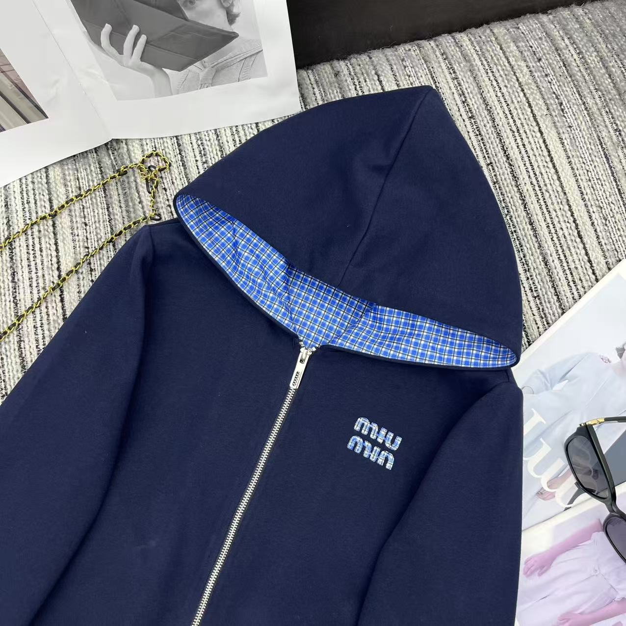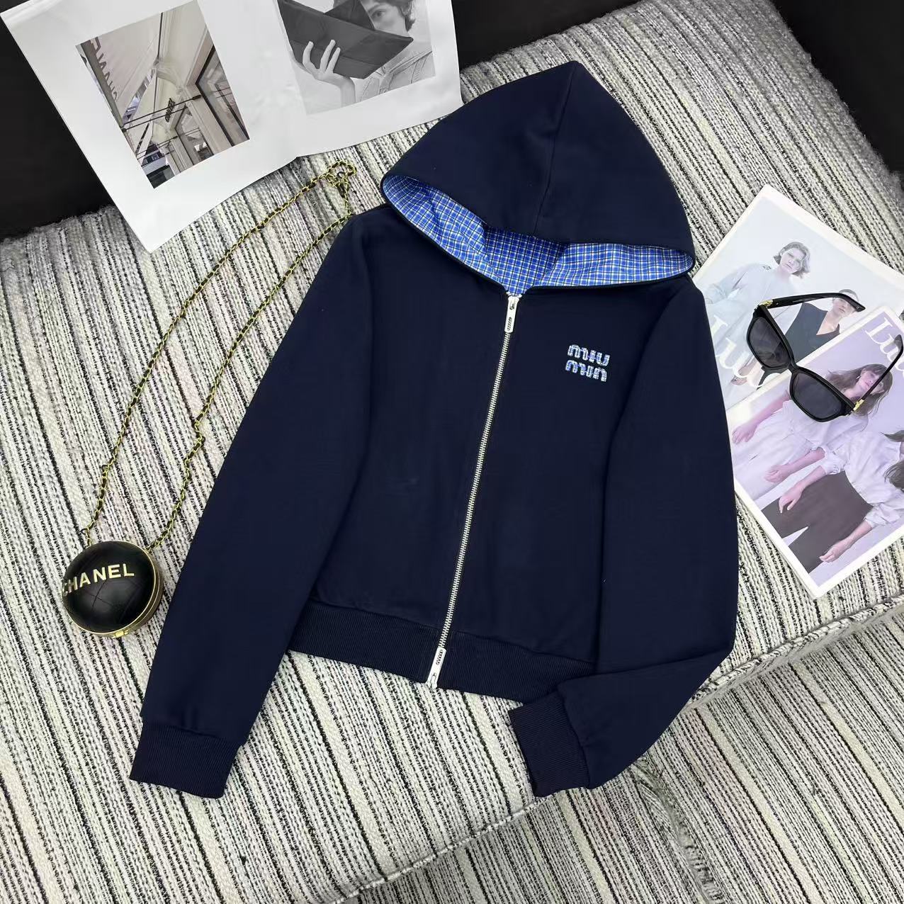 Details: Highly recommended Early Fall 25 Hooded casual jacket and elastic-waist straight-leg pants set with grid letter patches, two colors, SML.
