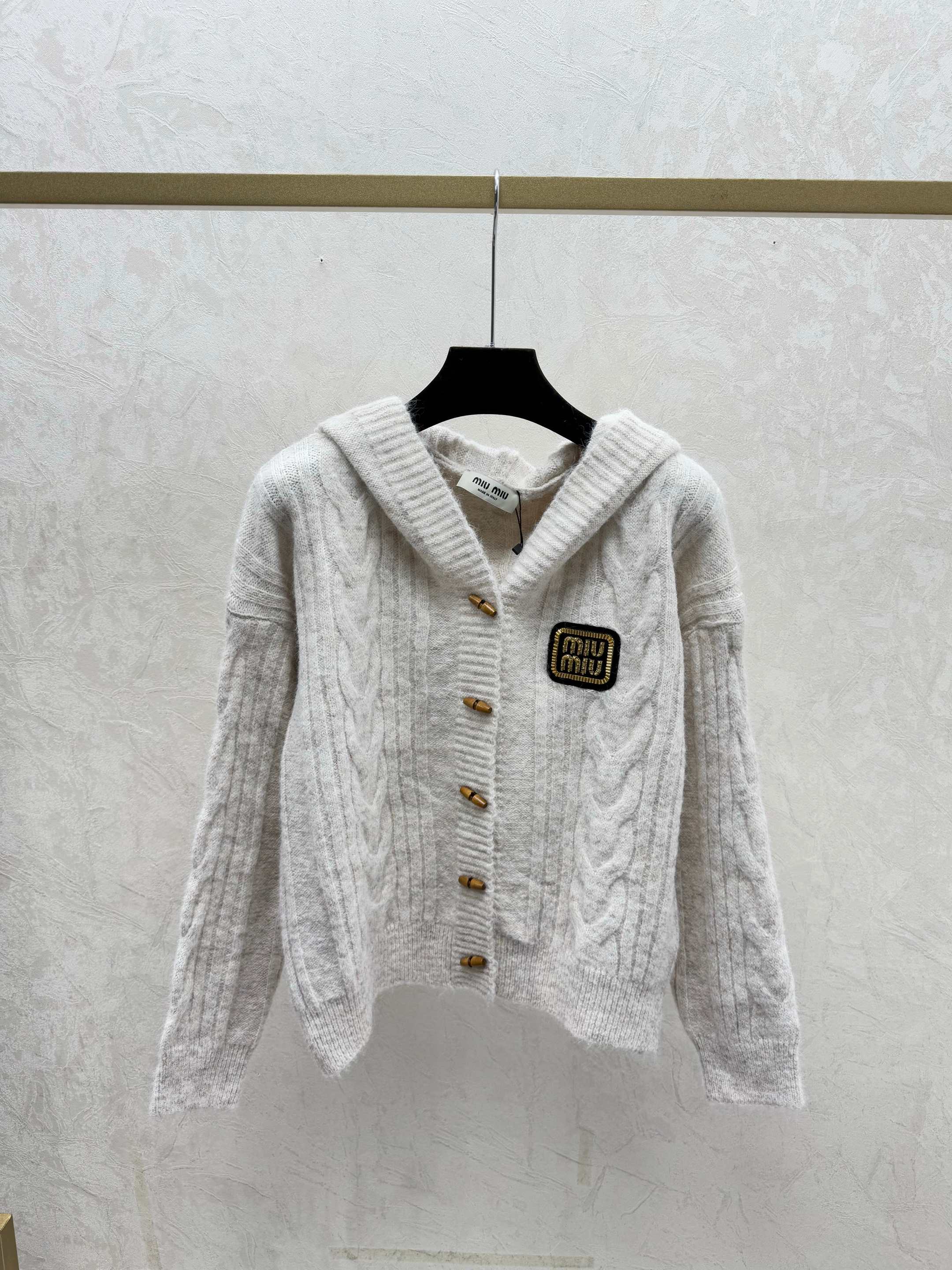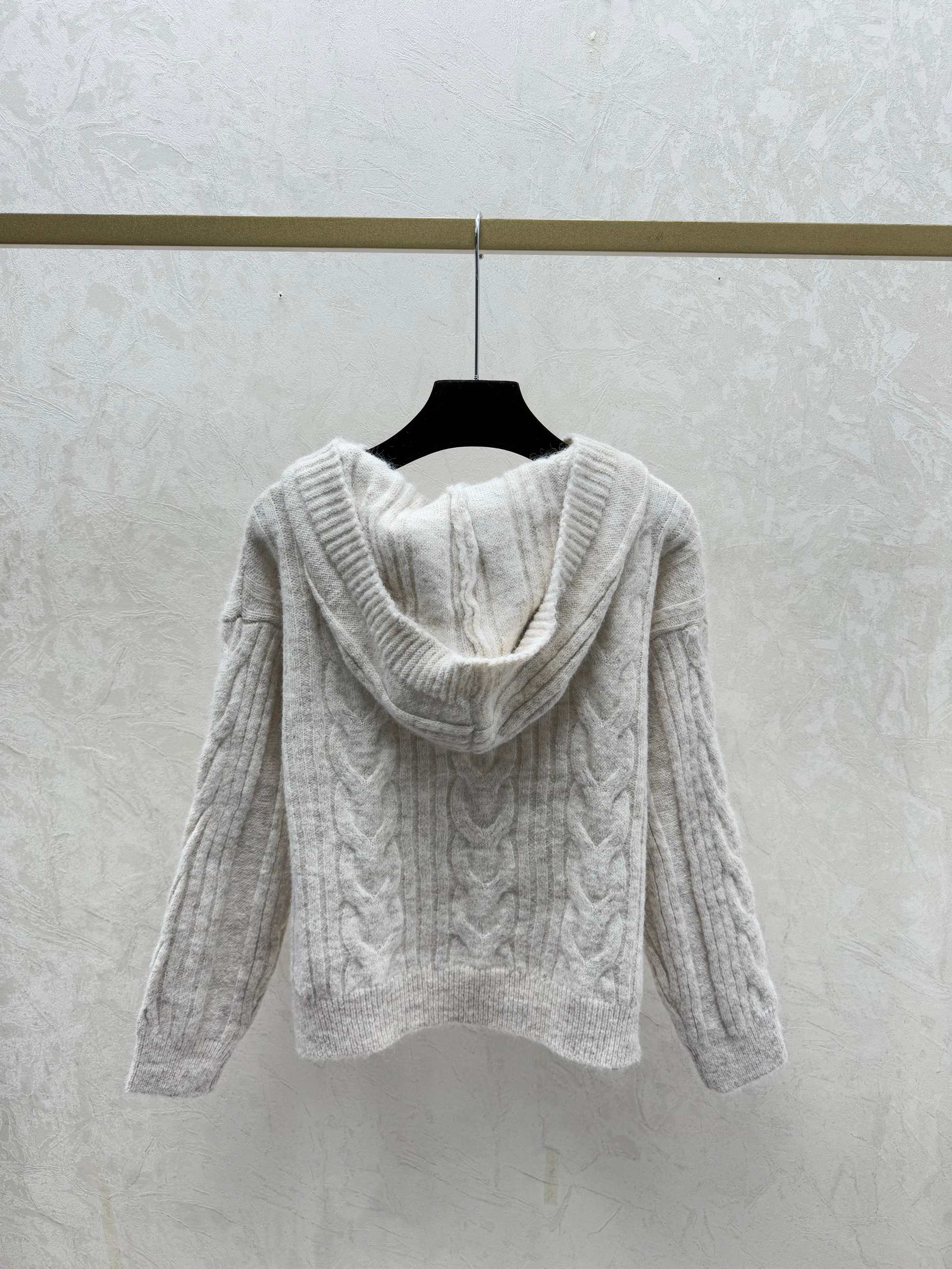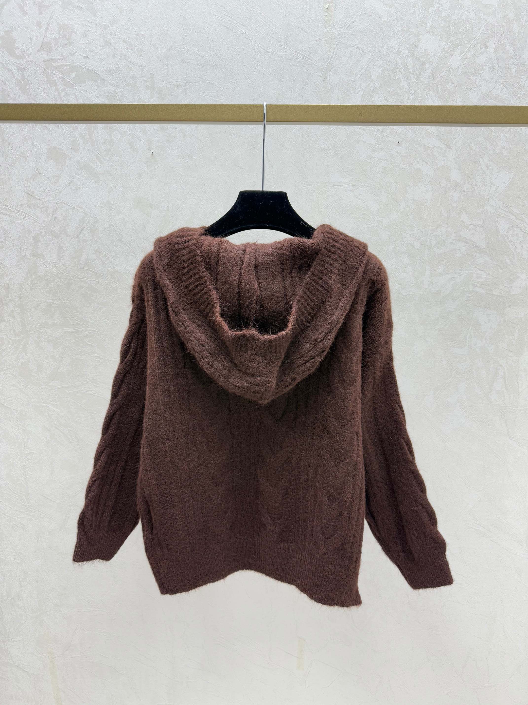 Details: Early autumn solid - color knitted long - sleeve cardigan with hood, in white and coffee, sizes 36 - 40. High - end customization, fine workmanship