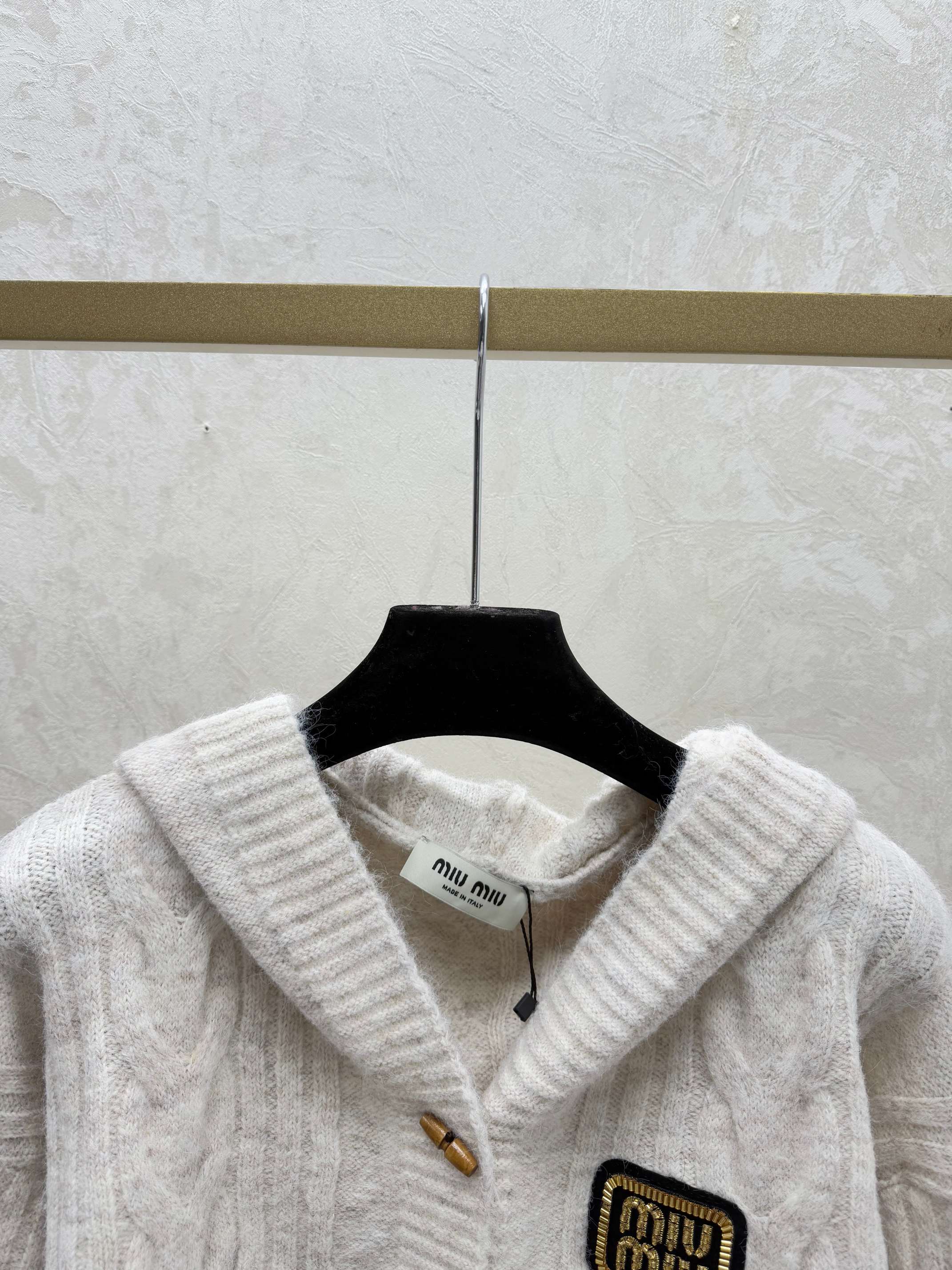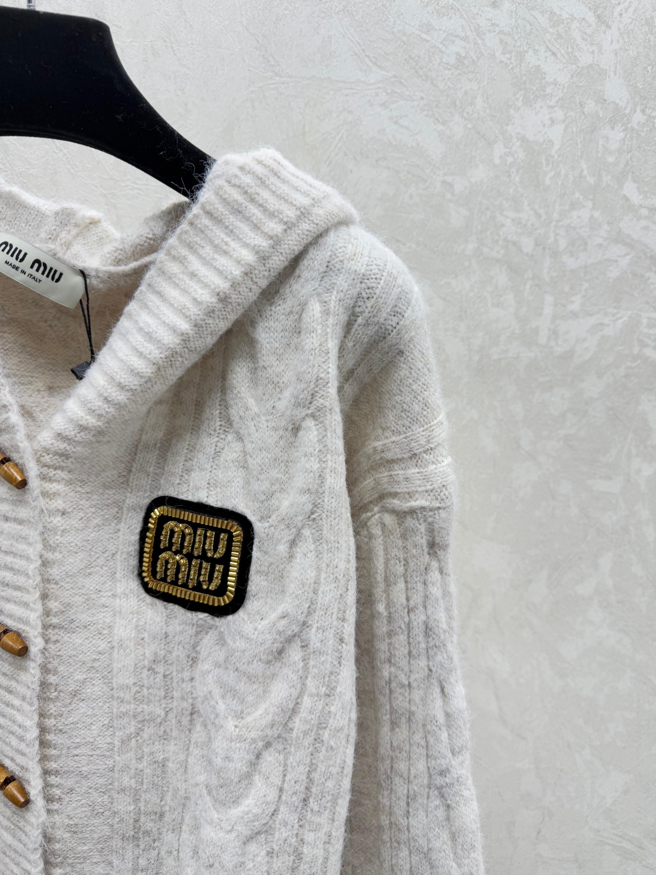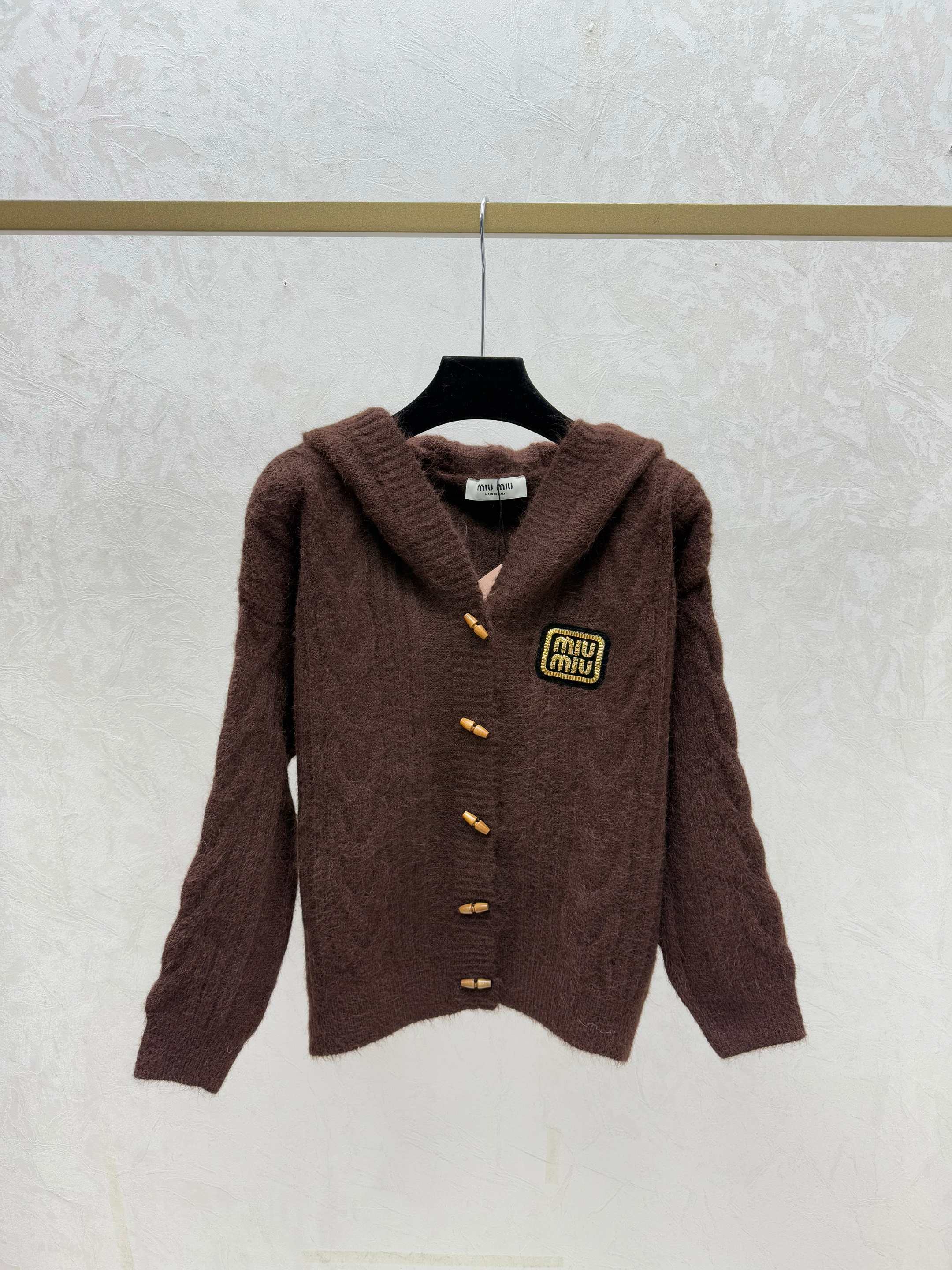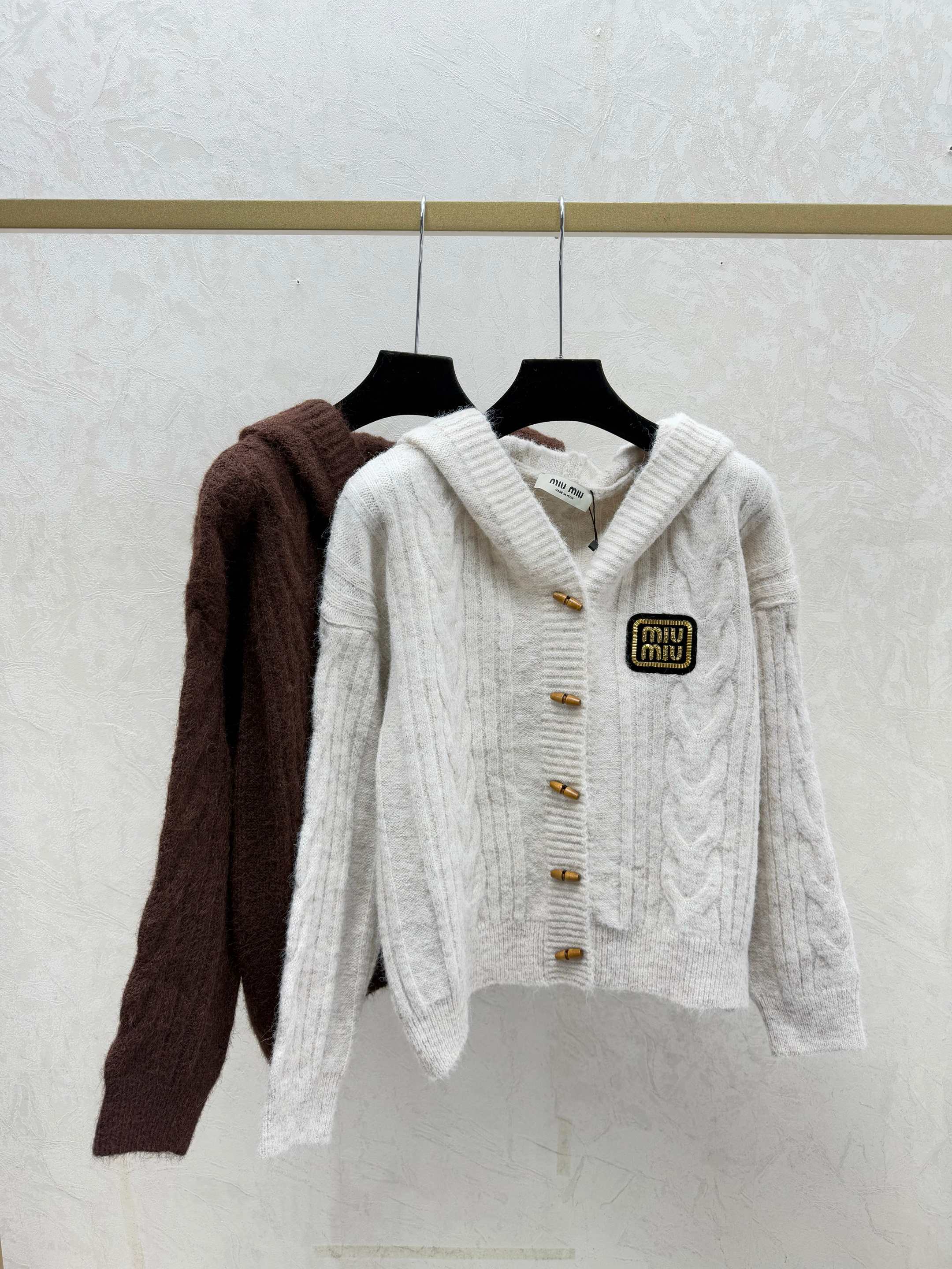 Details: Early autumn solid - color knitted long - sleeve cardigan with hood, in white and coffee, sizes 36 - 40. High - end customization, fine workmanship