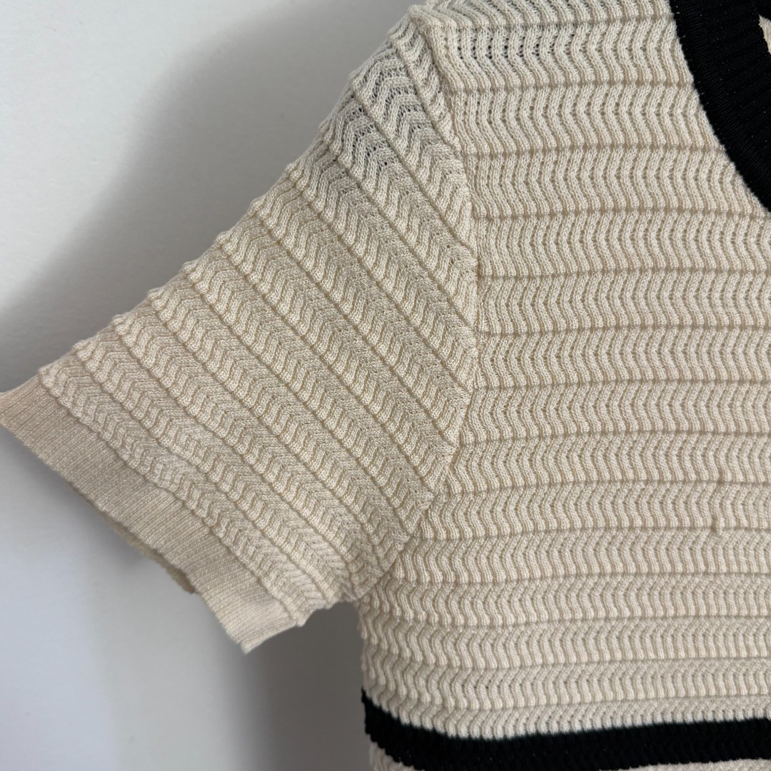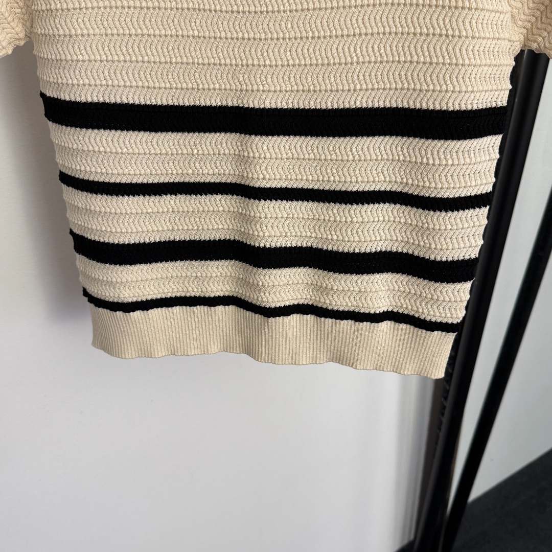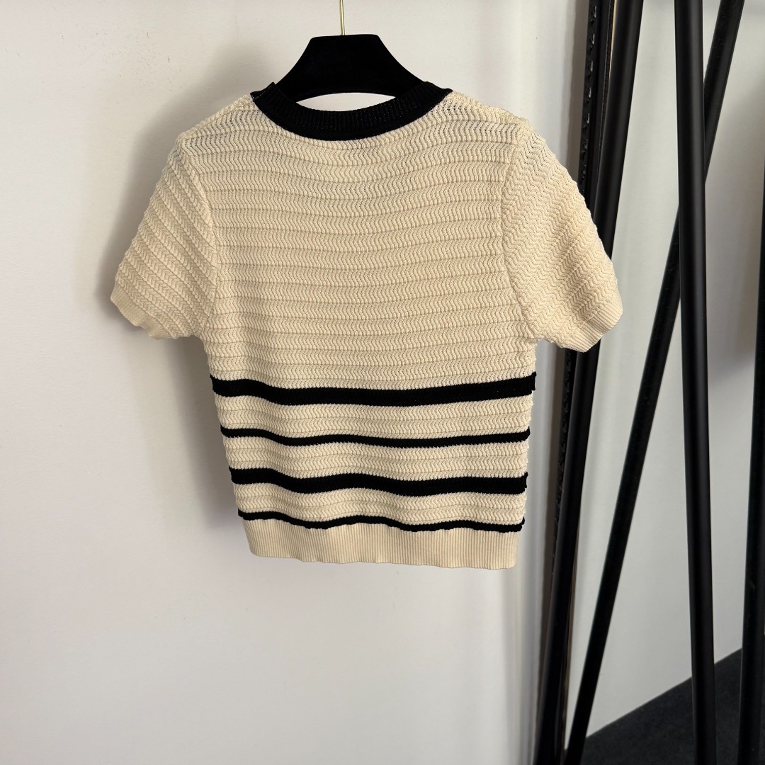 Details: New Apricot Logo-embroidered Striped Short-sleeved Knit Top. High-end Custom, Fine Craftsmanship