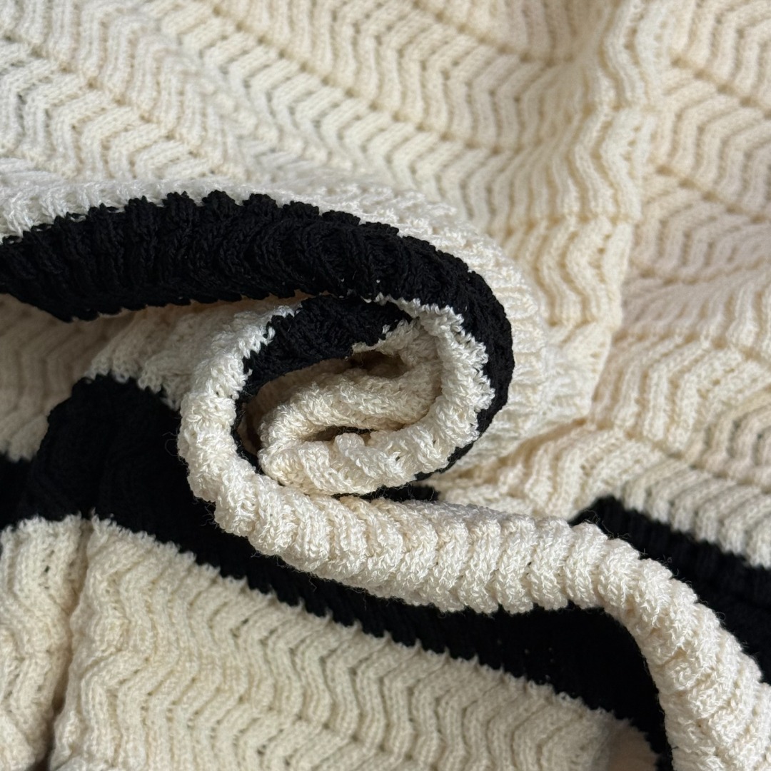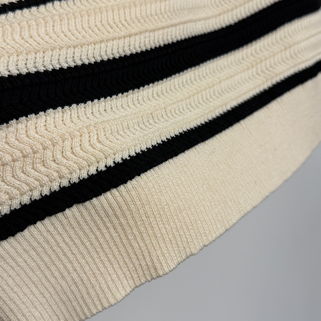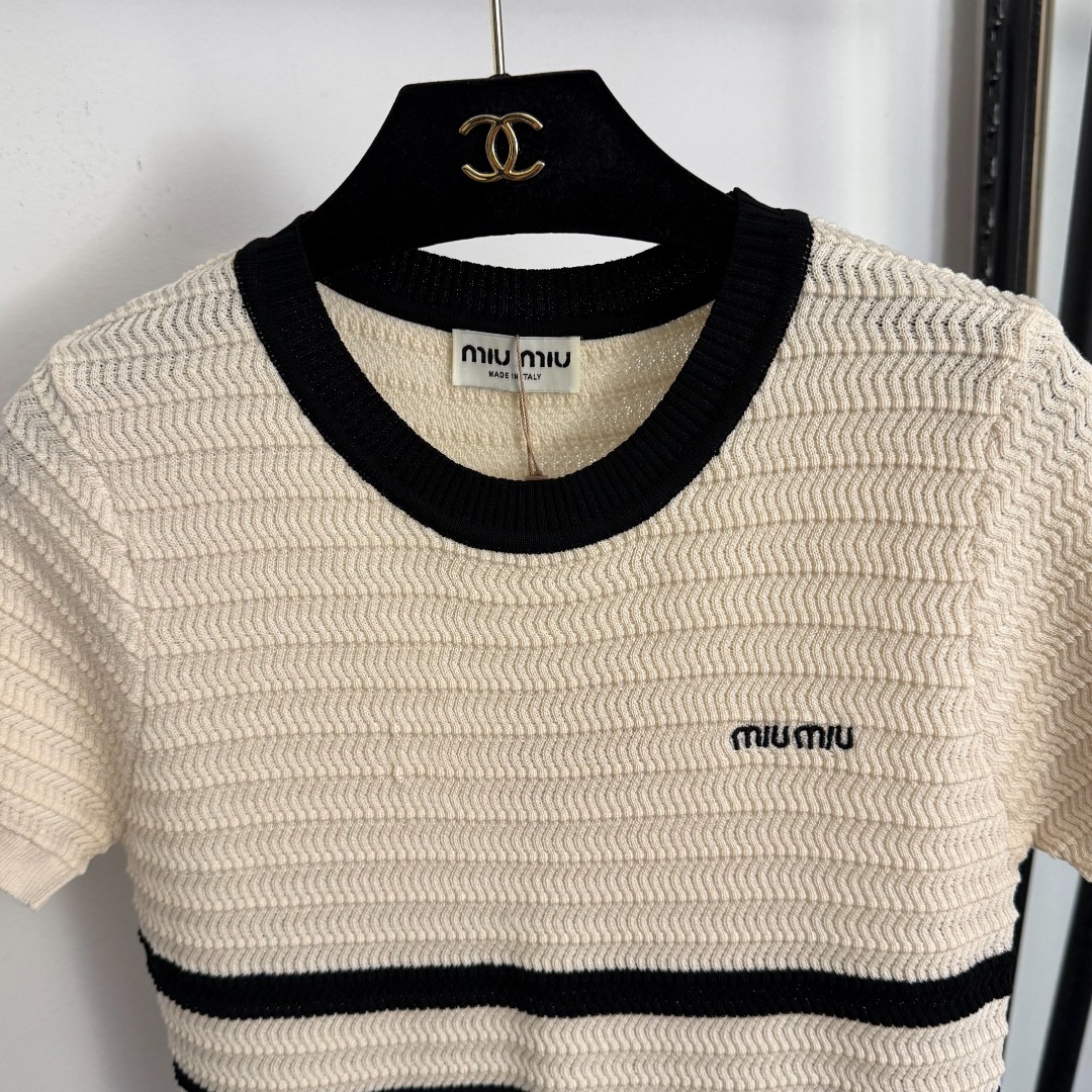 Details: New Apricot Logo-embroidered Striped Short-sleeved Knit Top. High-end Custom, Fine Craftsmanship