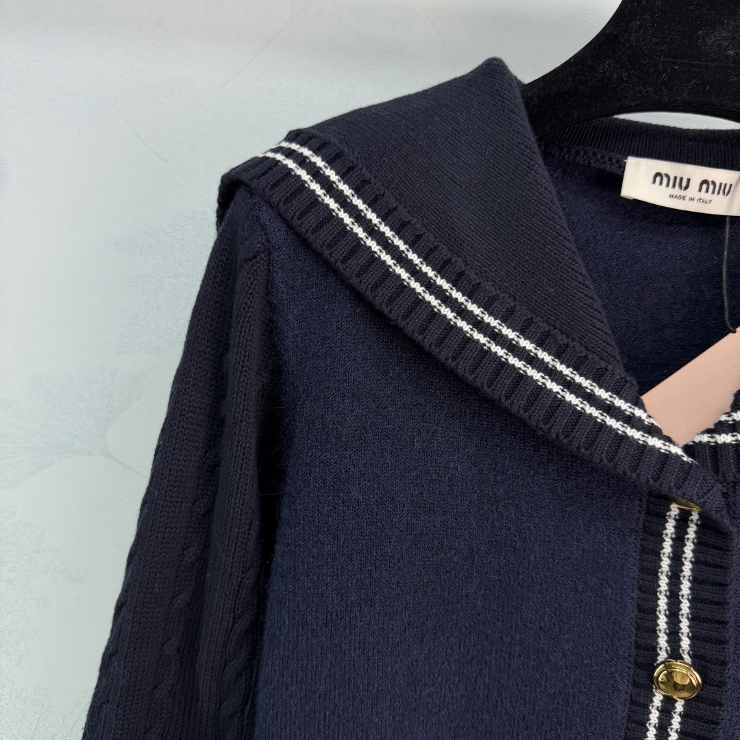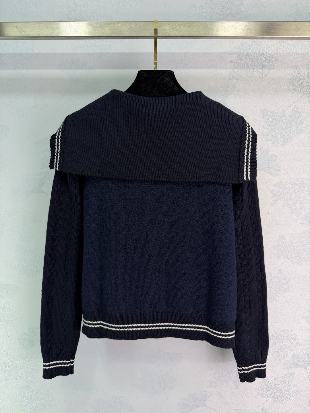 Details: Spring navy collar knitted cardigan, warm, classic, suitable for campus or casual wear.