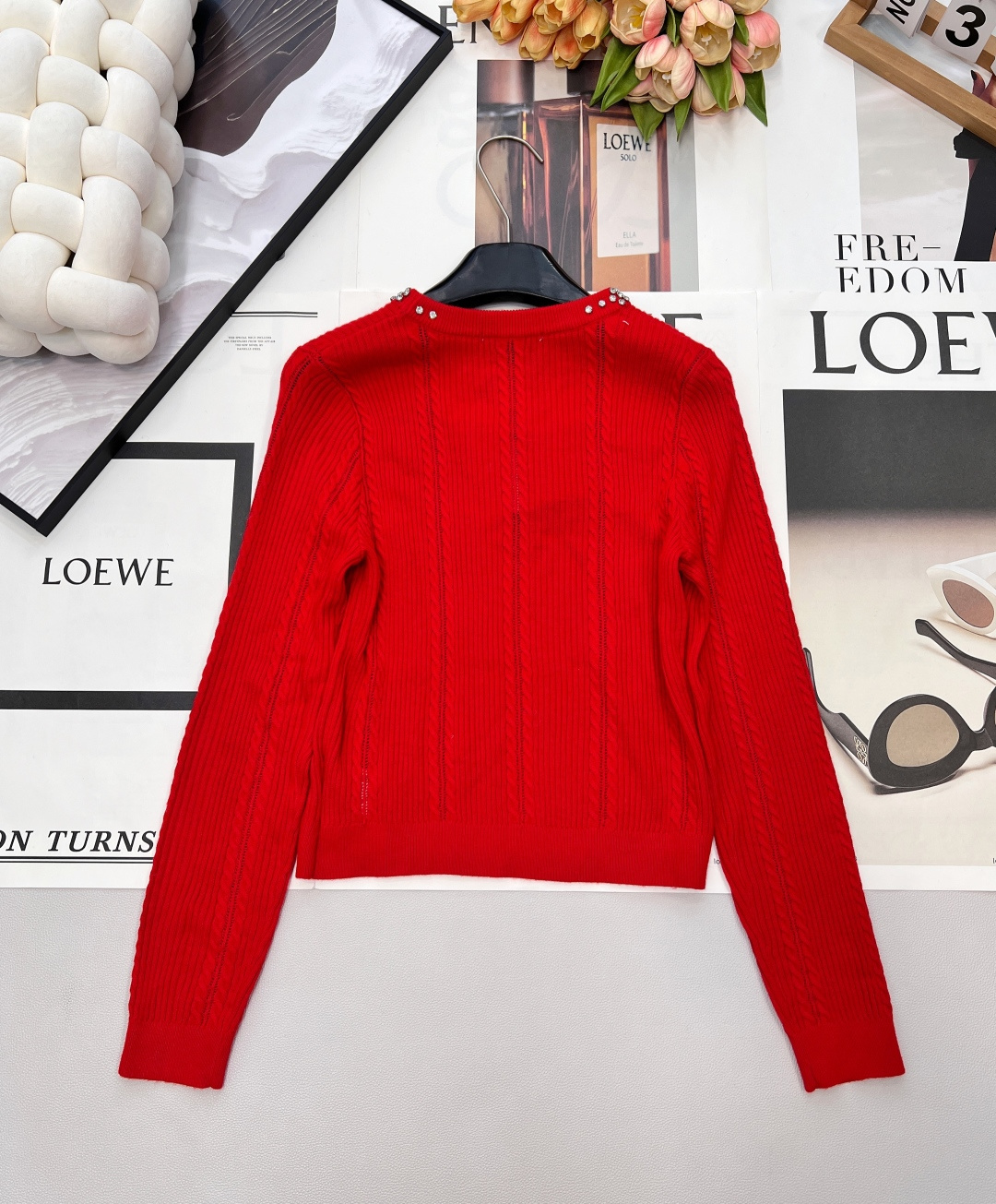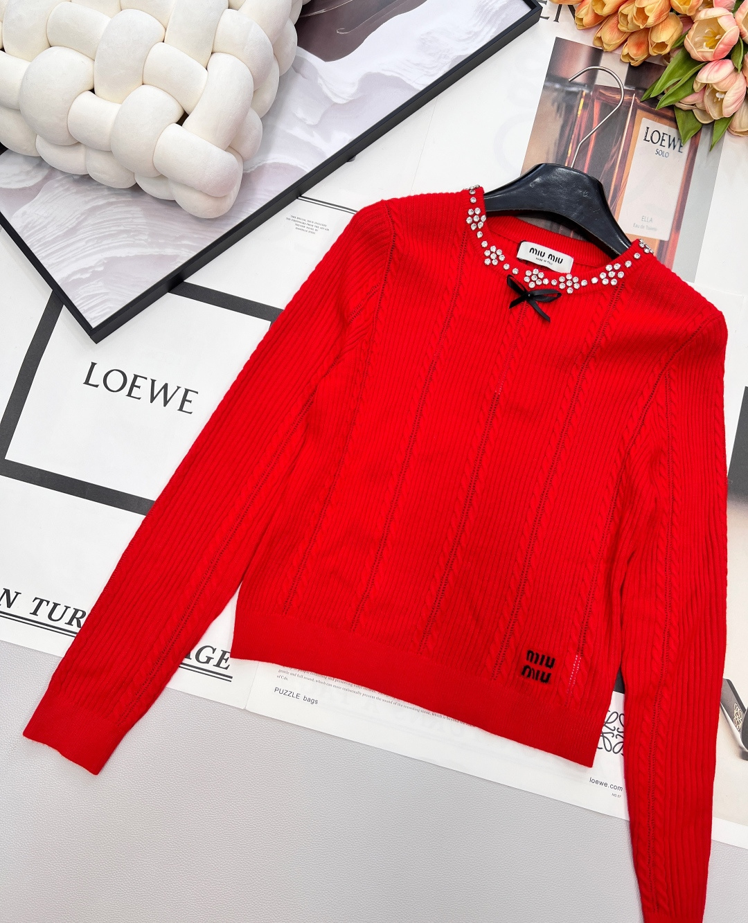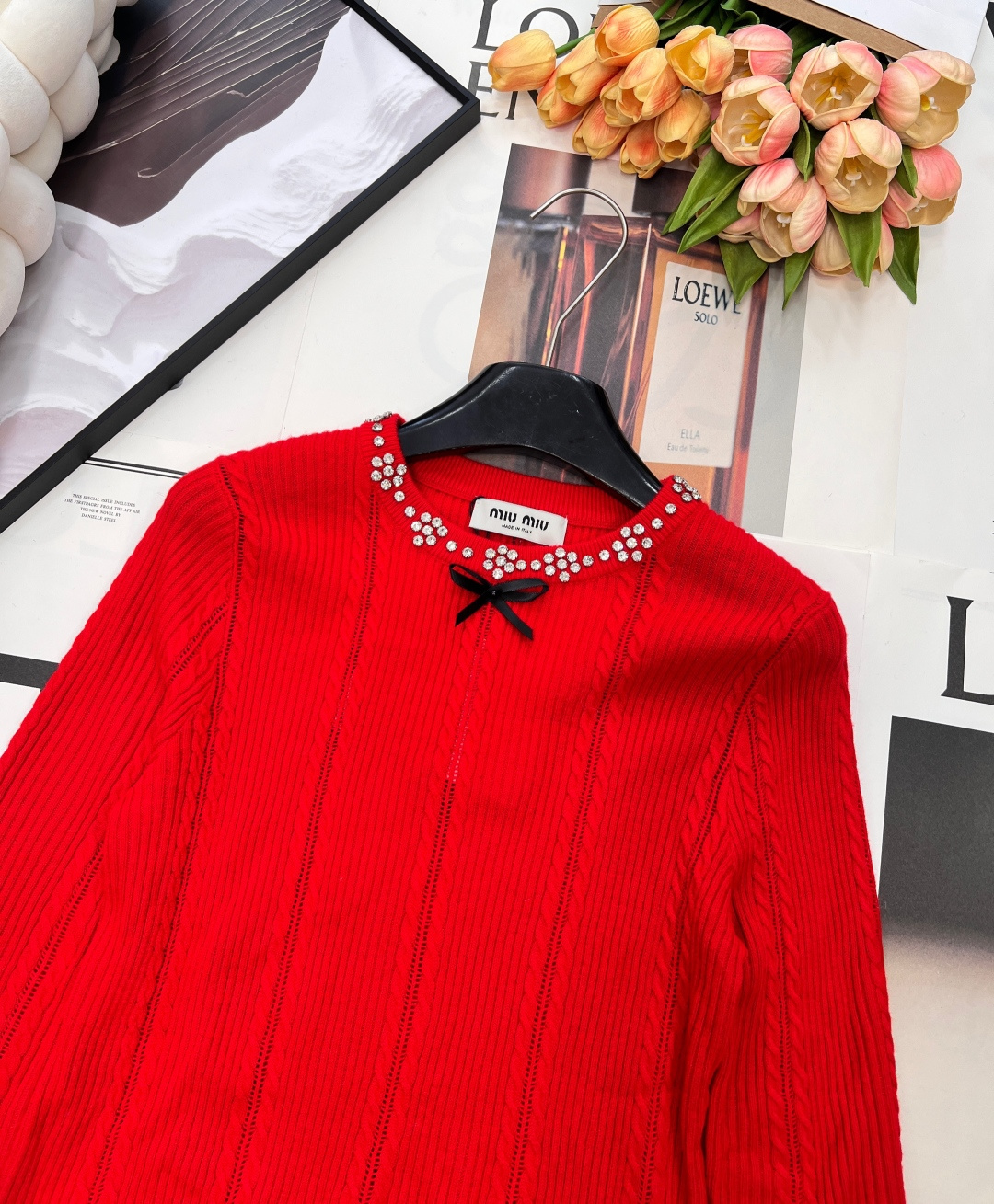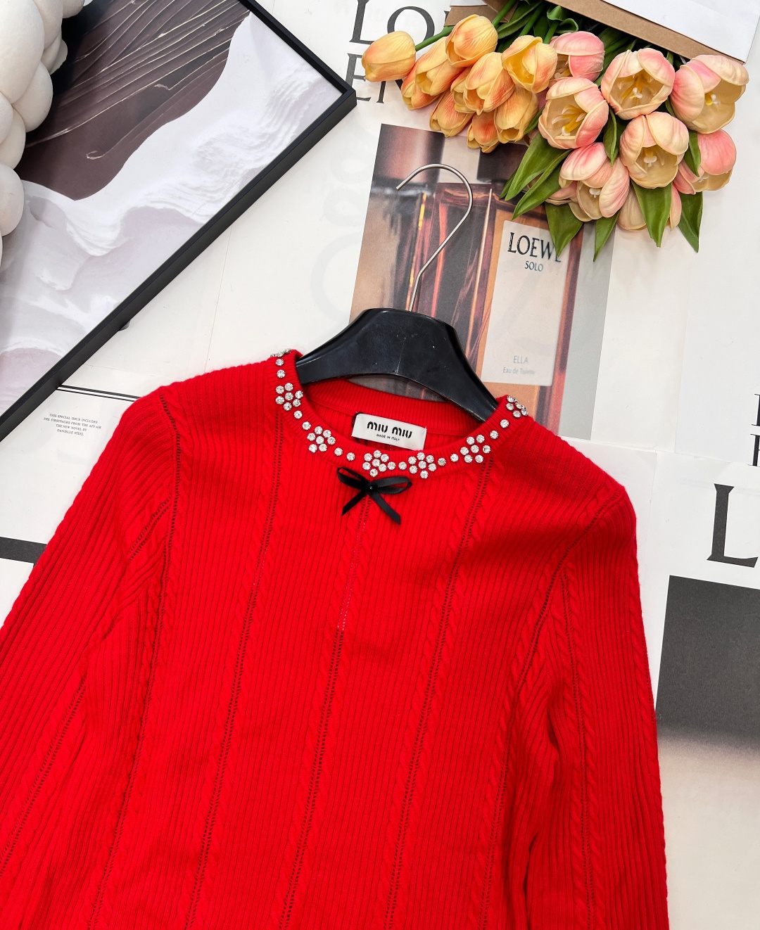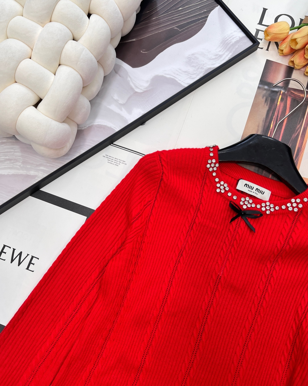 Details: Sweet and cool knitted sweater decorated with red bows and diamonds, warm and non - bulky in autumn and winter.