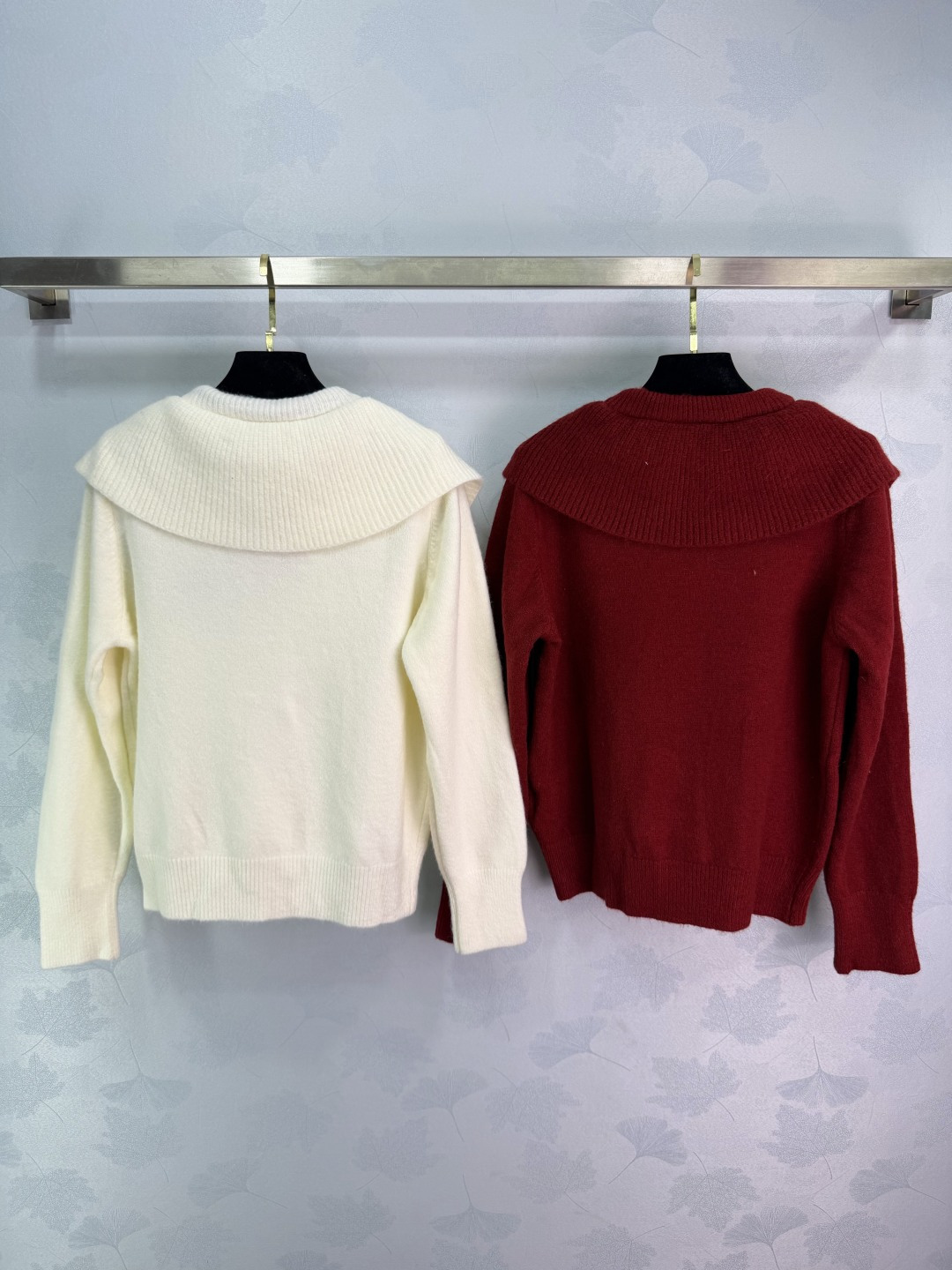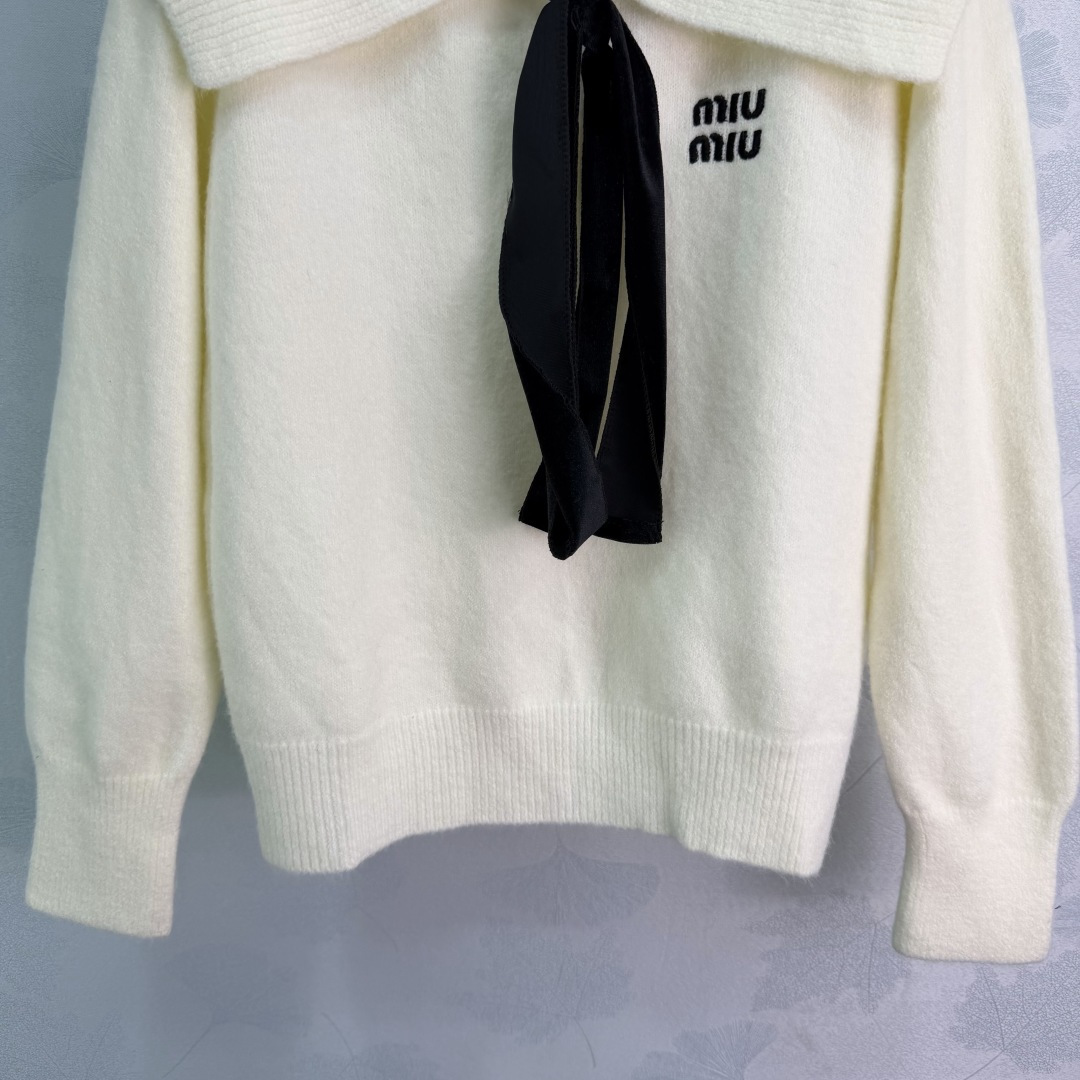 Details: Early spring navy collar sweater, classic large lapel, black bow, retro academic style, wool blend, soft and warm, suitable for daily commute or festivals.
