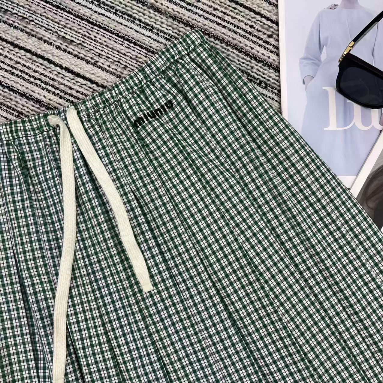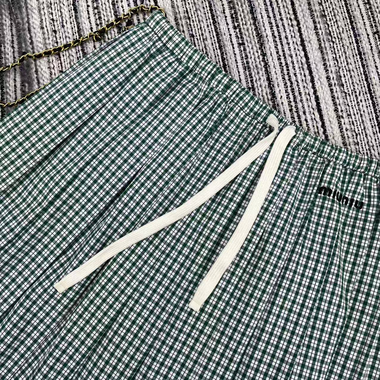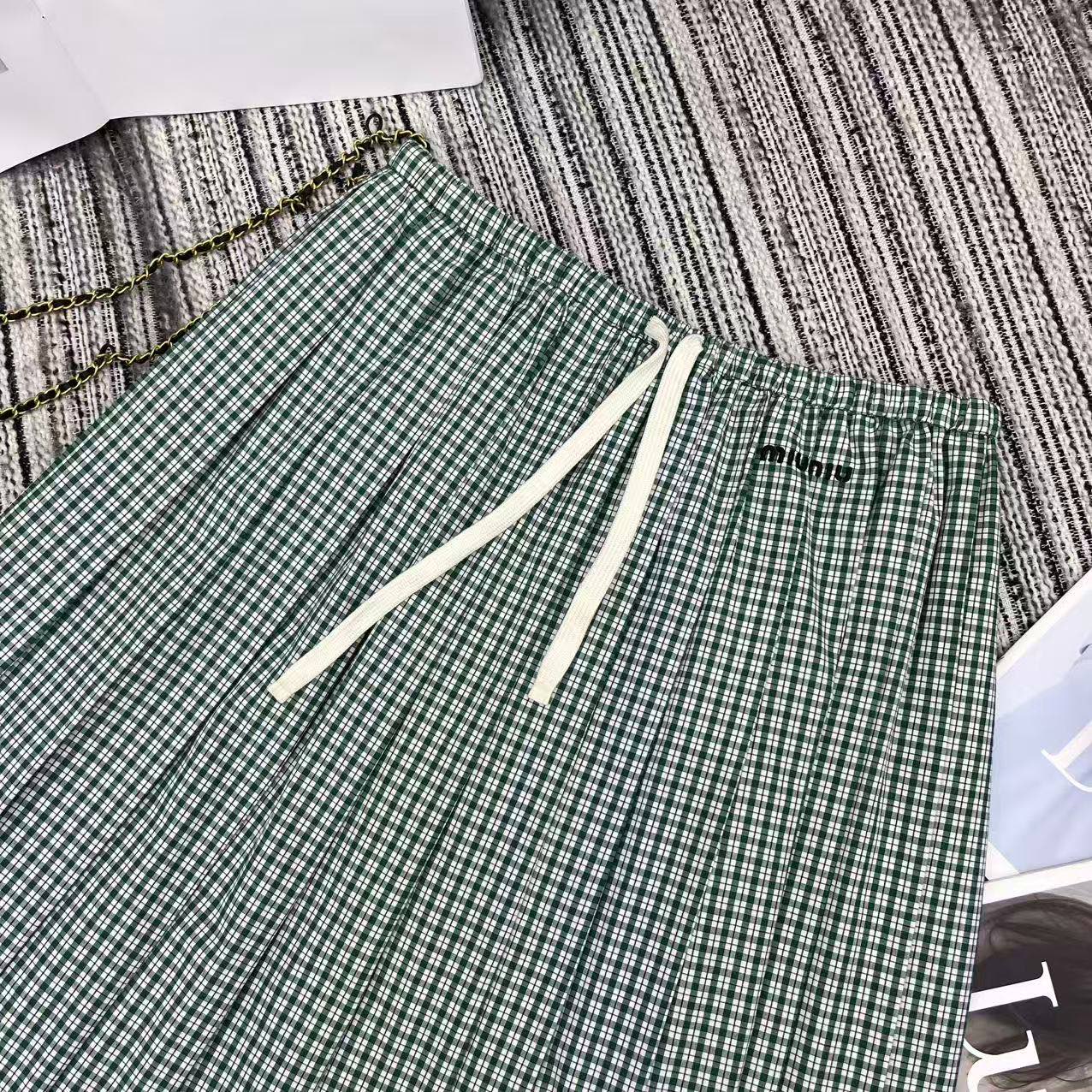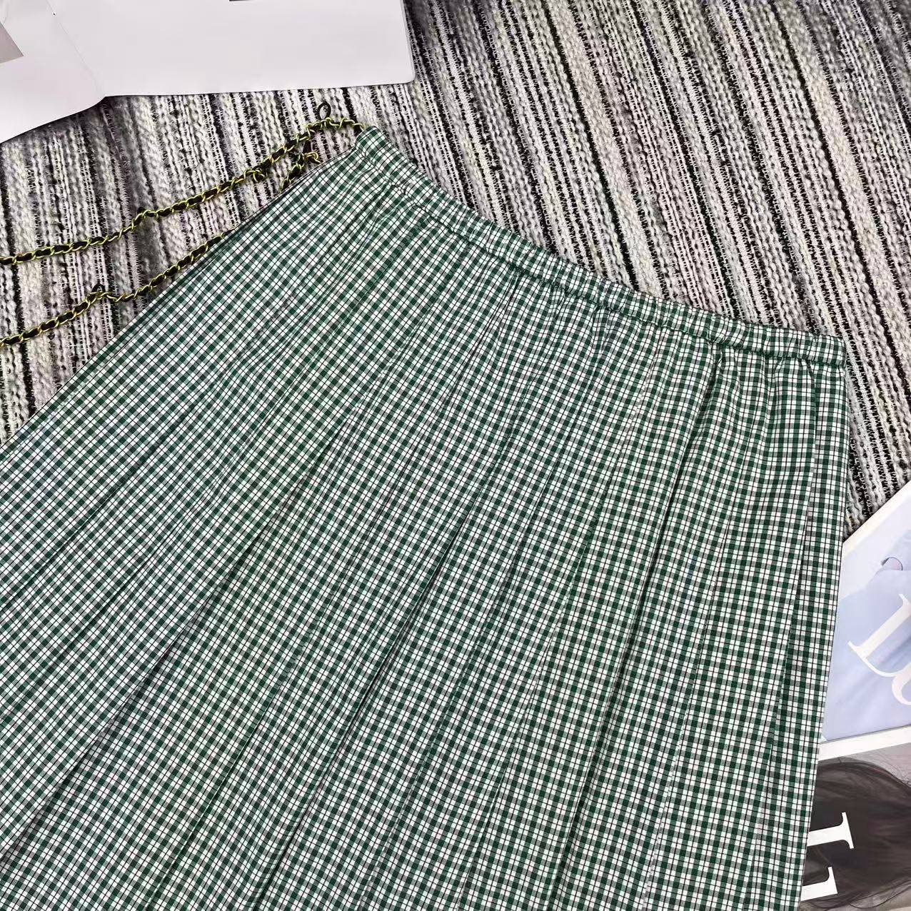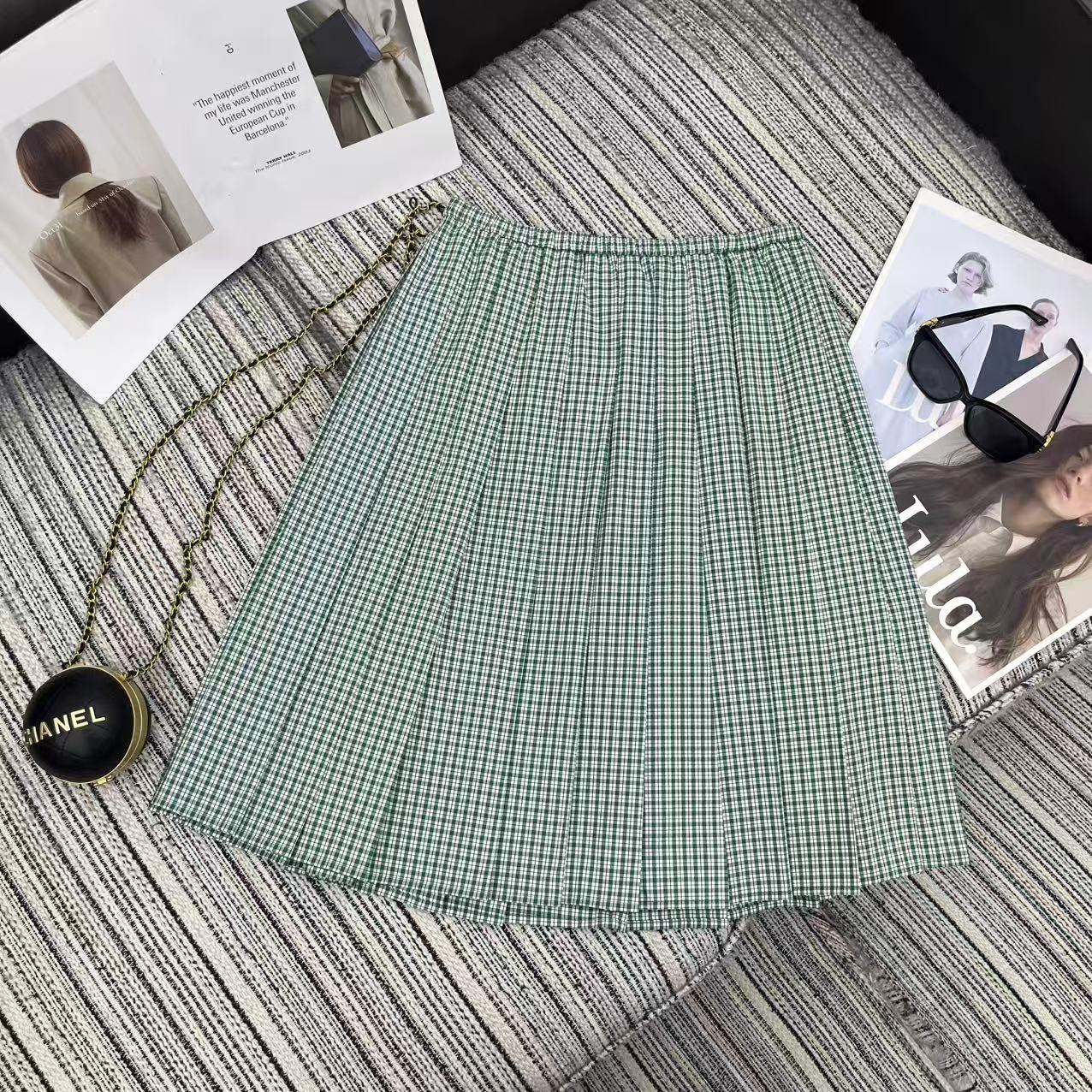 Details: New checkered pleated skirt with a fresh college style, featuring logo embroidery and a practical design.
