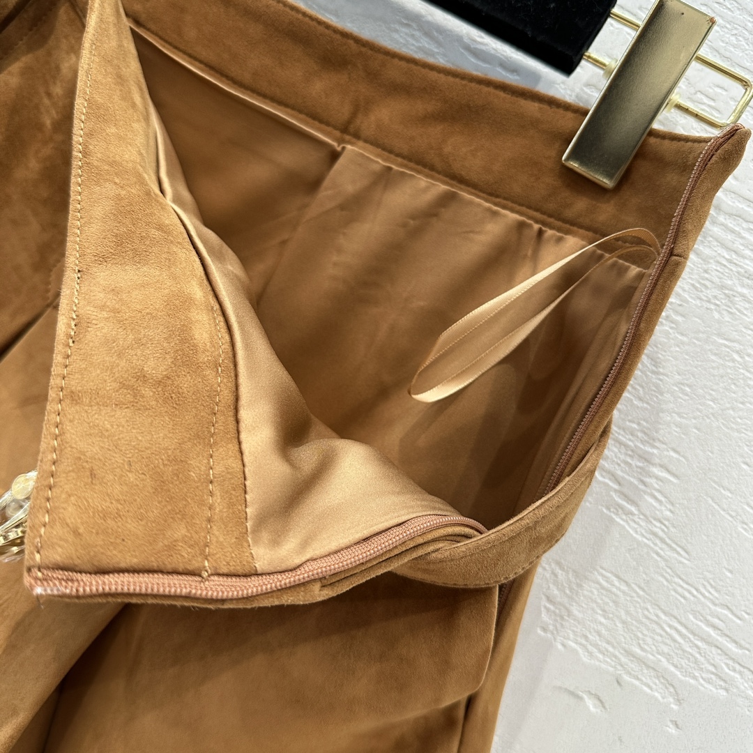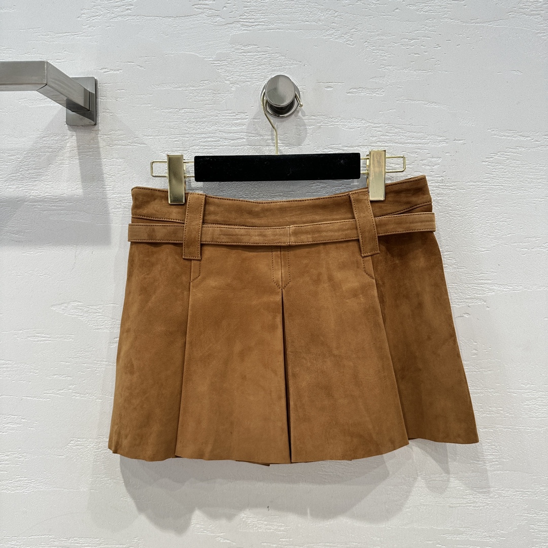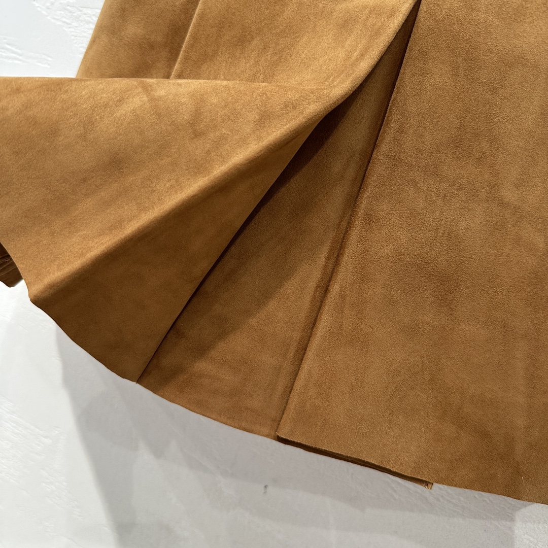 Details: Suede mini pleated skirt with metal belt, available in sizes from S to XL, high - end customization, fine workmanship
