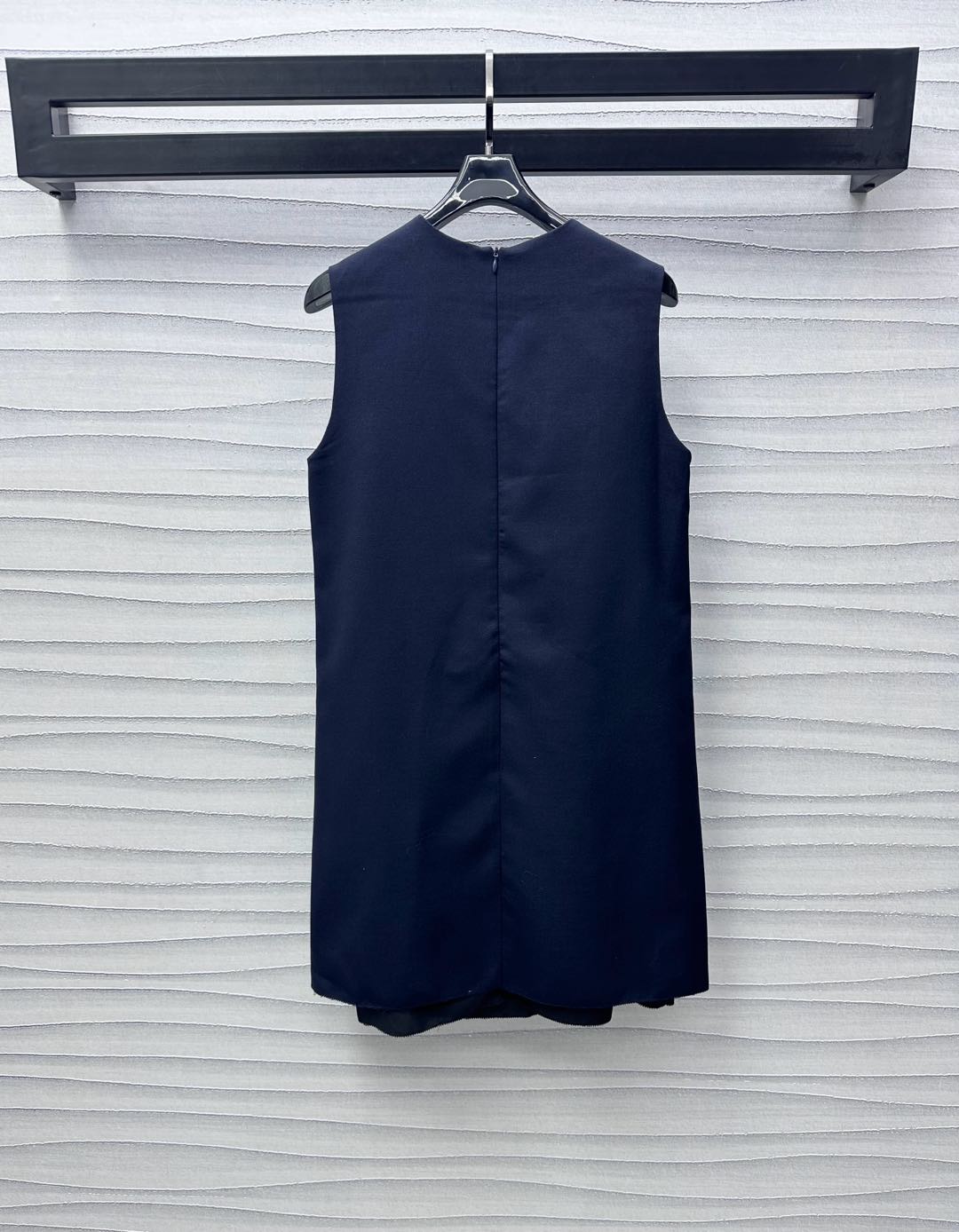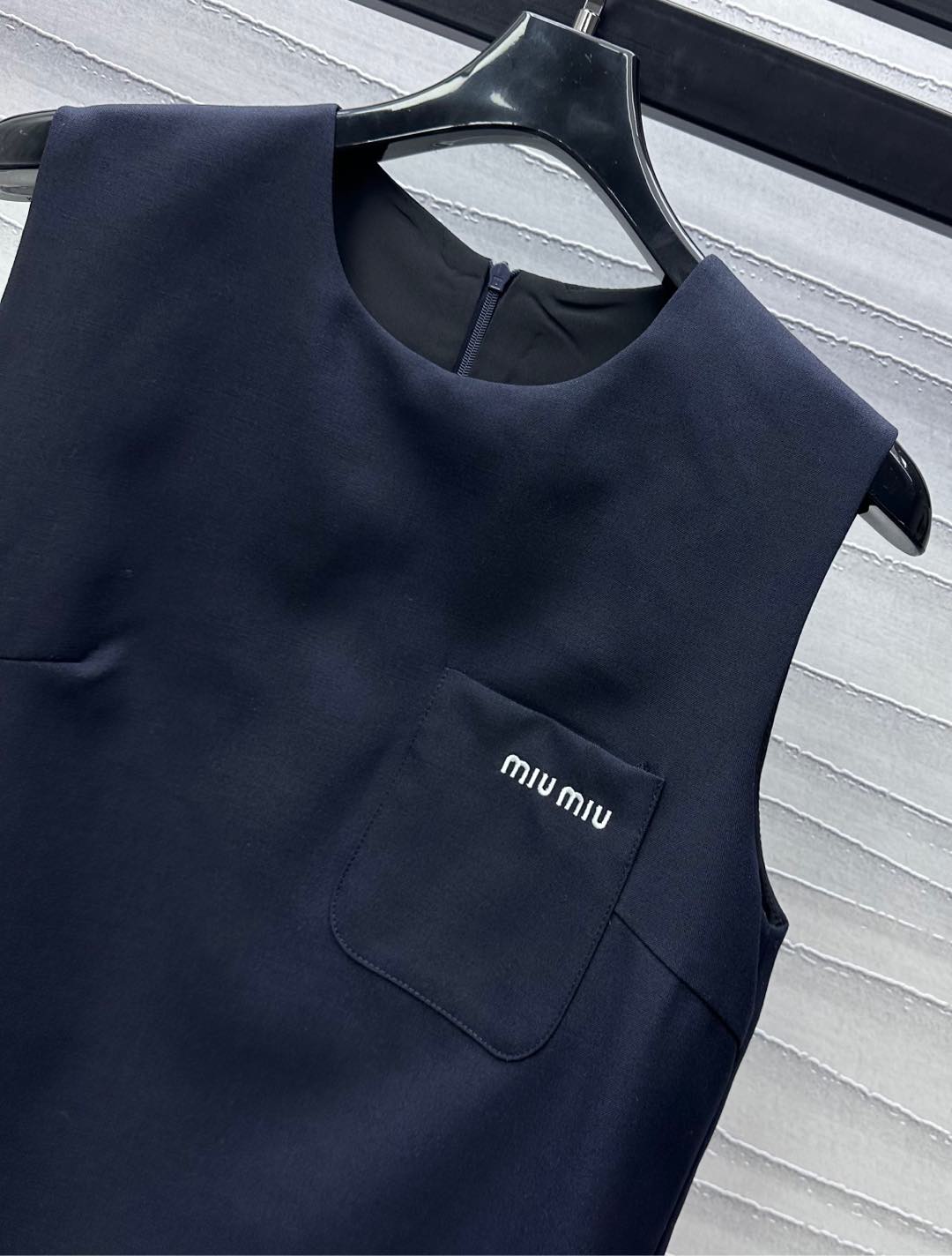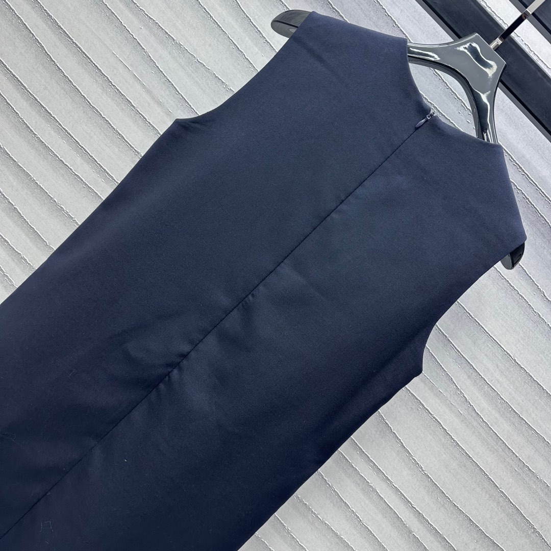 Details: Round-neck vest dress made of custom imported blended wool, smooth texture, with single-sided pocket and embroidered logo, high-end customization, fine workmanship