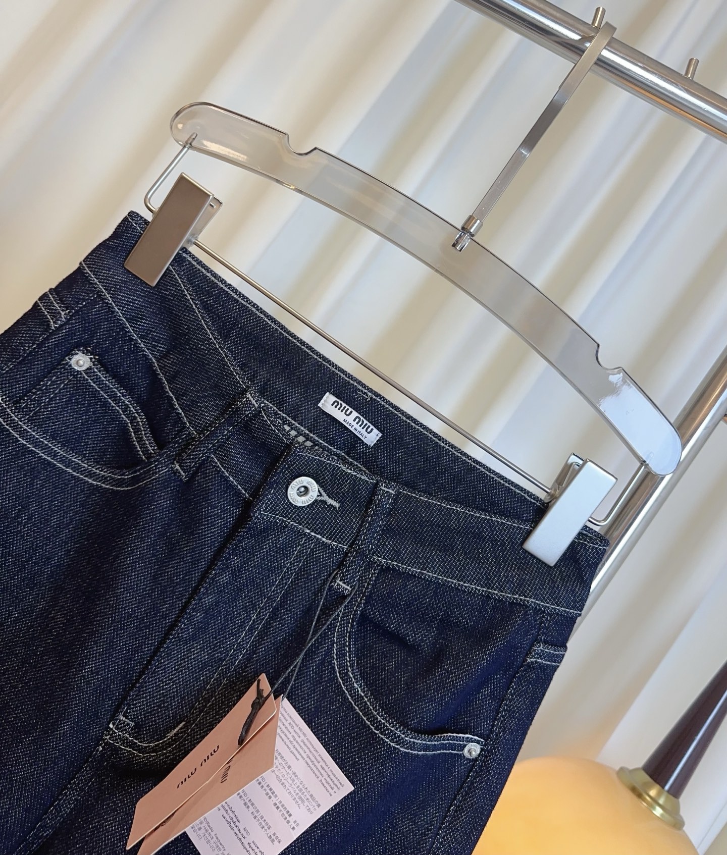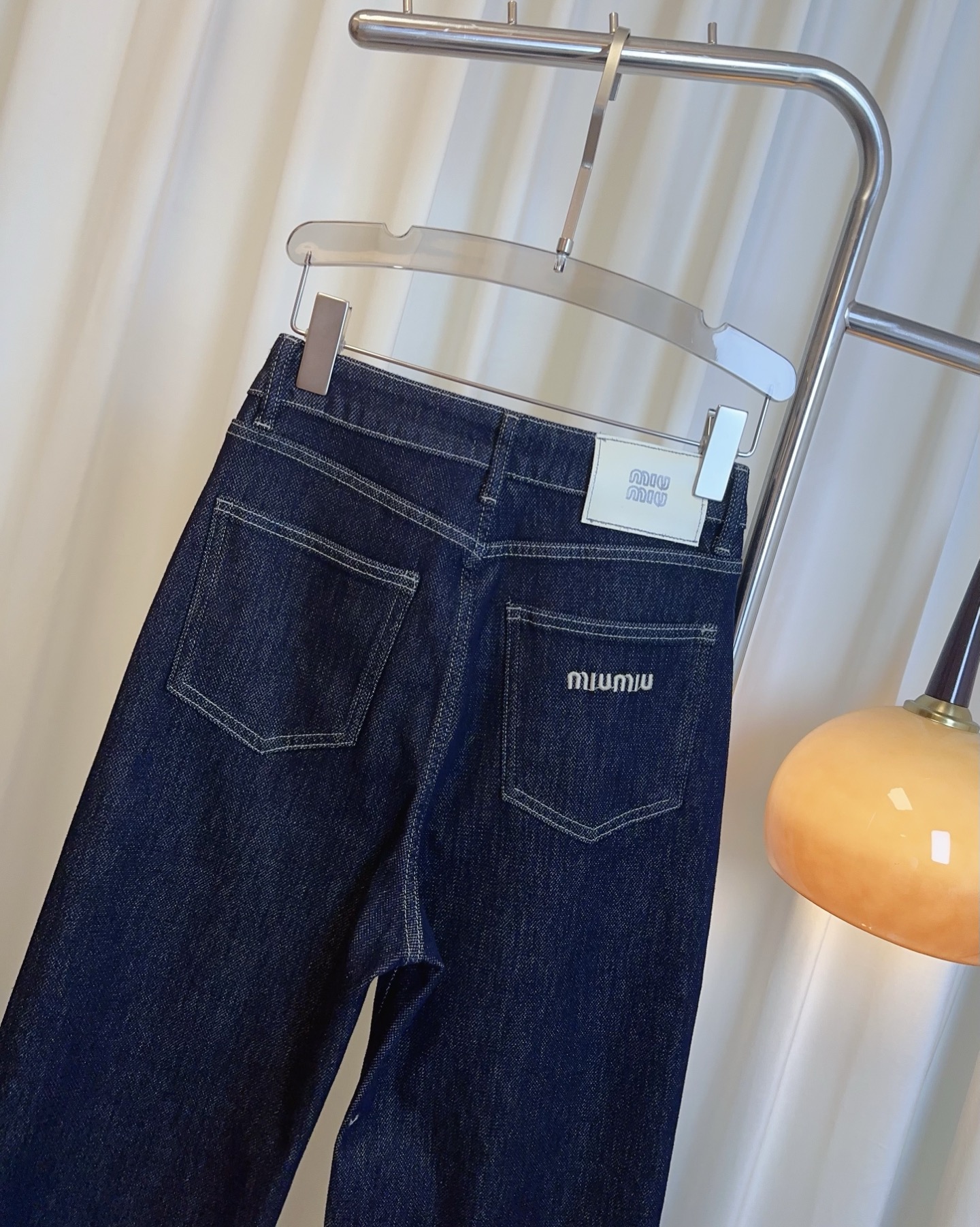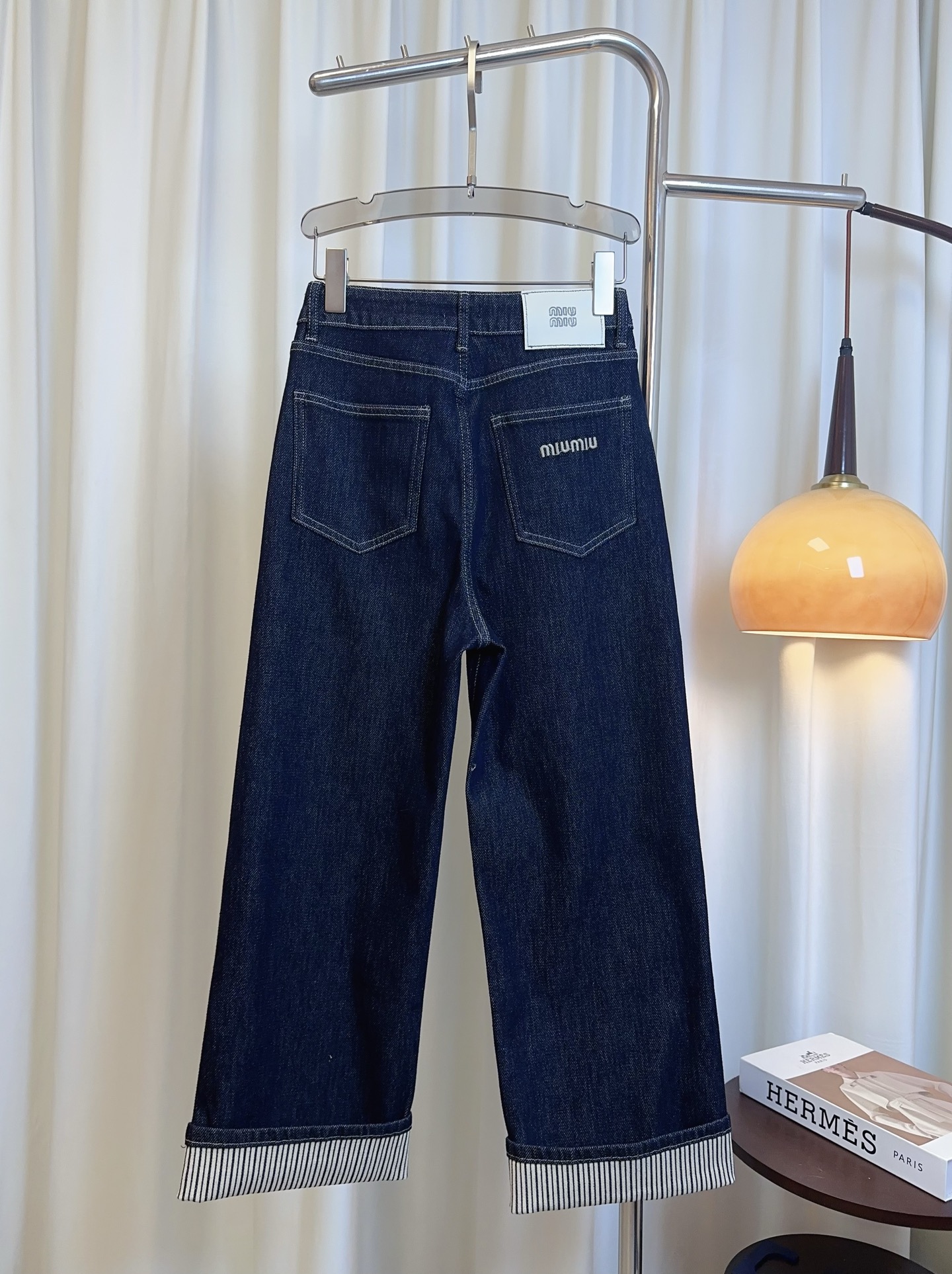 Details: Logo embroidered back pocket wide-leg jeans made of custom stretch denim fabric, double-sided design, super soft and comfortable, stylish and versatile, can be worn cuffed or uncuffed, essential for women s wardrobe, high-end custom with fine workmanship