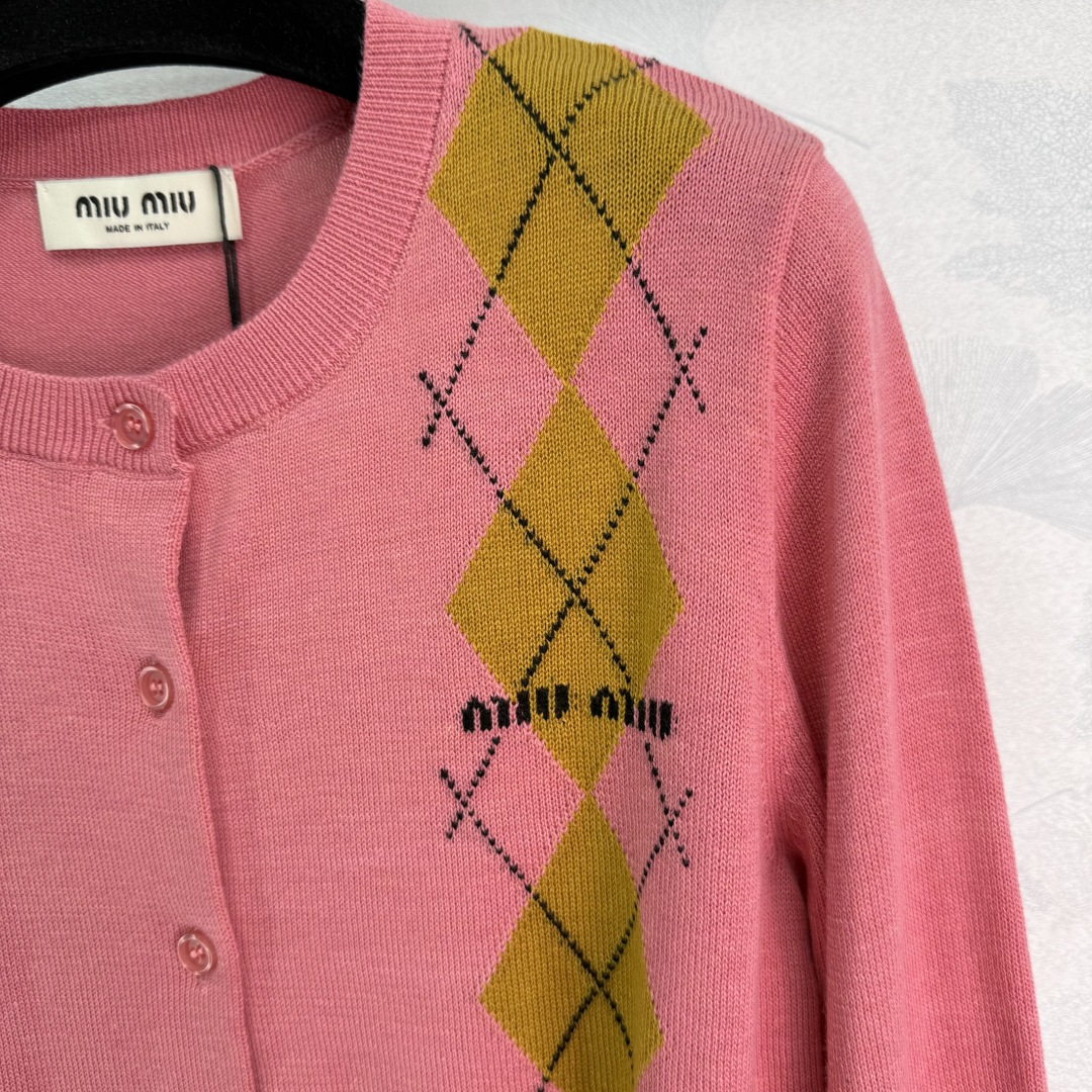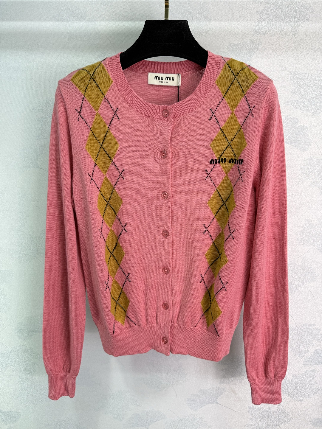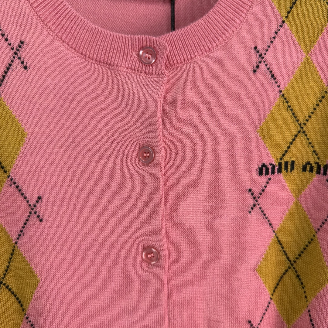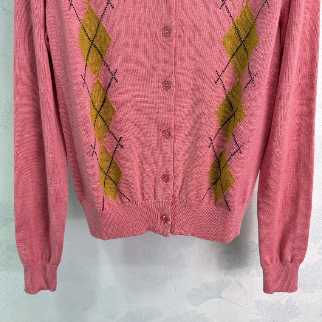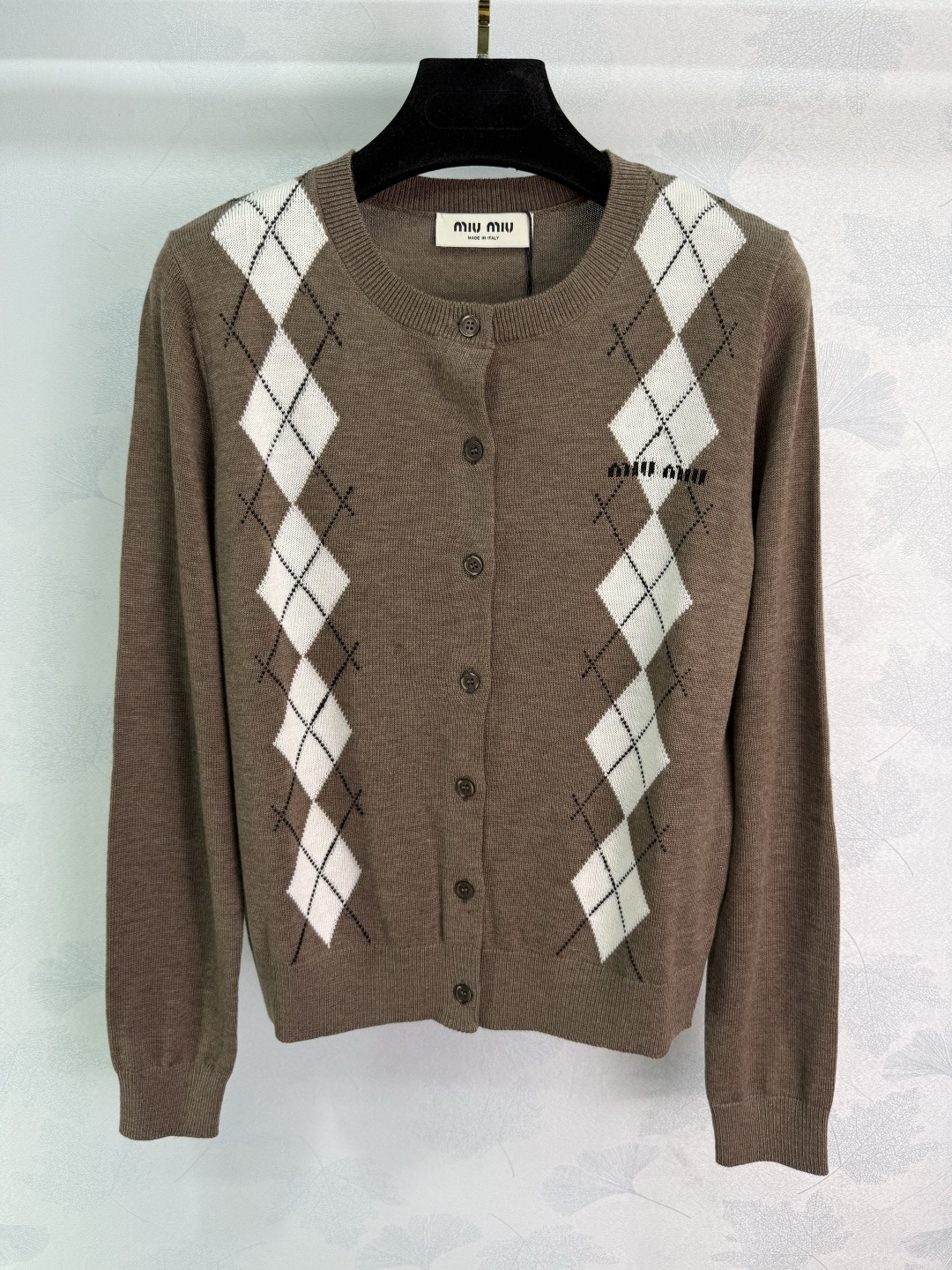 Details: Autumn Diamond - patterned Knitted Cardigan with Logo Embroidery, Stylish and Versatile