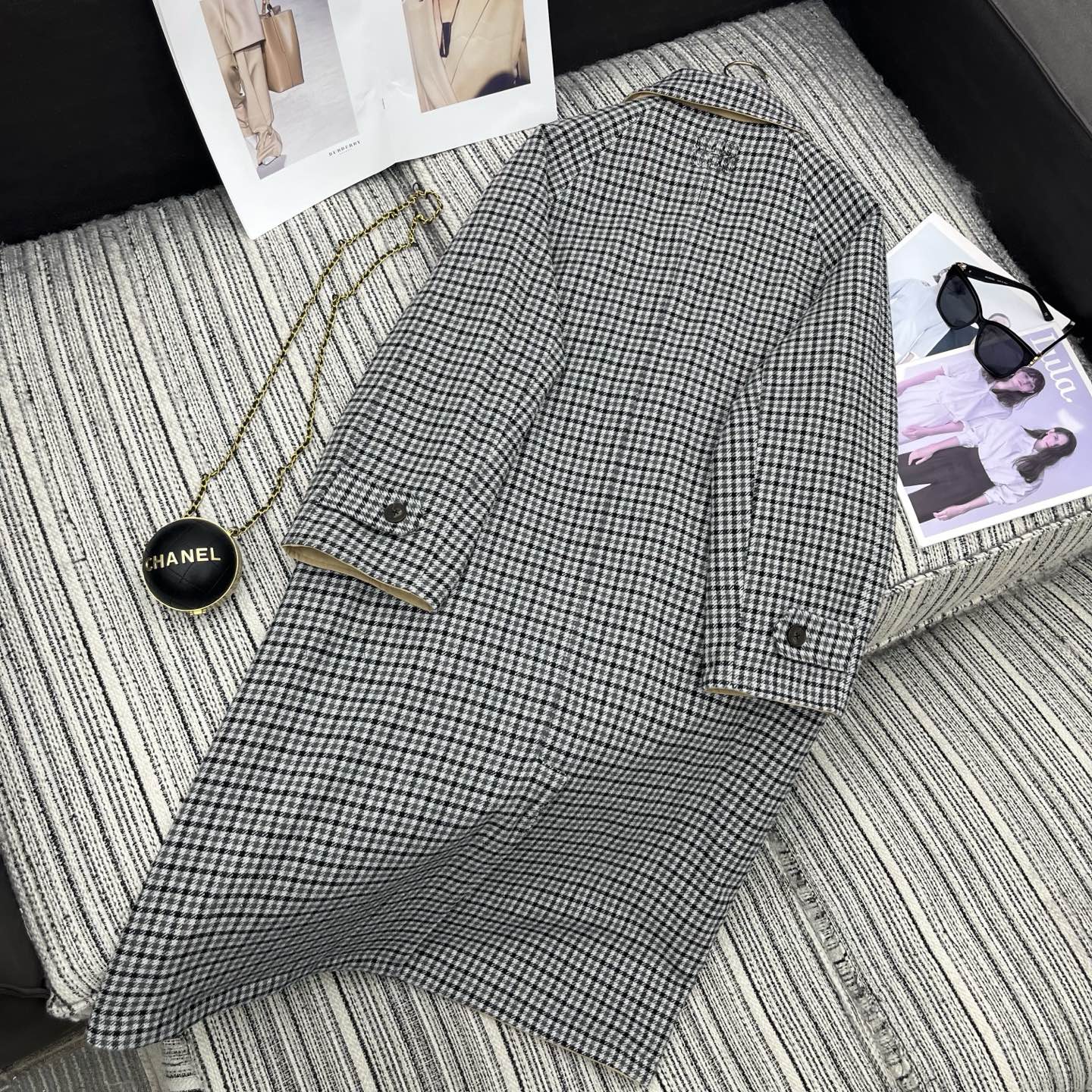 Details: Highly recommended early autumn men s and women s reversible plaid trench coat, single - breasted, high - end style