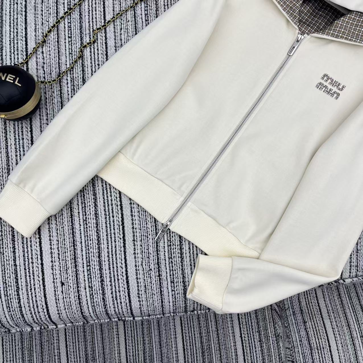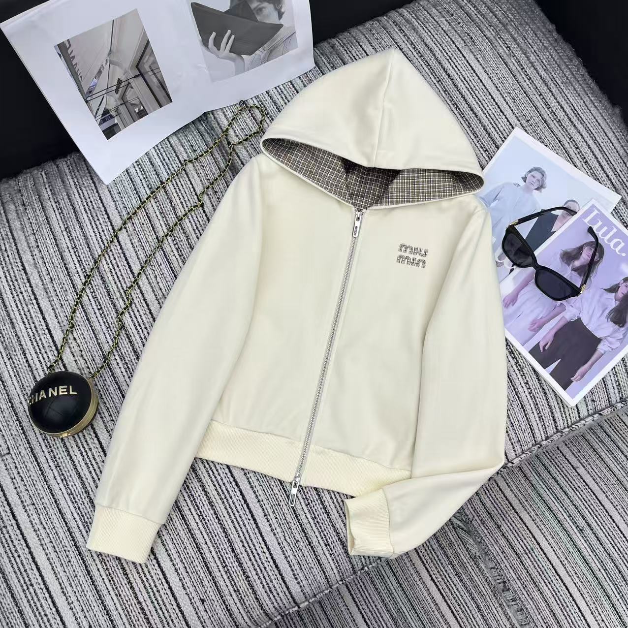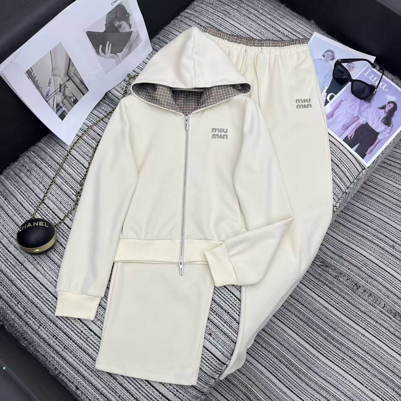 Details: Highly recommended Early Fall 25 Hooded casual jacket and elastic-waist straight-leg pants set with grid letter patches, two colors, SML.