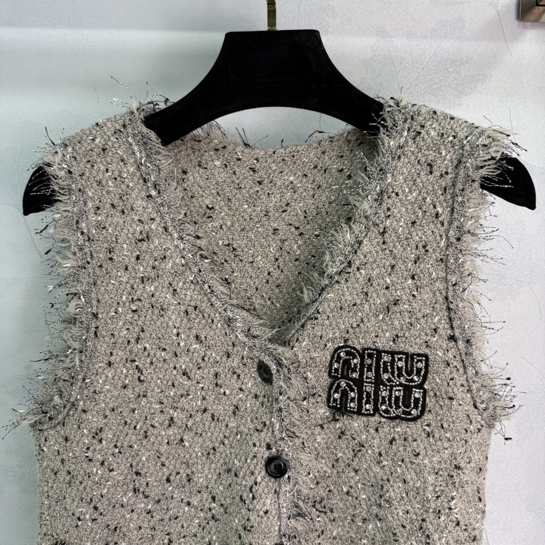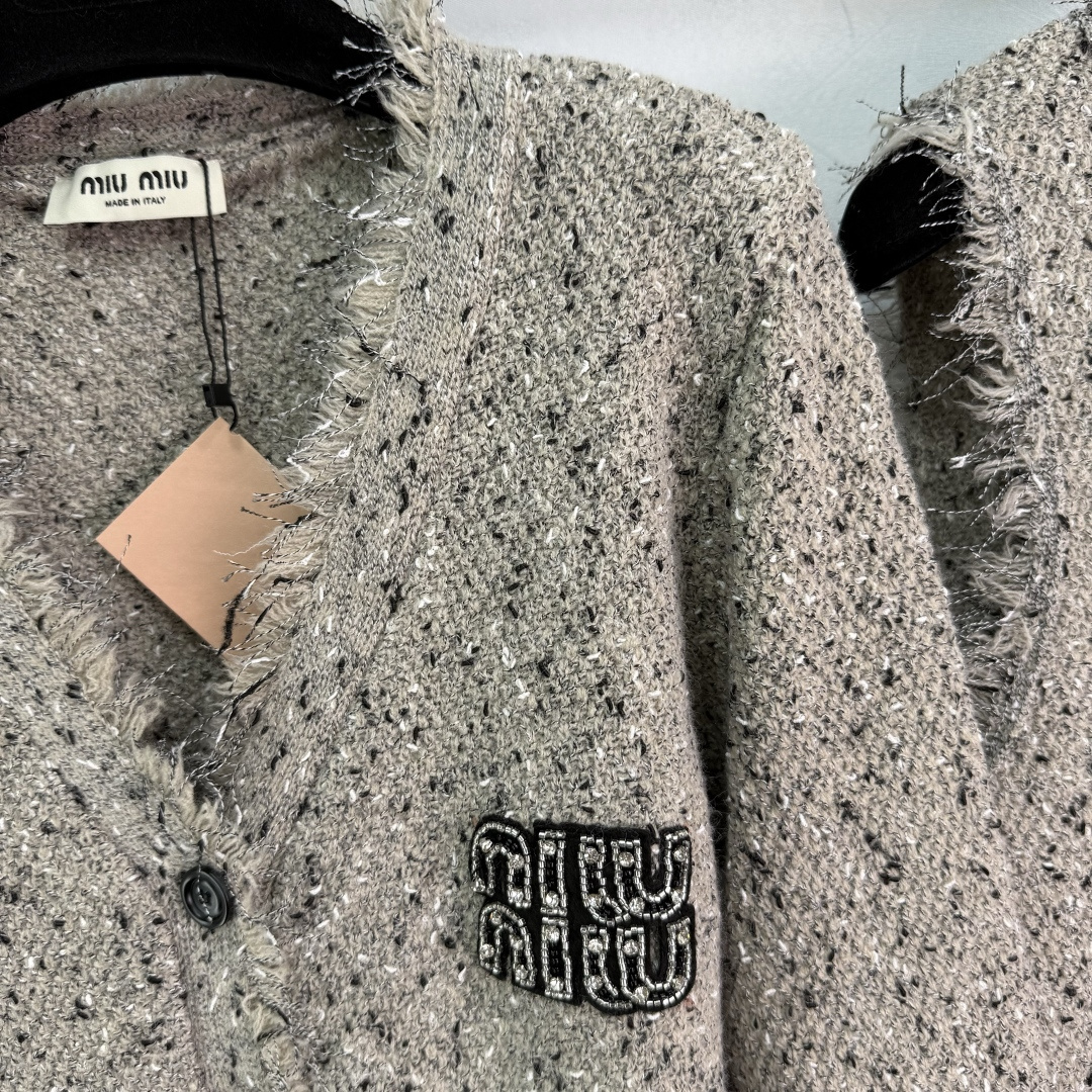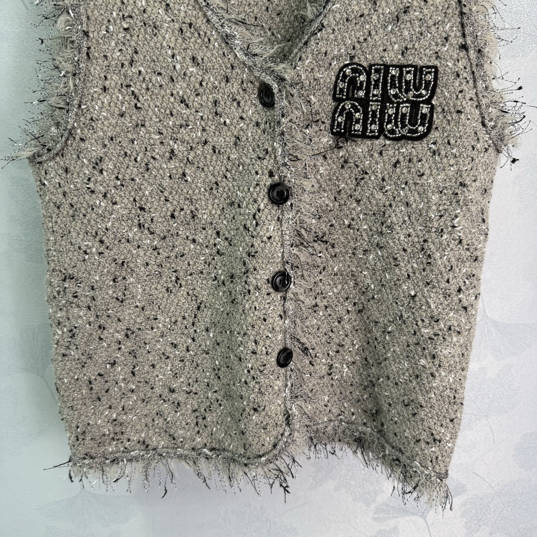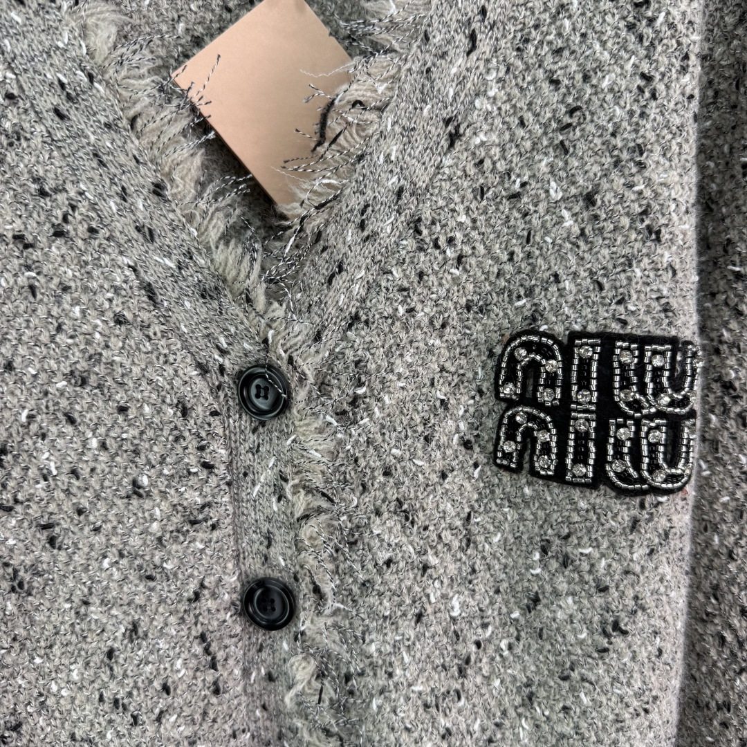 Details: Autumn fringe cardigan and vest set in a soft wool blend, elegant, with a logo, versatile and stylish.