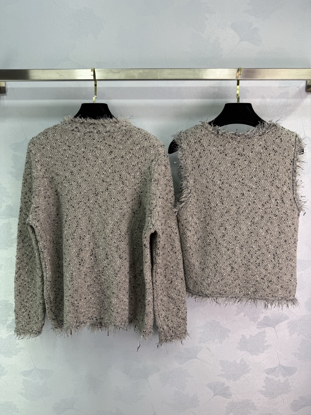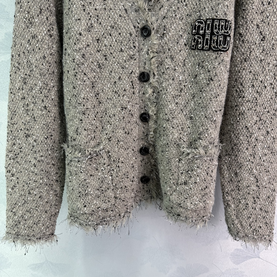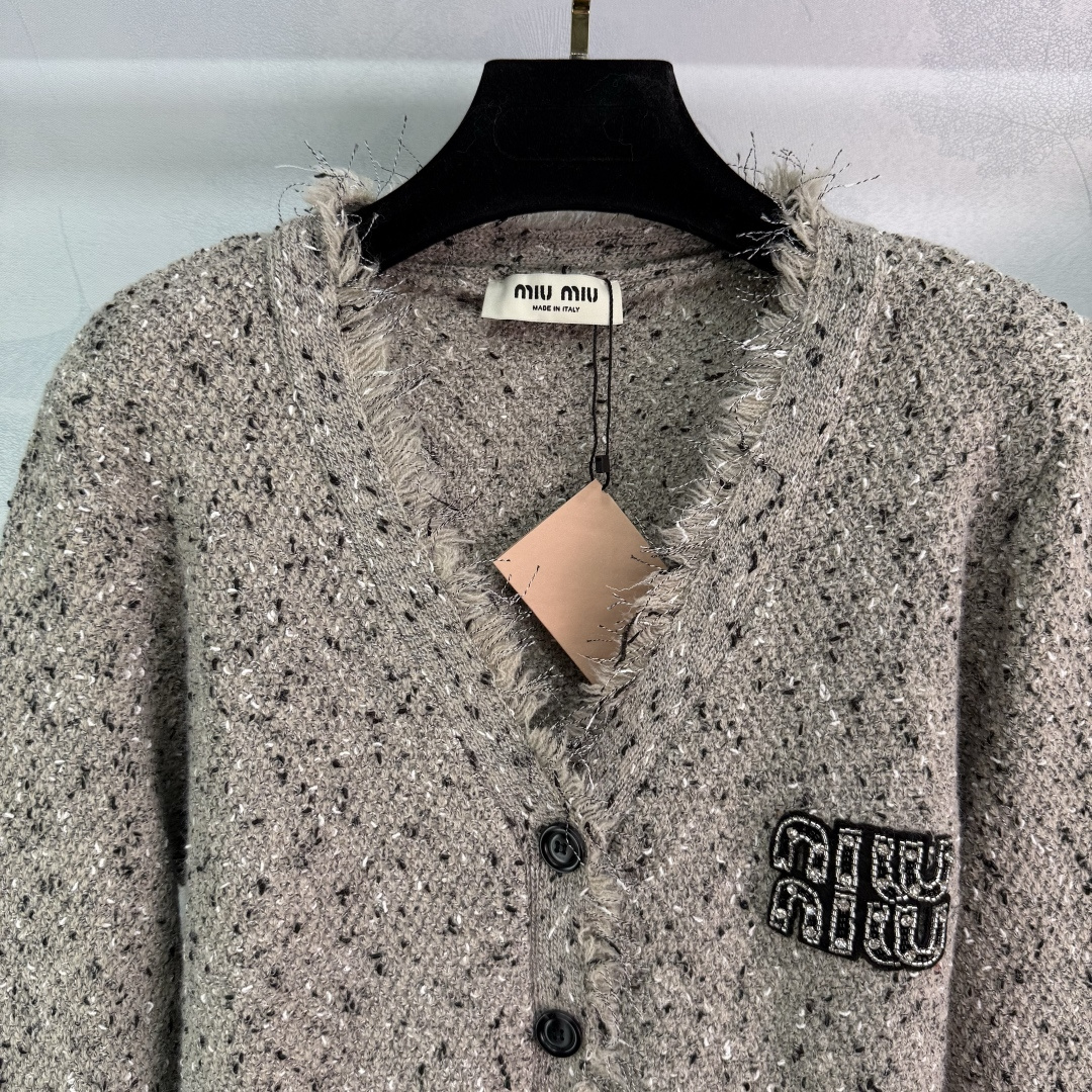 Details: Autumn fringe cardigan and vest set in a soft wool blend, elegant, with a logo, versatile and stylish.