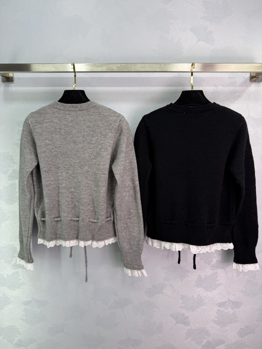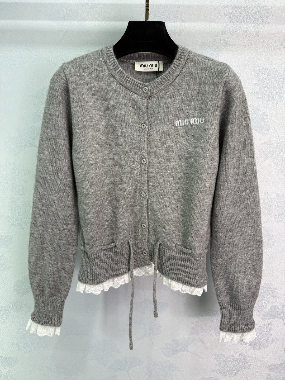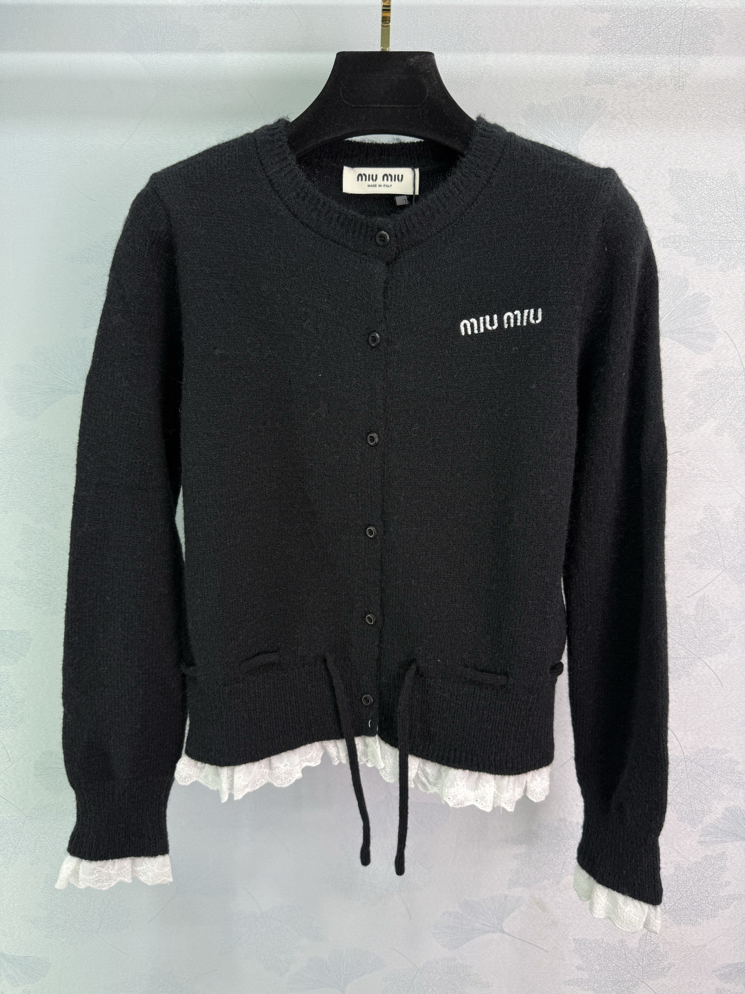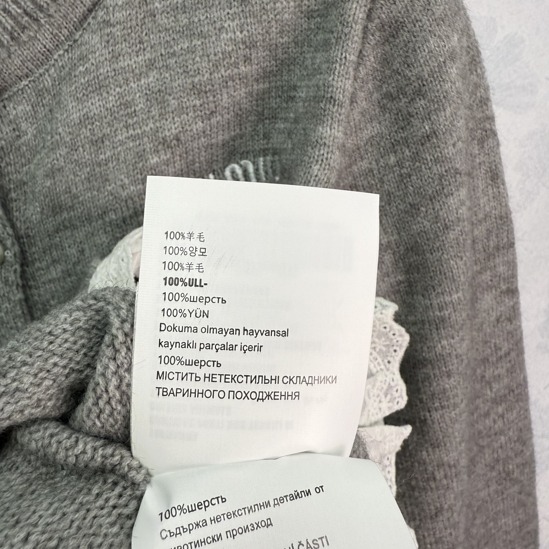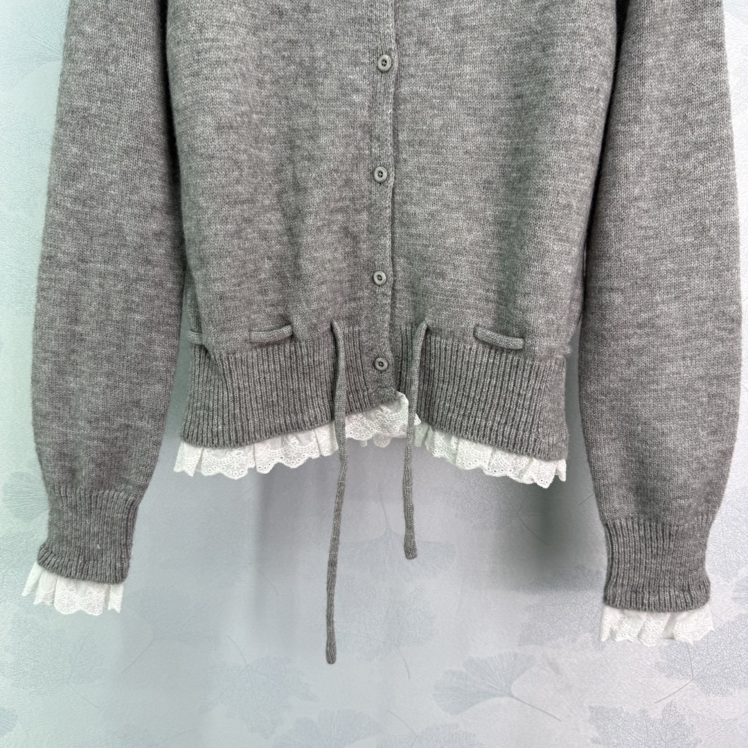 Details: Early autumn lace-spliced knitted cardigan with a white lace ruffle, presenting a youthful college style, fashionable and versatile