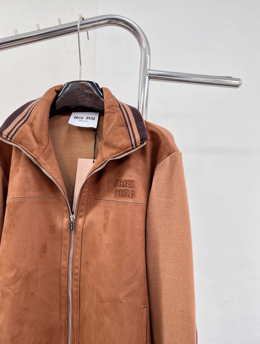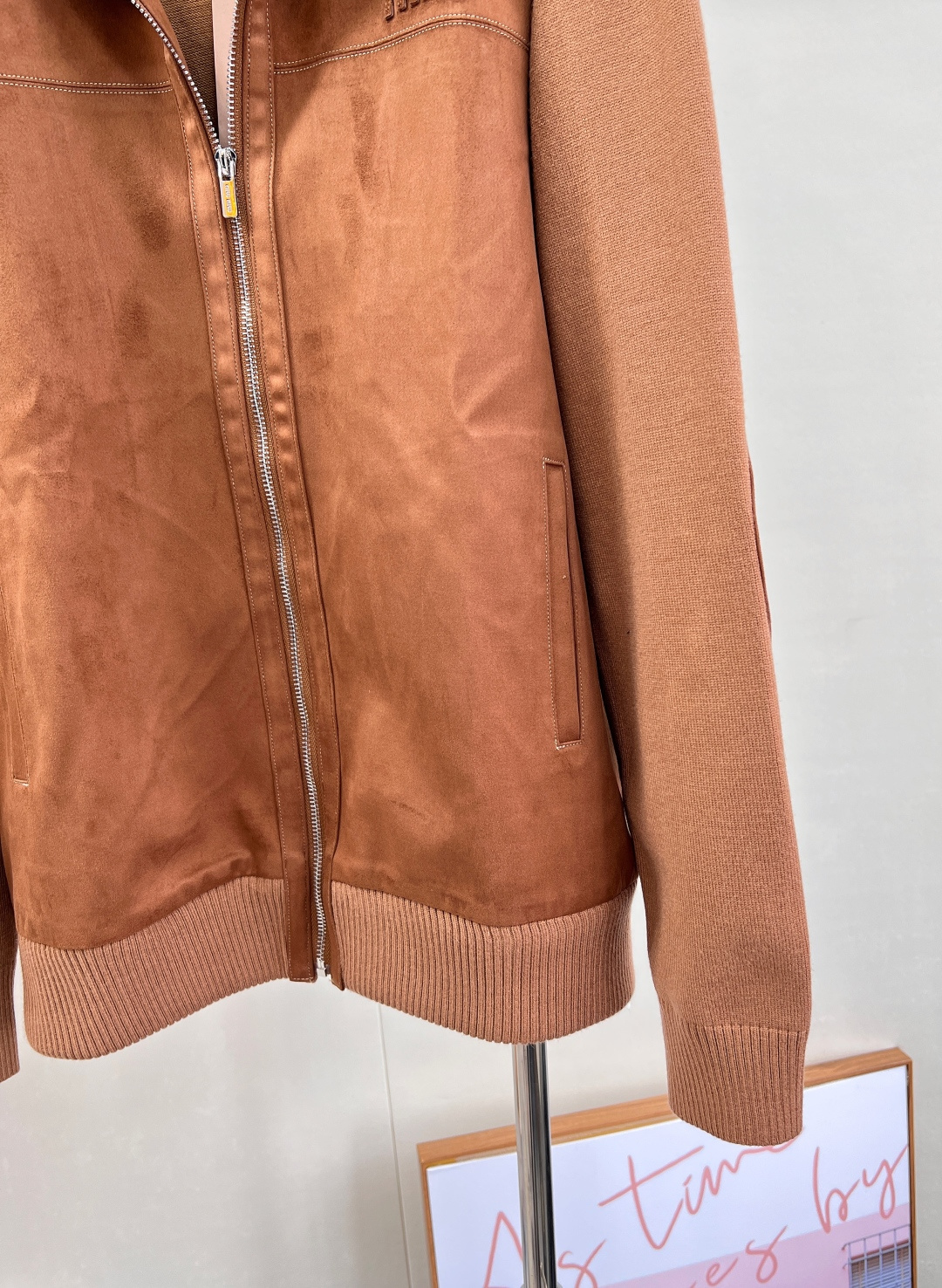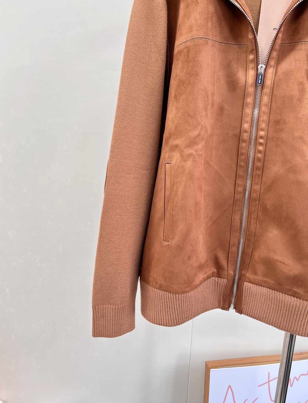 Details: Autumn suede zipper jacket with a logo, stand collar, and multiple designs, unisex